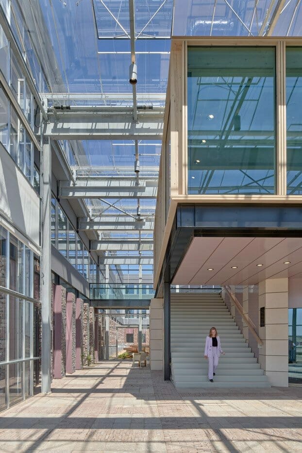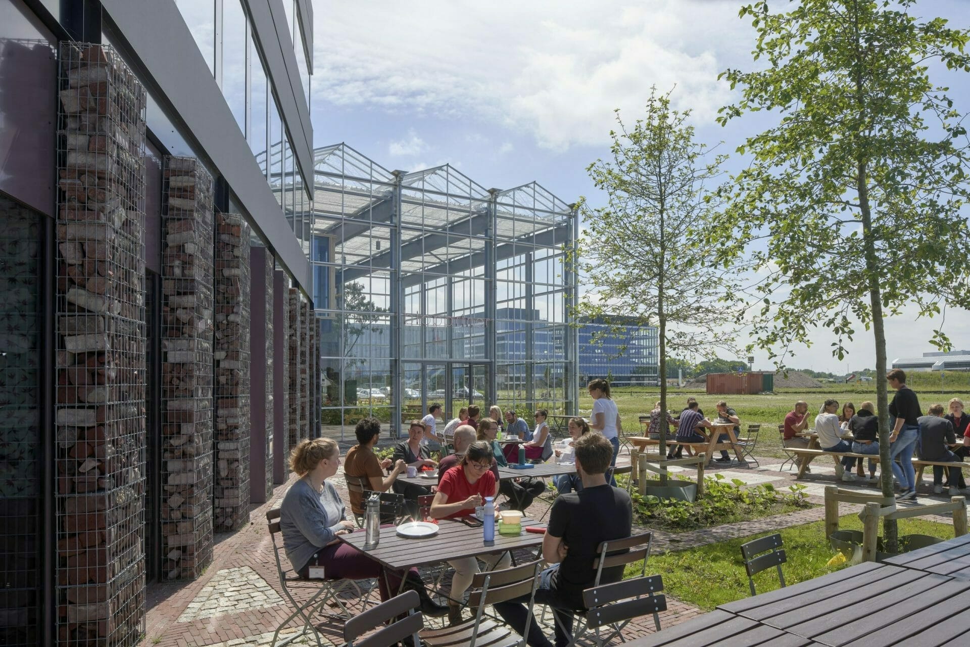 Het laboratorium Biopartner 5 is het eerste ‘Paris Proof’ gebouw van Nederland. Het vijfde gebouw van incubator Biopartner is ontwikkeld als kwartiermaker in een nog kaal, nieuw deel van het Leiden Bio Science Park. Het heeft de ambitie een ontmoetingsplek voor de campus te zijn en is daarom ontworpen als een kleine stad met een variatie aan pleinen, tuinen, paviljoen, ontmoetings- en werkruimtes. Als een drempelloos campusgebouw waarin de schijnbare tegenstelling van een publiek programma met hightech onderzoek elkaar versterken.