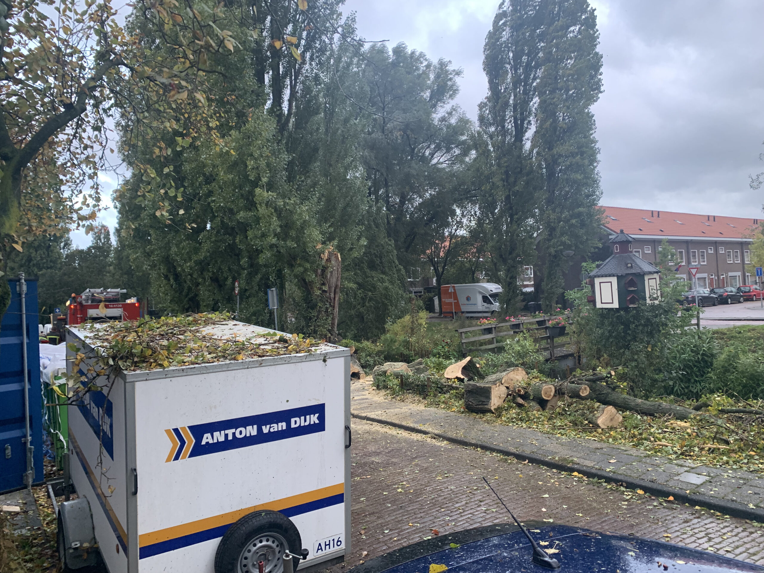 De harde wind zorgt op diverse plekken in de regio voor problemen. Op de Oegstgeester Laan van Oud-Poelgeest waaide vanmorgen vroeg een boom op een auto en op de Bernhardkade in Leiden kwam een grote boom op een aanhanger terecht. Later op de ochtend kwam de Leidse brandweer ook nog op de Ter Haarkade in actie voor een omgewaaide boom.