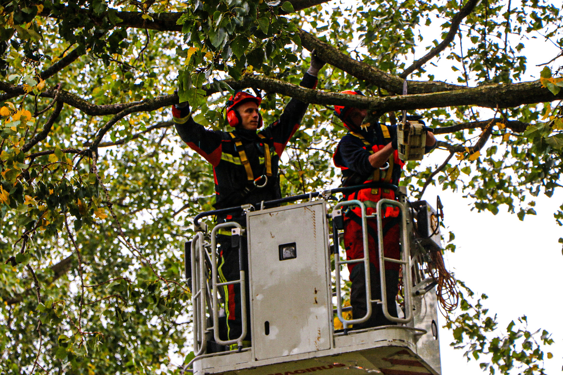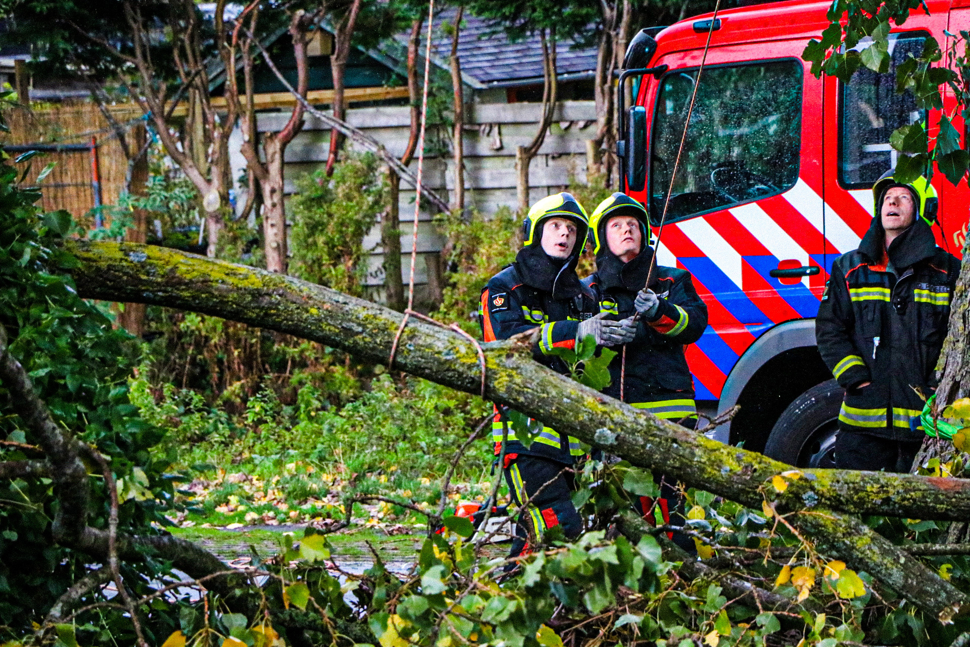 Na het eerste najaarsstormpje van donderdag is de brandweer ook vandaag nog in actie gekomen om gevaarlijk loshangende takken in de stad te verwijderen. Bij het Stuyvesanthof dreigden dikke takken vanmiddag op een woning en een fietspad te vallen.