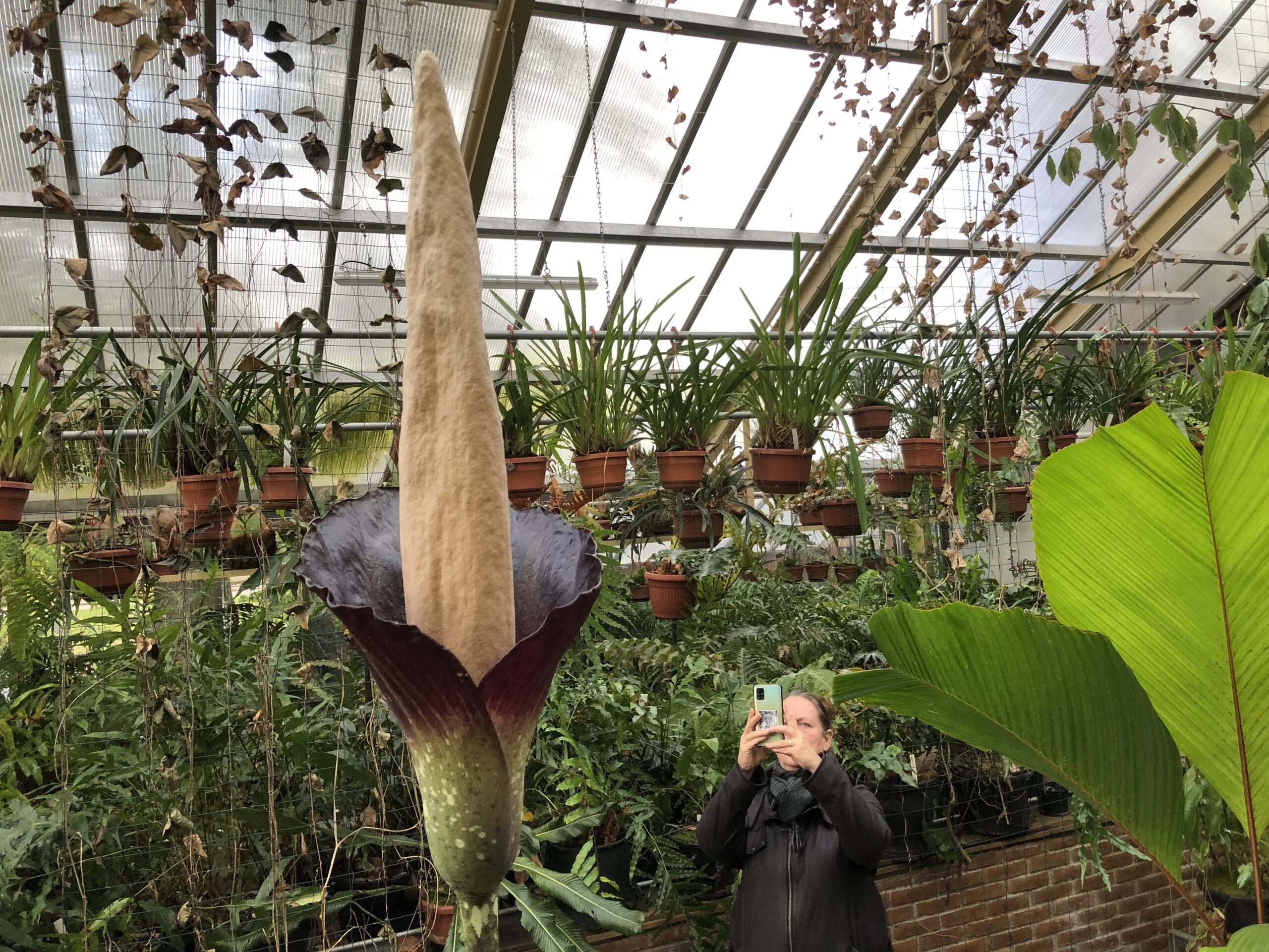 Het was lang spannend of de plant echt tot bloei zou komen. In september liet de penisplant een bloemknop zien, het teken dat de plant weer tot bloei gaat komen. Deze planten maken namelijk eerst een grote knol onder grond waaruit daarna een punt boven de grond komt steken. De plant bloeit in ieder geval twee dagen, maar in sommige gevallen wat langer.