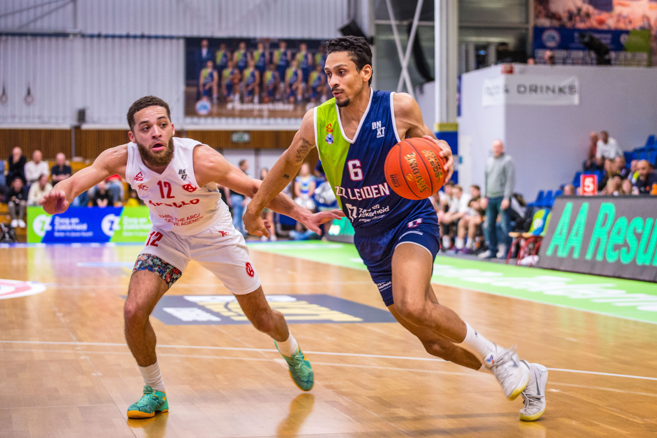 Midtgaard was deze wedstrijd wederom goed voor een double double: 25 punten en 12 rebounds. De 21 punten van Tubutis betekenden een season-hi. Dunn had eveneens 21 punten door 7 driepunters binnen te schieten. Van Bree eindigde op 15 punten. De Jong deelde 12 assists uit en dat was een career-hi voor Leidse swingman.