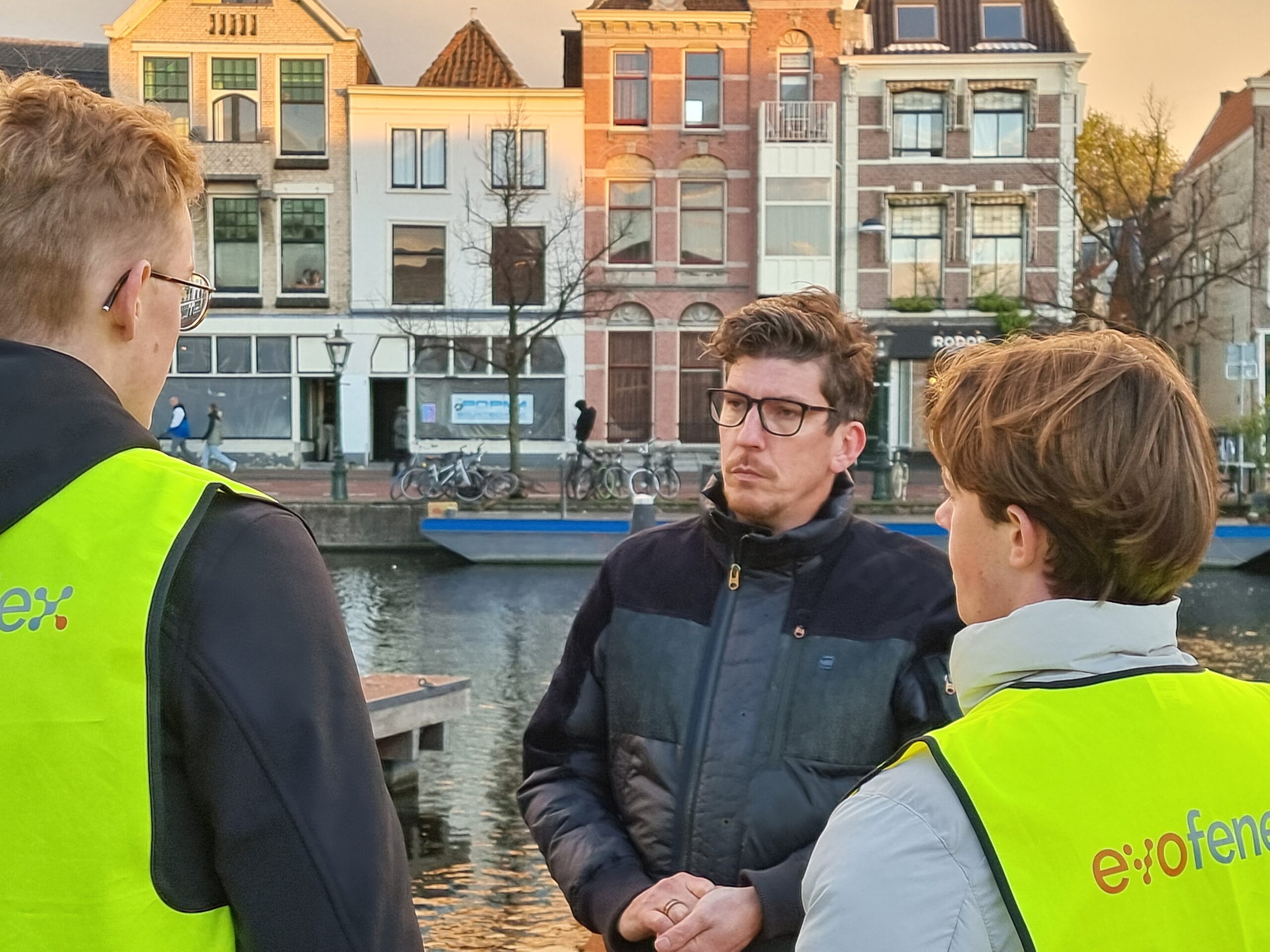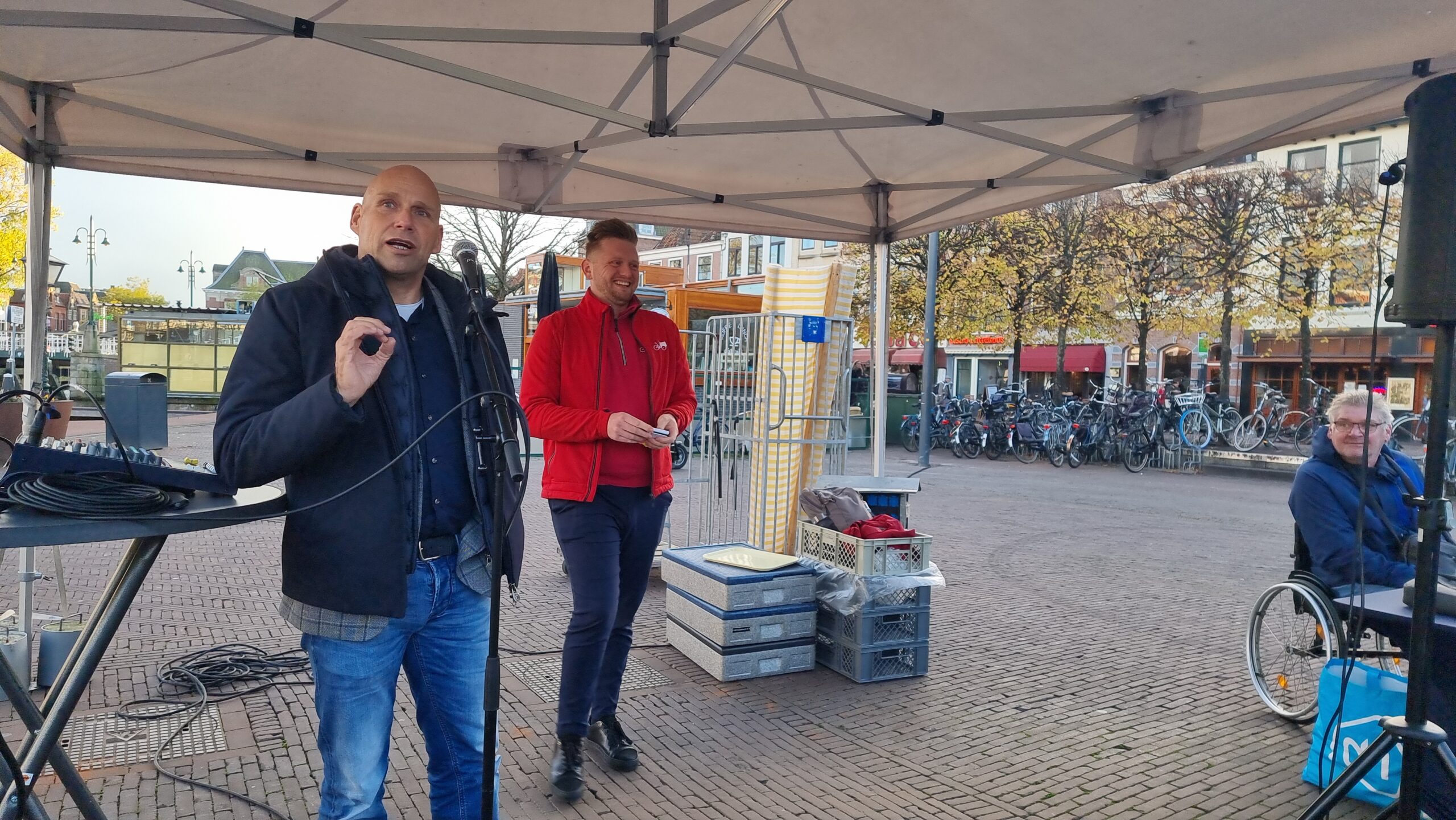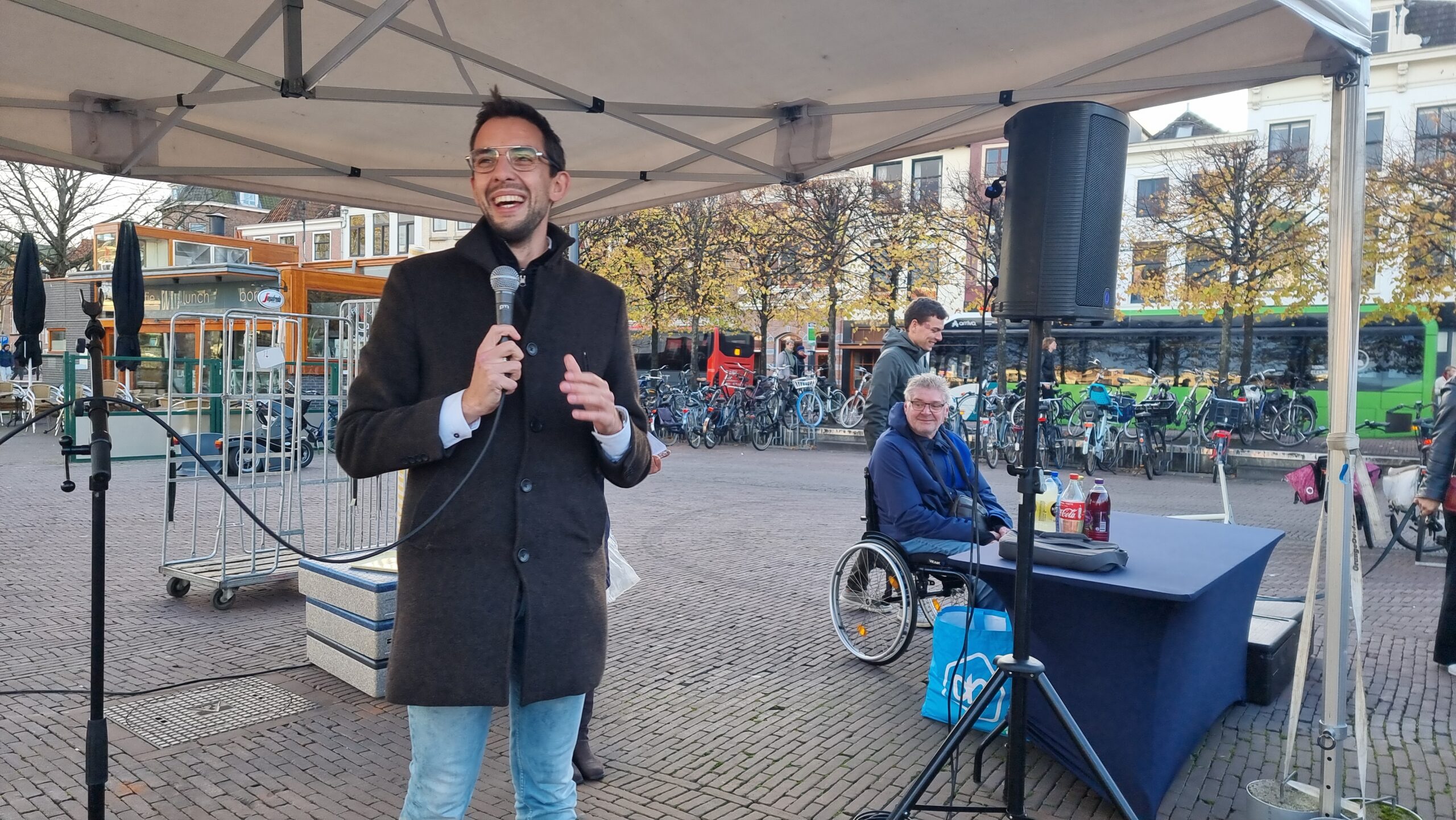 Chris de Waard in gesprek met wethouder Ashley North (mobiliteit) over de stand van zaken in Leiden op het gebied van duurzame distributie.