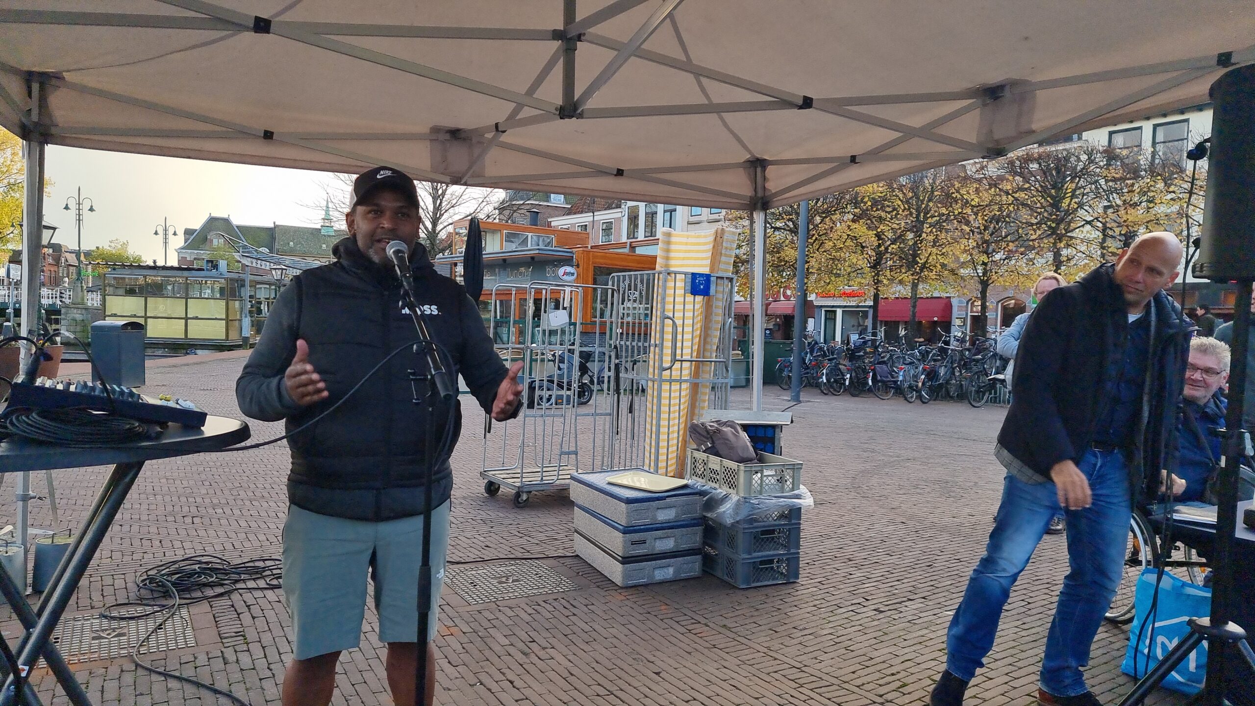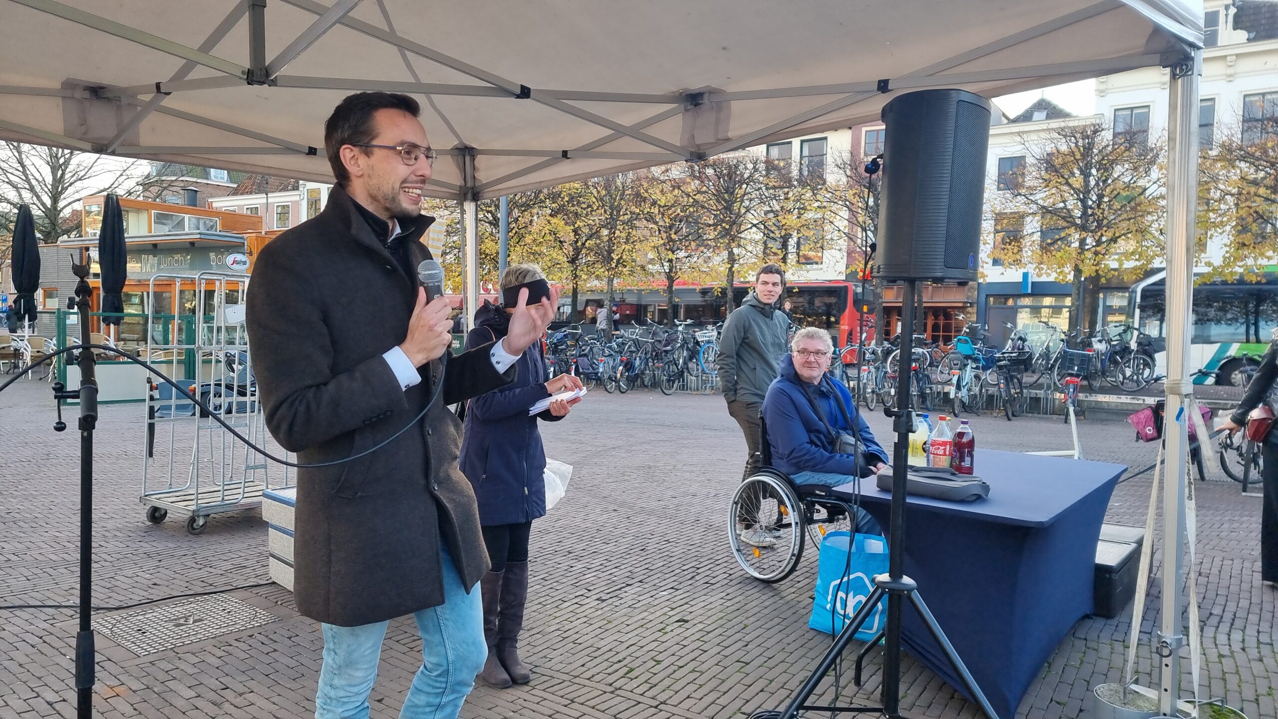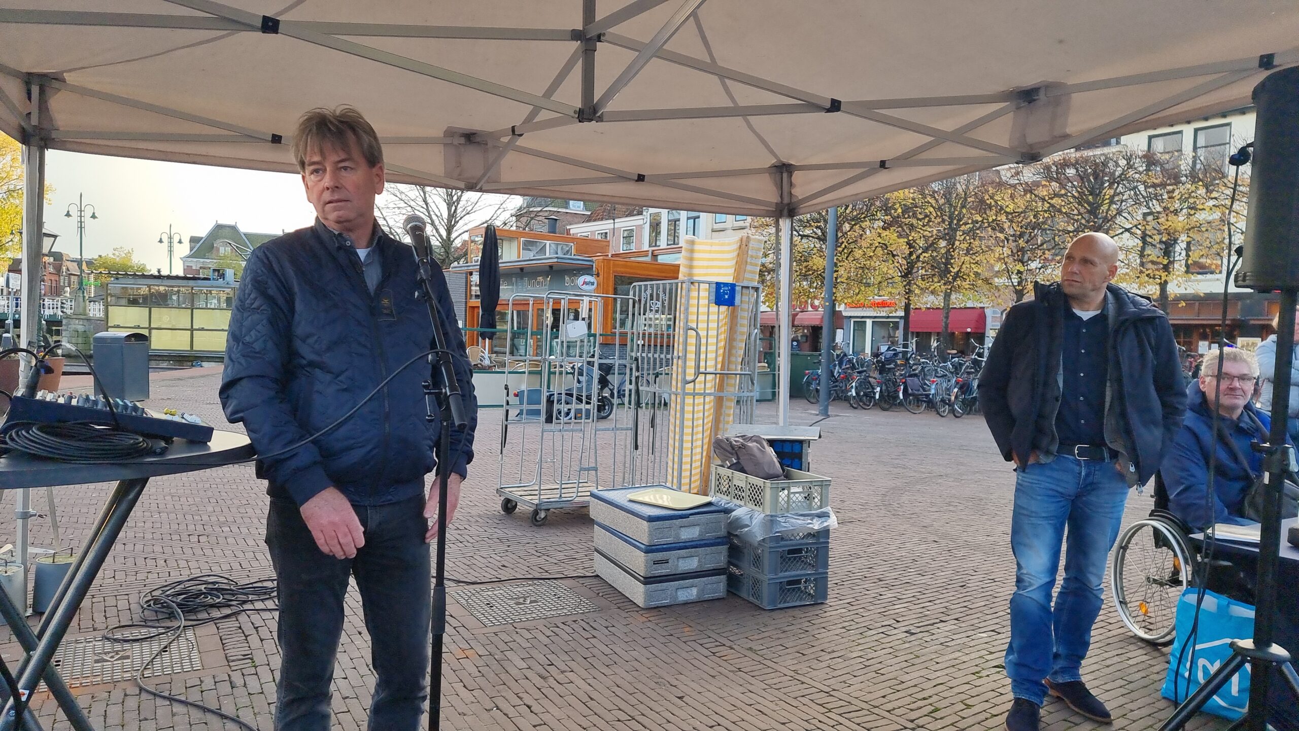 Chris de Waard in gesprek met wethouder Ashley North (mobiliteit) over de stand van zaken in Leiden op het gebied van duurzame distributie.