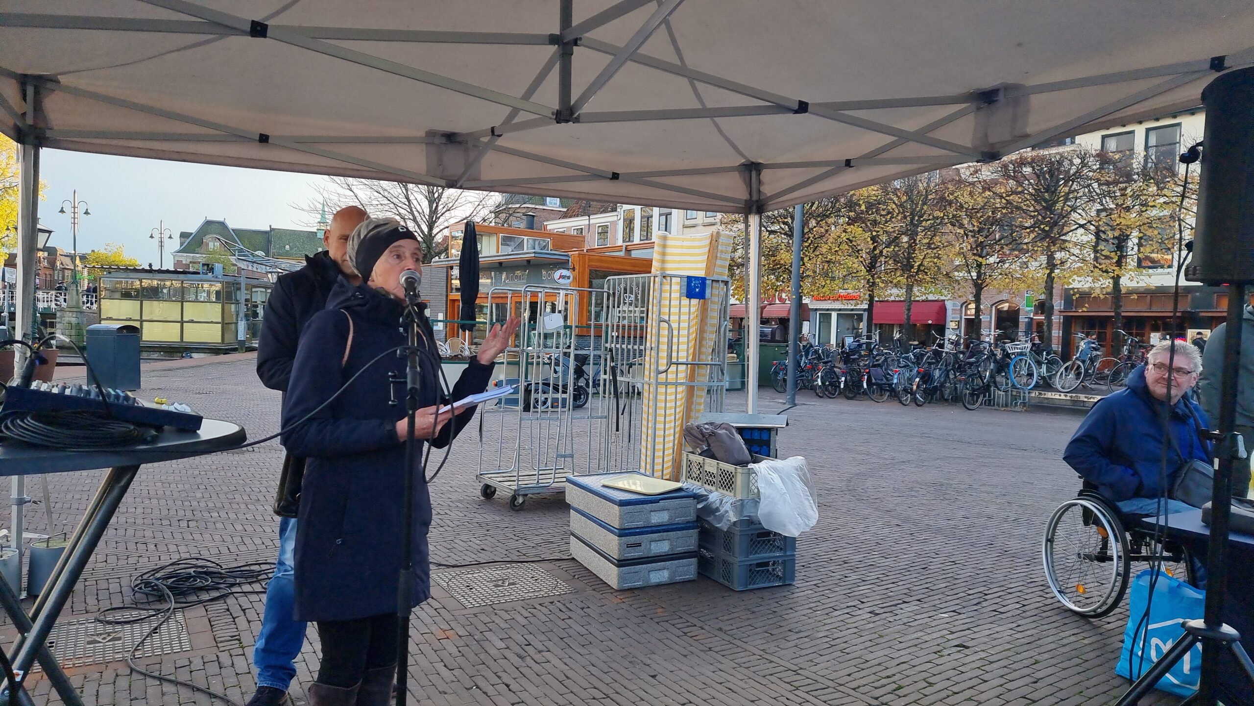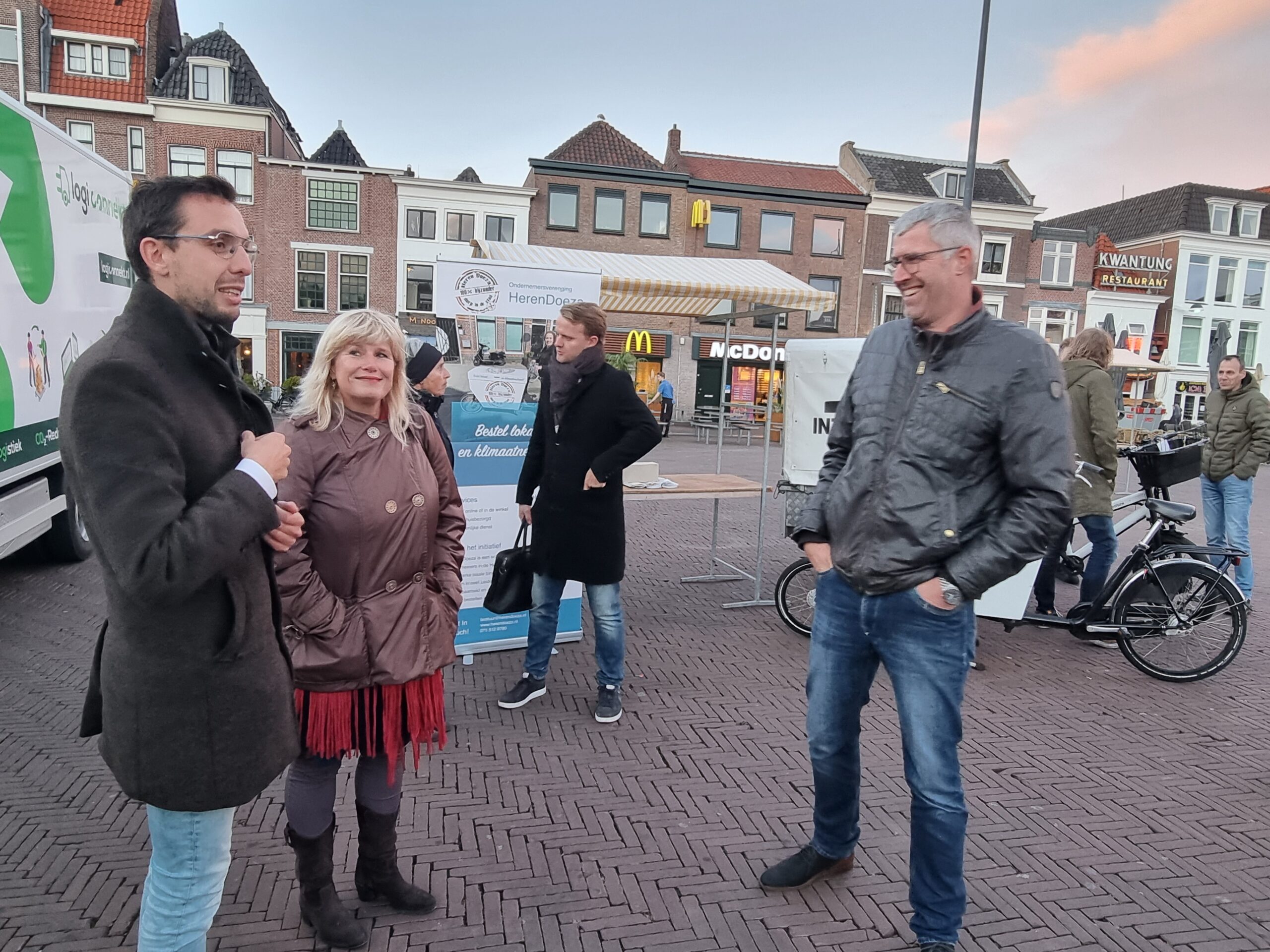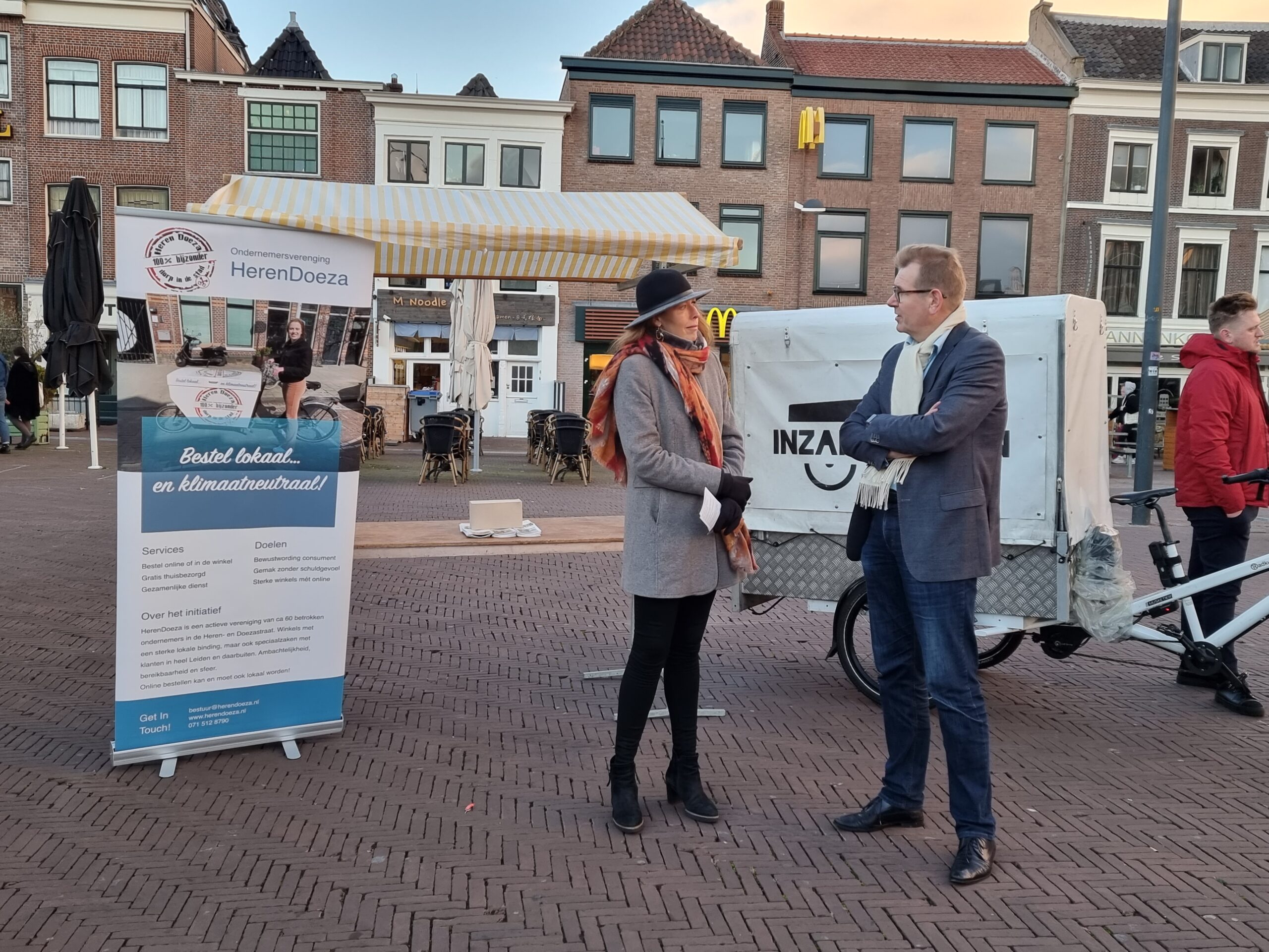 Op het ZES Festival konden enkele Leidse koplopers op het gebied van duurzaam vervoer, zoals MOSS, LessGo, Logiconnekt, City Hub en CityBarge, zich aan geïnteresseerde ondernemers presenteren. Die waren er echter amper. Het was dan ook ijzig koud op het plein. “We gaan dit in de zomer nog en keer herhalen”, beloofde wethouder North die zelf wel uitgebreid met alle initiatiefnemers in gesprek ging. Net als zijn collega-wethouder Yvonne van Delft die economie in haar portefeuille heeft.