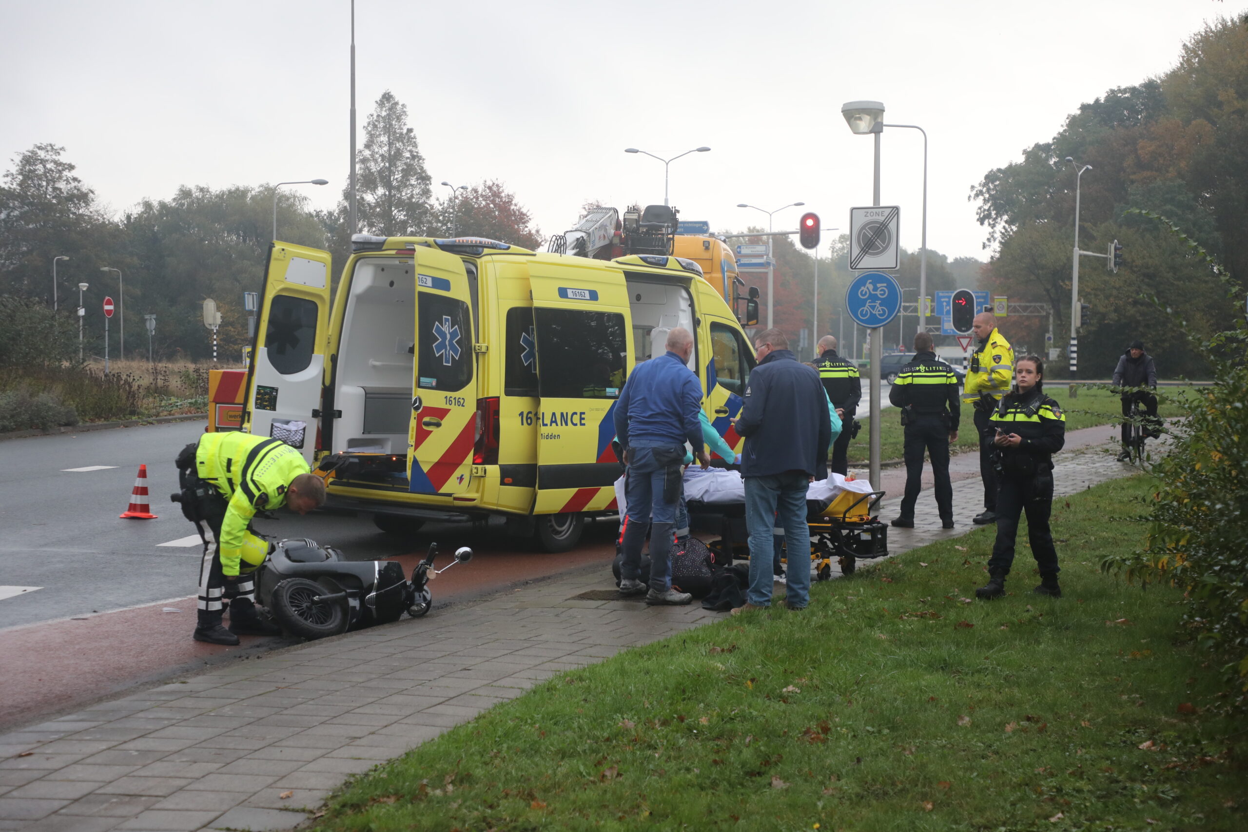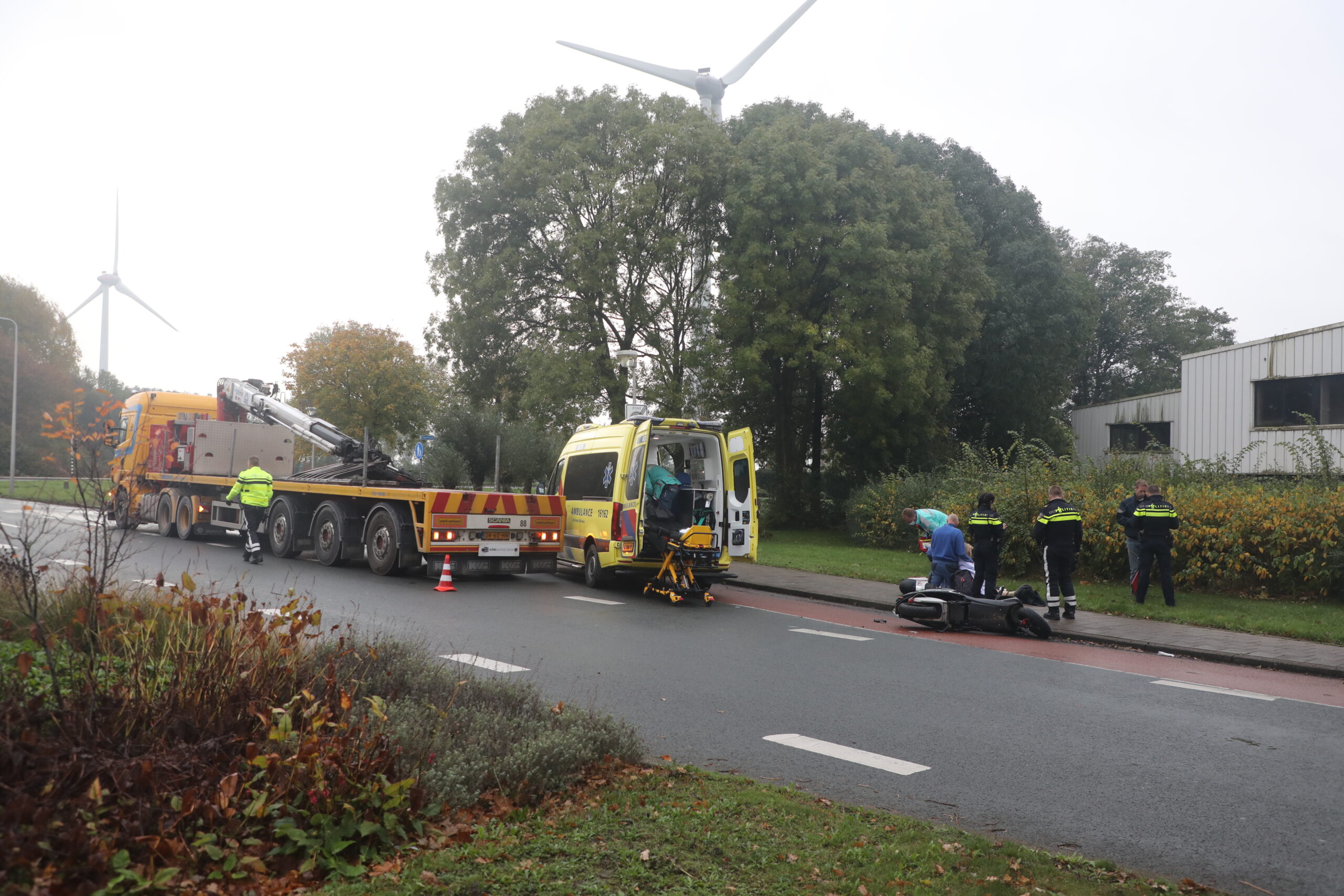 Een scooterrijdster is dinsdagmorgen gewond geraakt bij een aanrijding met een vrachtwagen. Dat gebeurde rond 9.00 uur op de Industrieweg in Zoeterwoude.
