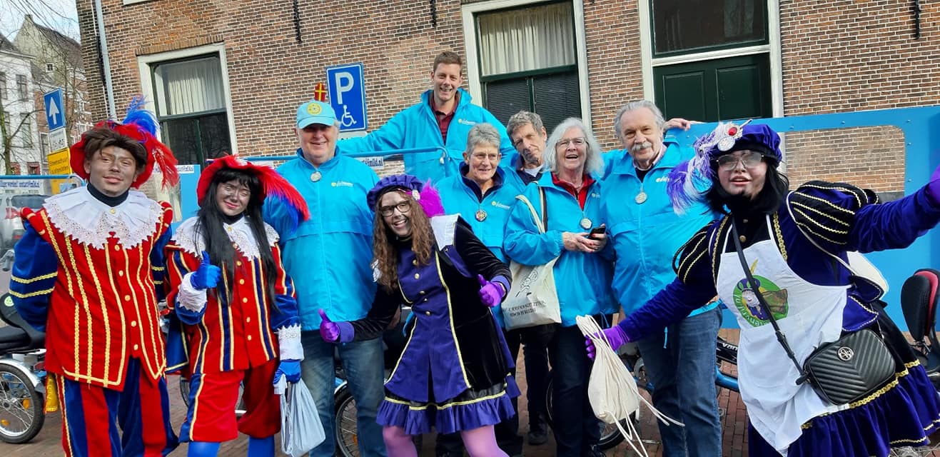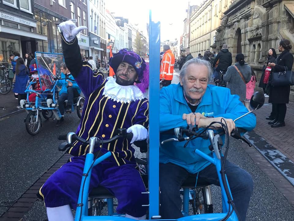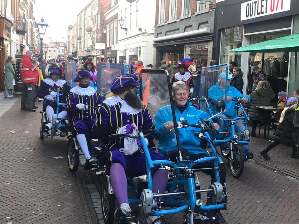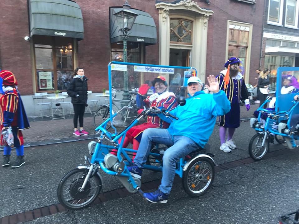 De fietsmaatjes waren zaterdag ook te vinden bij de sinterklaasintocht in het centrum van Leiden. “Want de Pieten zijn natuurlijk heel erg moe van die lange reis!” (Foto’s: Fietsmaatjes LeidenLeiderdorp).