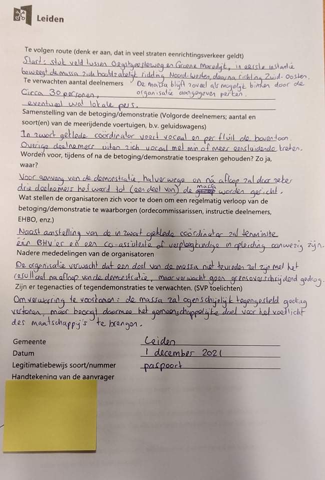Morgenochtend gaat trainer van LSVV Wietse Jelles naar het politiebureau aan de Langegracht om de demonstratie officieel aan te kondigen. “De betoging wordt afgekondigd door een in het zwart geklede coördinator”, schrijft de club in de aanvraag, verwijzend naar de scheidsrechter. “De coördinator voert vocaal en met de fluit de boventoon.” De demonstratie wordt aangevraagd voor de duur van de wedstrijd. “We verwachten dat een deel van de massa na de demonstratie niet tevreden zal zijn.”