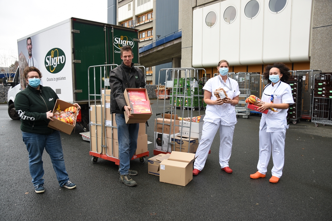 Horecagroothandel Sligro heeft de ziekenhuizen in de Leidse regio vrijdag getrakteerd op snoepgoed. De voedselleverancier deed dit om het zorgpersoneel een hart onder de riem te steken. Het Alrijne ziekenhuis en het LUMC ontvingen boterletters, pepernoten en kruidnoten.