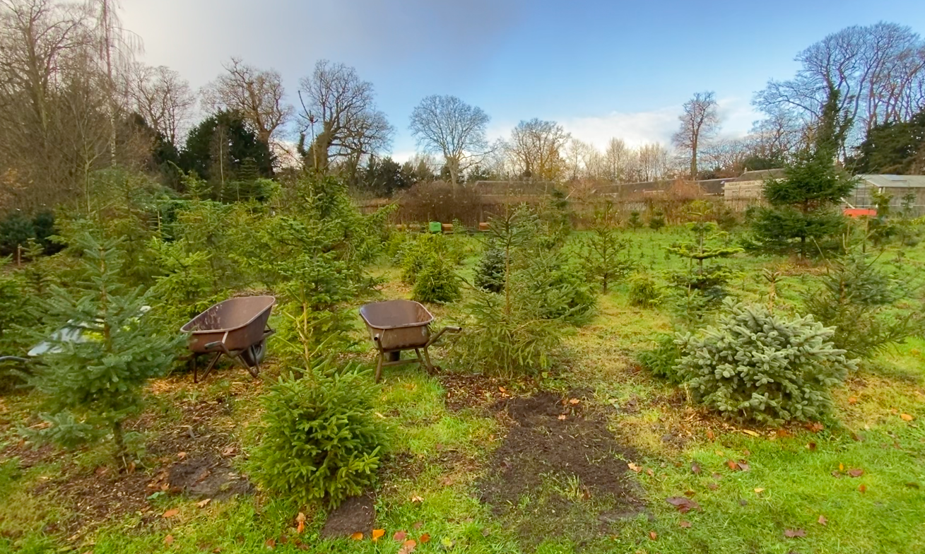 In de kasteeltuin op het landgoed is een speciaal kerstbomenbos ingericht. “Mensen mogen natuurlijk niet zomaar overal in het bos een willekeurige boom uitgraven. We hebben een stuk afgezet waar ze er eentje uit mogen kiezen. Scheppen en kruiwagens hebben we al klaarstaan”, vertelt opzichter Dick de Vlieger.