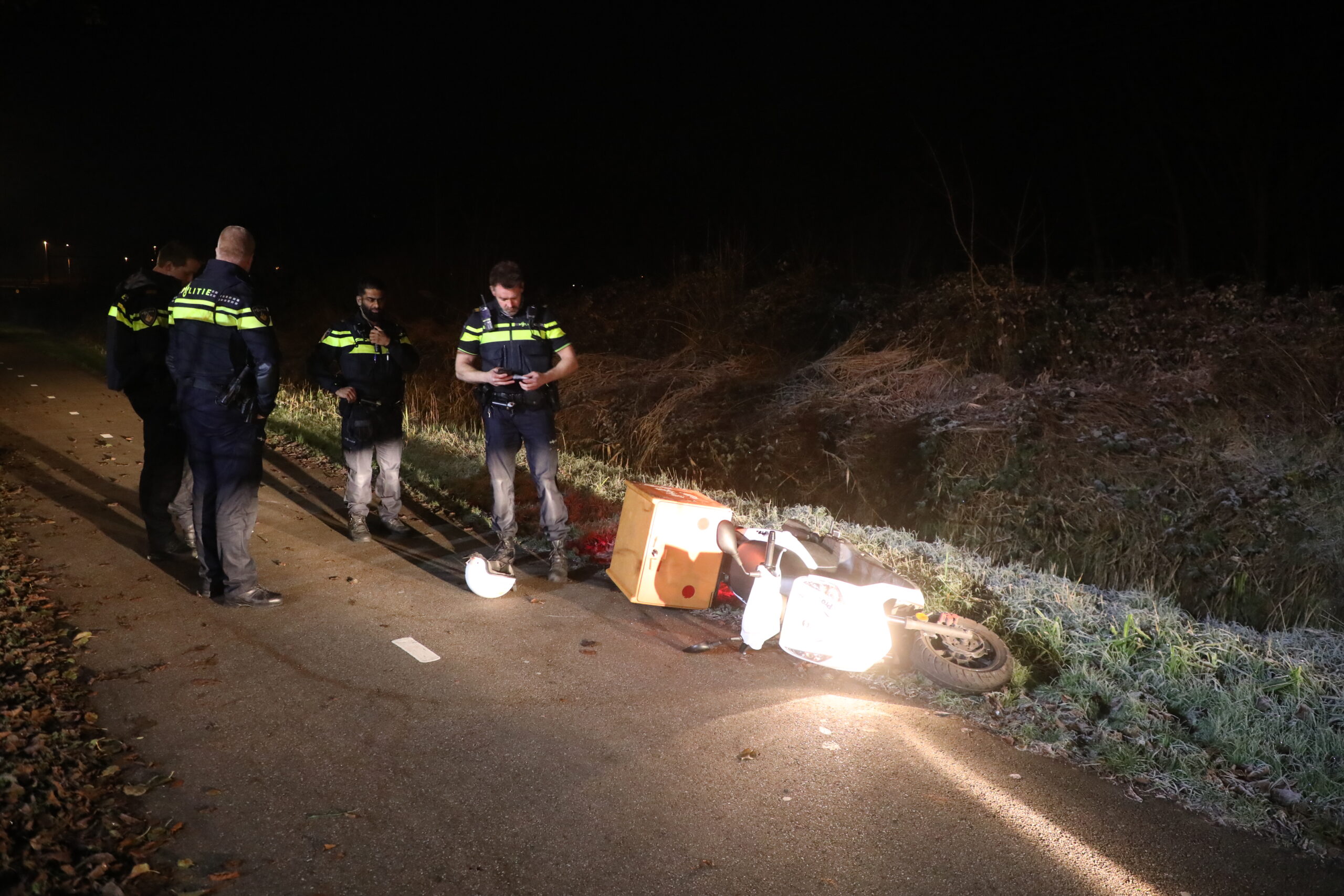 Een maaltijdbezorger is vanavond met zijn scooter op het fietspad langs de Zaalbergweg in Leiden hard onderuit gegaan. Het slachtoffer raakte bij het eenzijdig ongeval gewond en is per ambulance overgebracht naar het ziekenhuis.