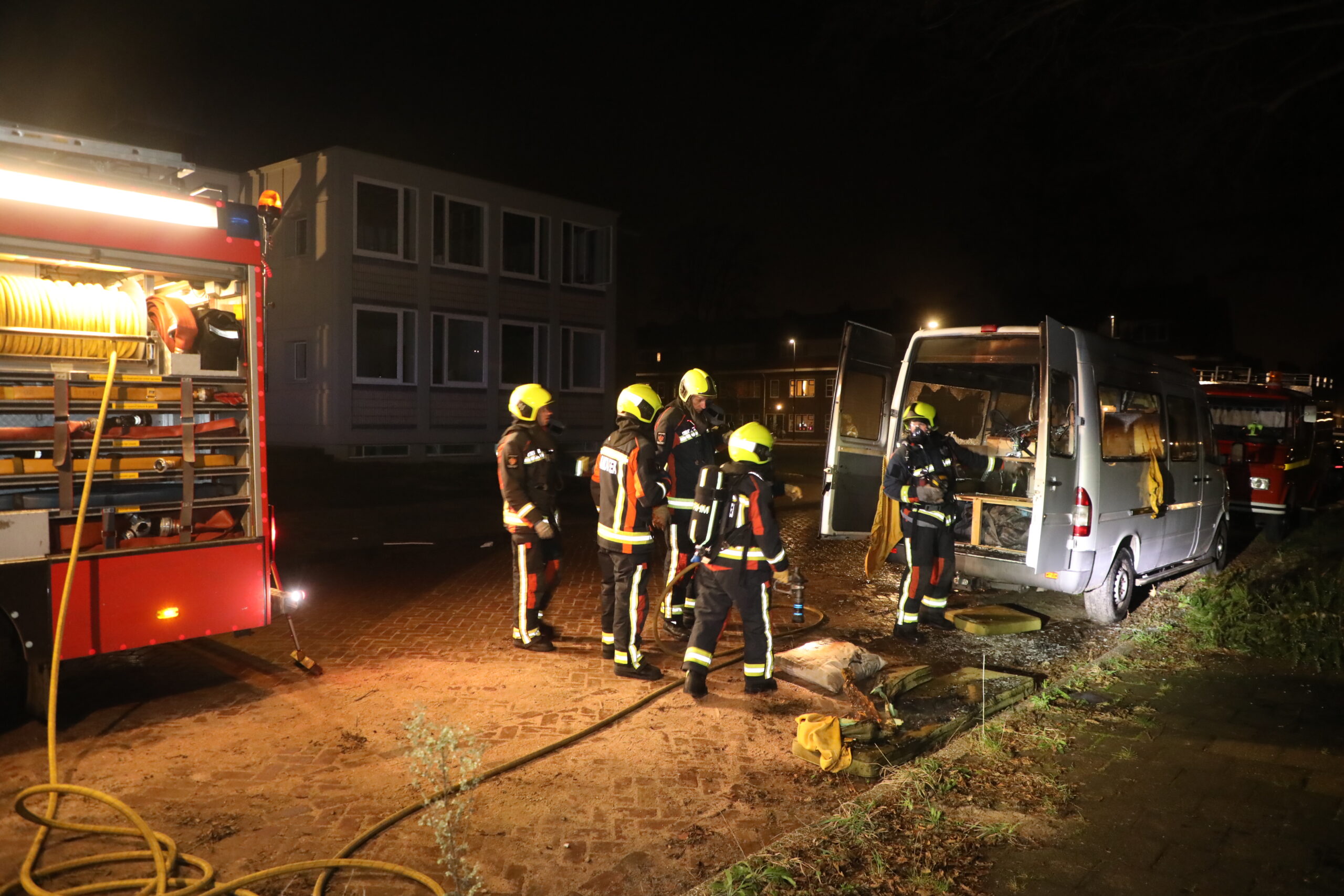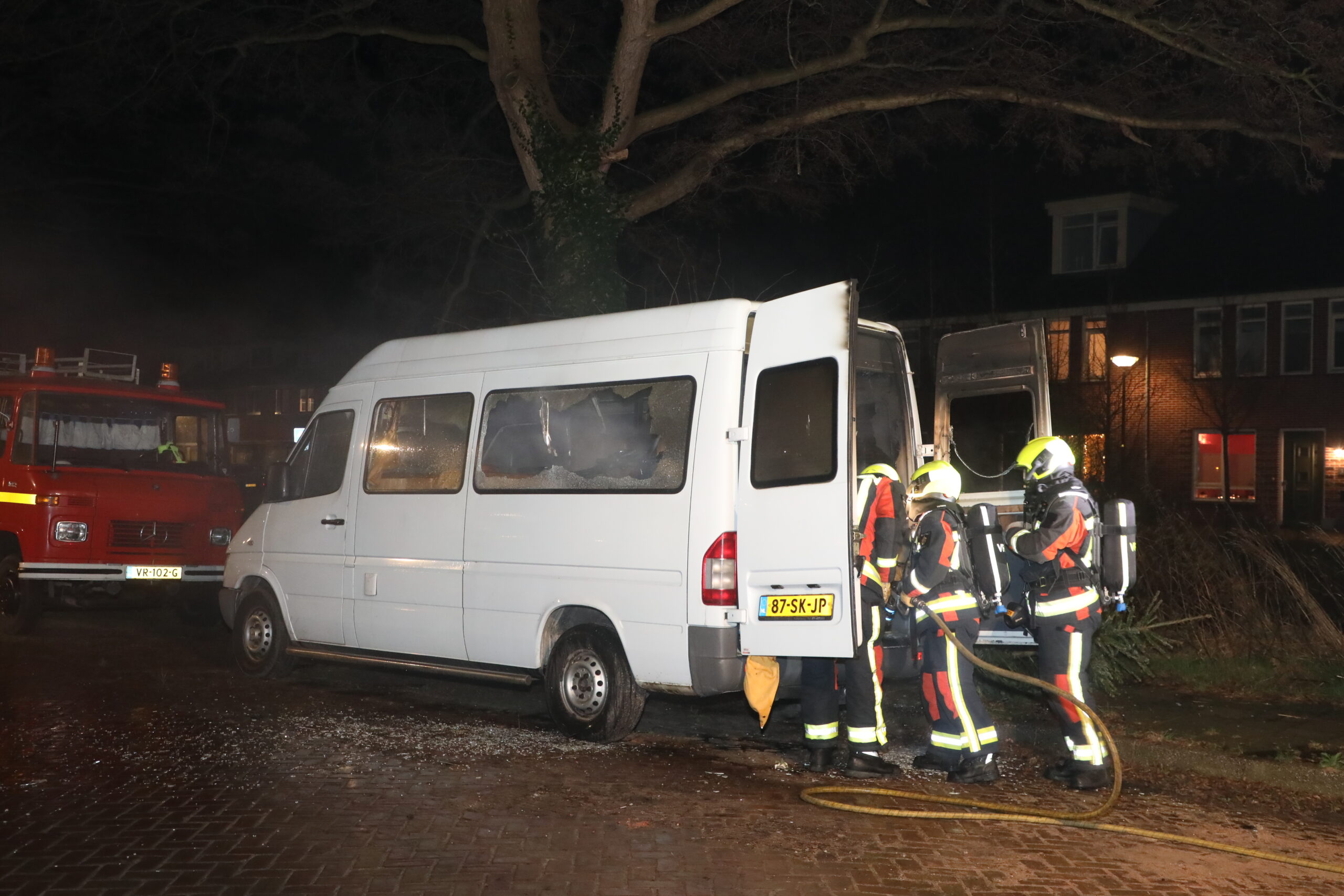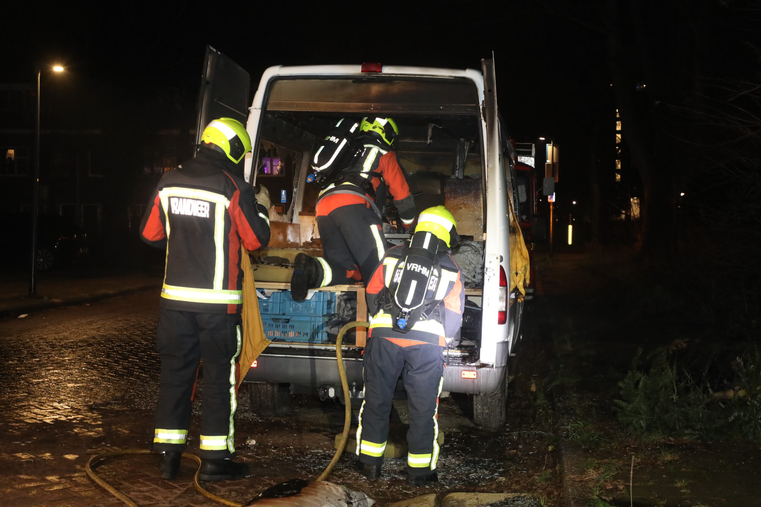 Aan de Toussaintkade in Leiden bleek rond 22.00 uur vanavond een bestelbus in brand te staan. De geparkeerde bus raakte daarbij zwaar beschadigd.
