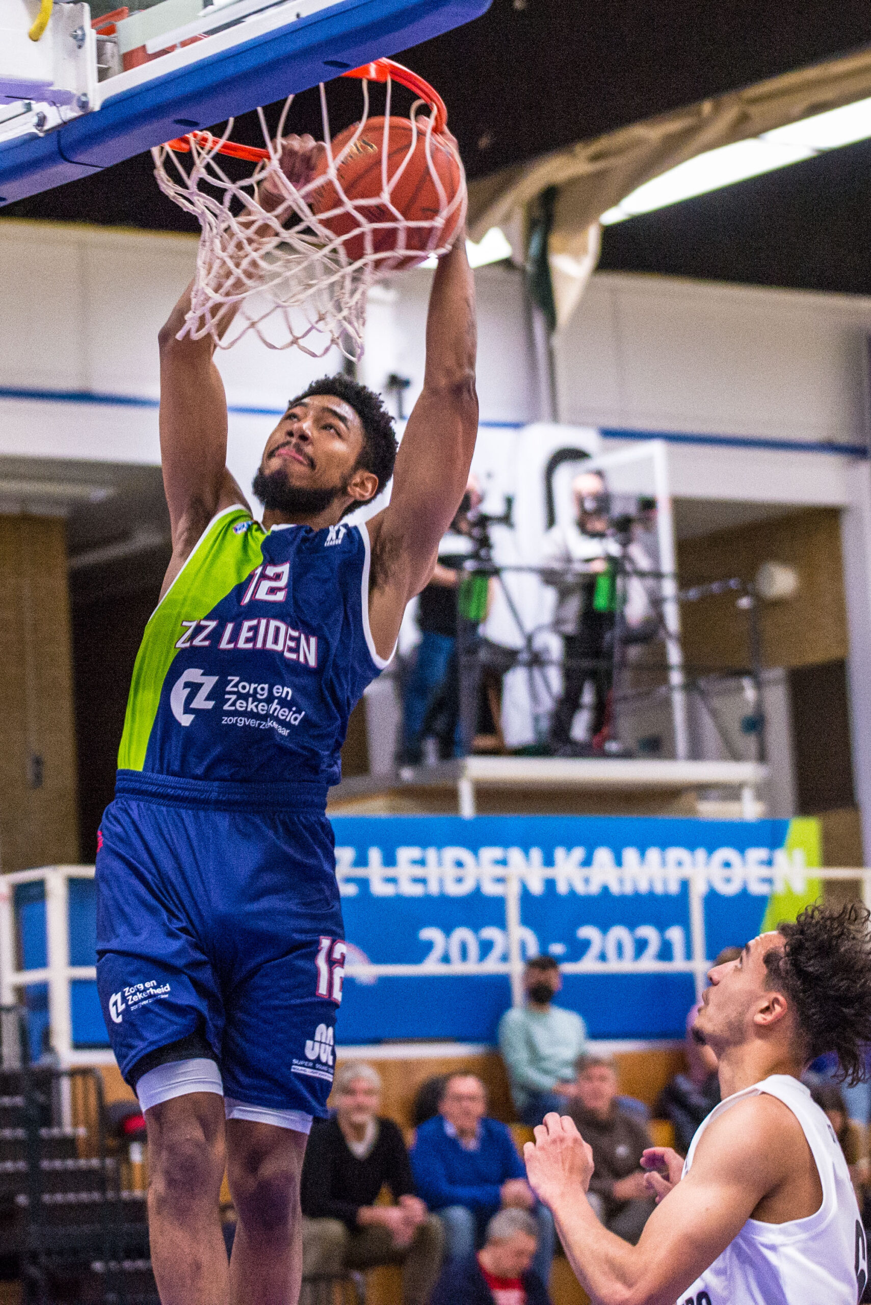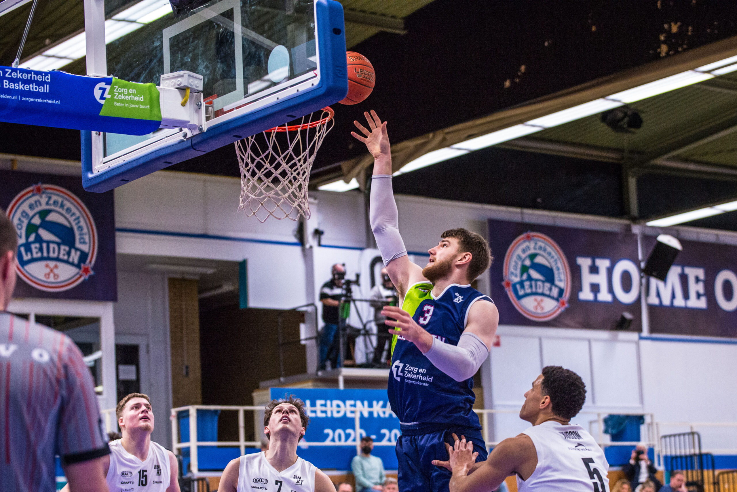 Quincy Tjon Affo, die inmiddels binnen de lijnen was gekomen, viel niet uit de toon en schoot zijn eerste bal meteen raak. Van alle kanten dunkte Zorg en Zekerheid Leiden er via Dunn, Tubutis en Luuk van Bree er op los. Een jumpertje van Jamayro de Windt zorgde drie minuten voor tijd voor het grootste verschil in de wedstrijd: 91-63. Met zijn eerste punt in de eredivisie tekende Kevin Jonathan voor de 94-68 eindstand.
