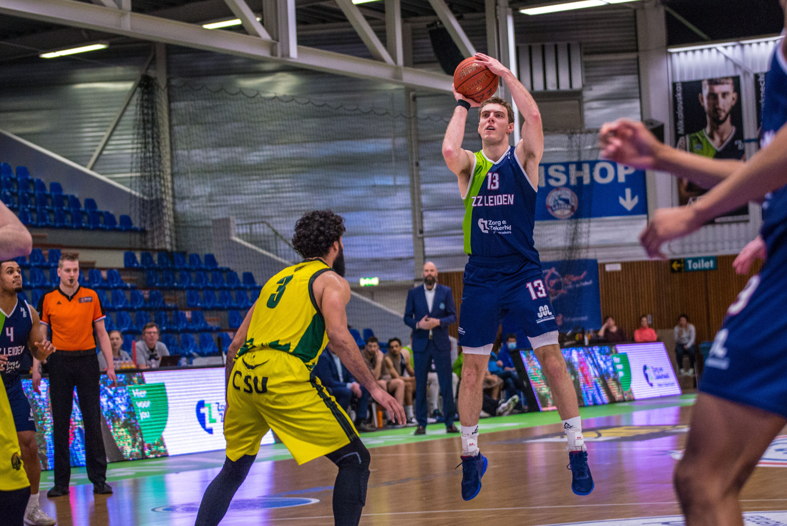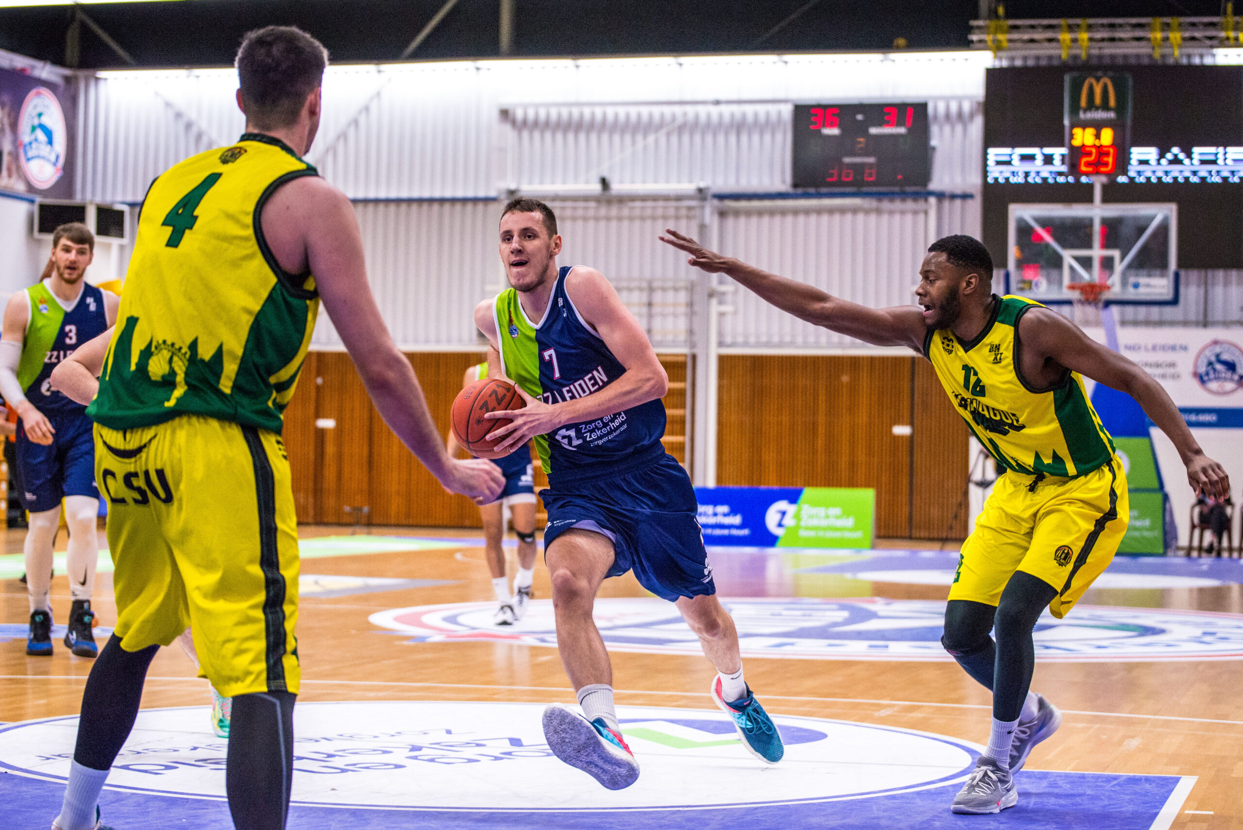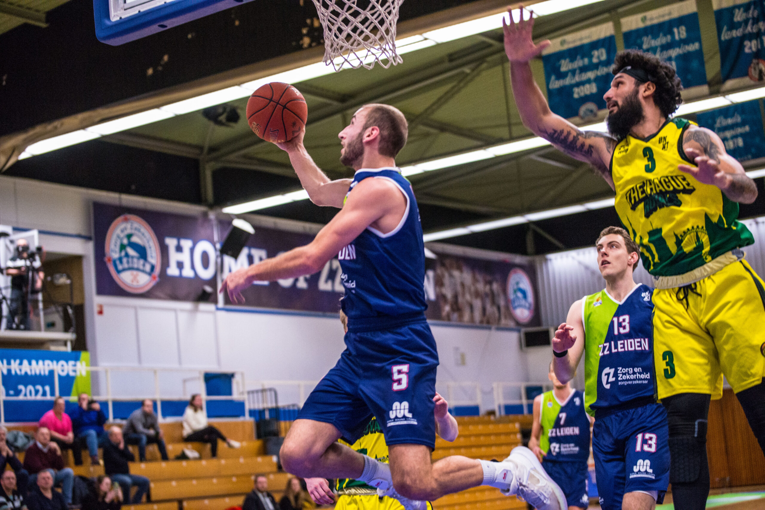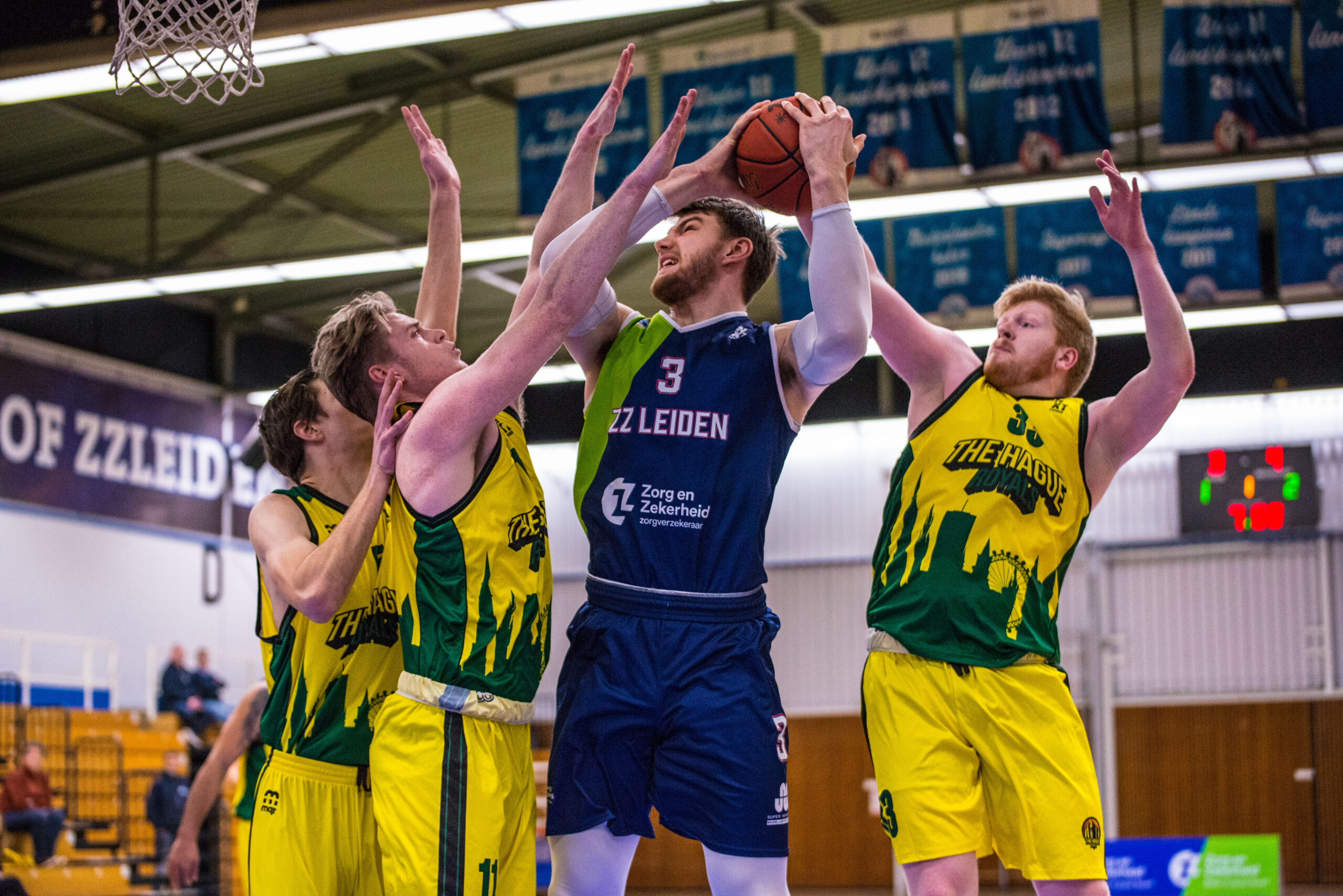 Na de pauze bleef The Hague Royals nog drie minuten bij, maar daarna maakte ZZ Leiden snel een einde aan de spanning. Via een 18-0 run snelde de Leidse ploeg naar 59-39. Arunas Mikalauskas pakte wat puntjes mee, De Jong en een dunkende Asbjørn Midtgaard leverden allebei een and-1 af, Marijn Ververs liet een drietje door het netje glijden en datzelfde deed Tubutis. Via een driepunter van Quincy Tjon Affo werd het derde kwart afgesloten bij 64-41.