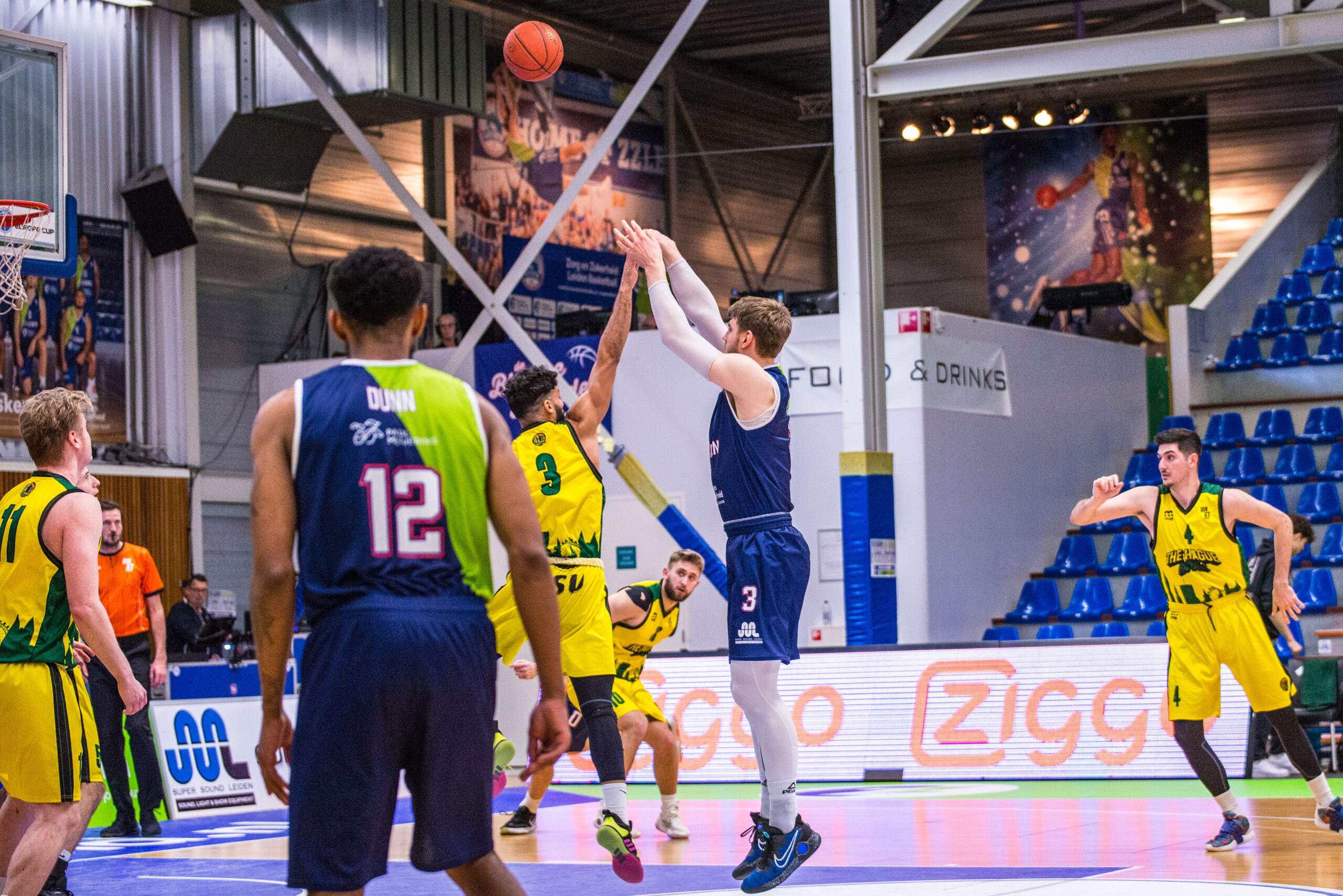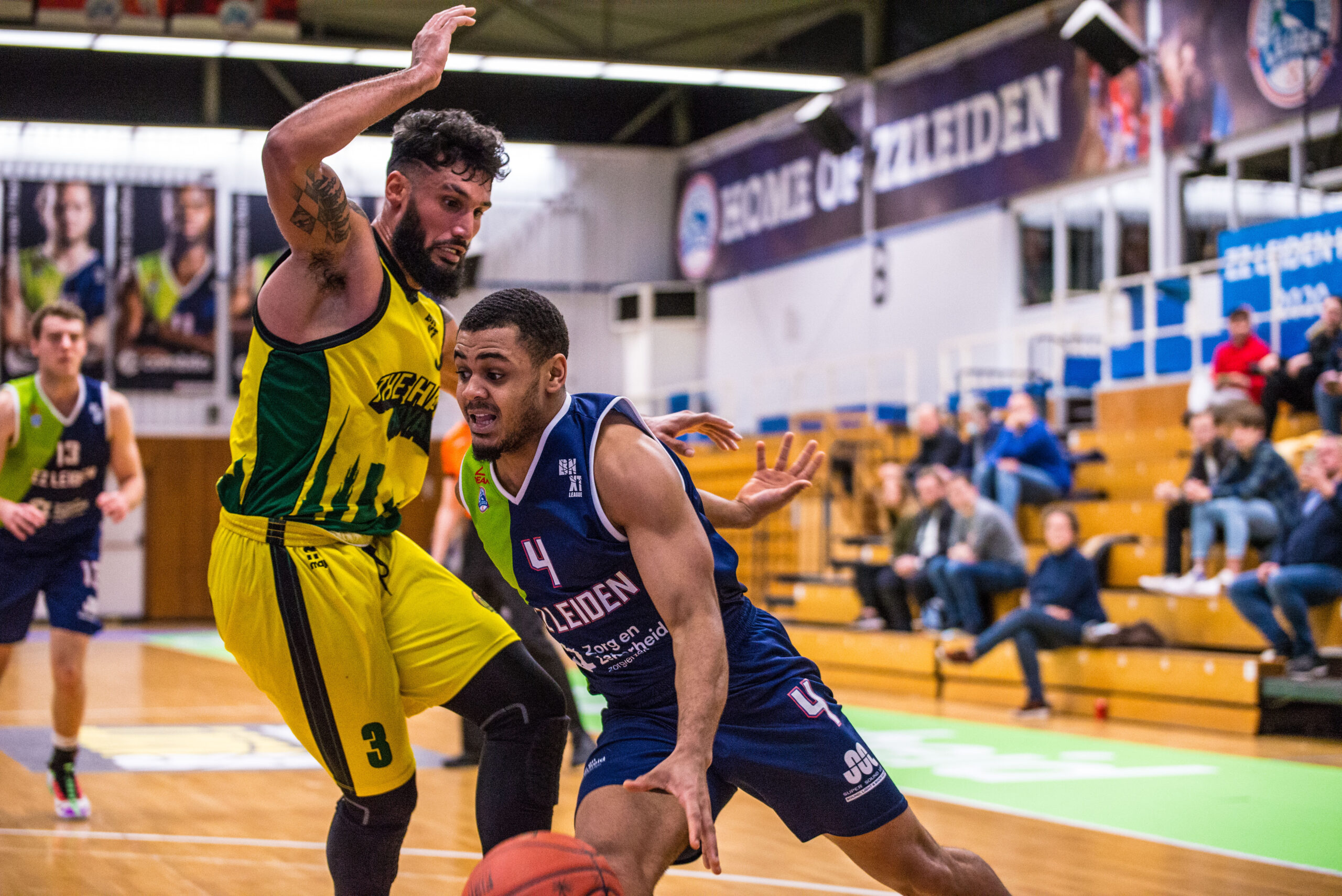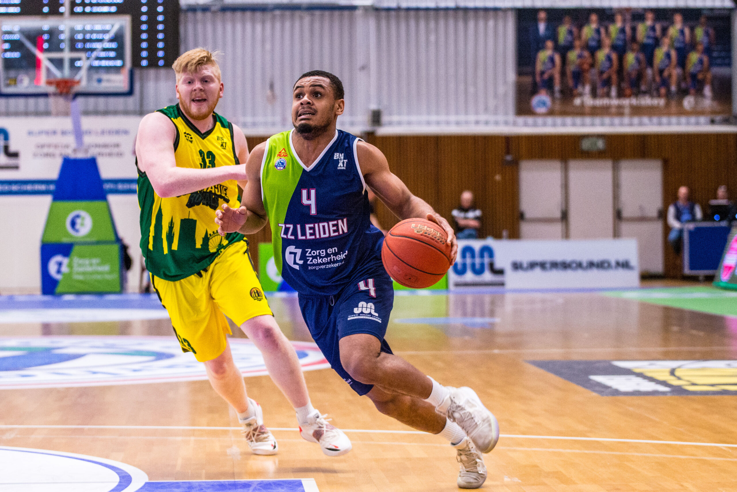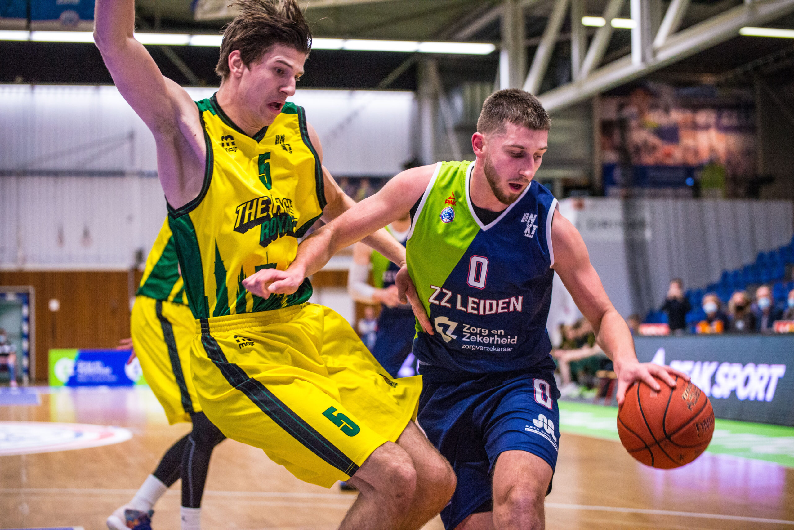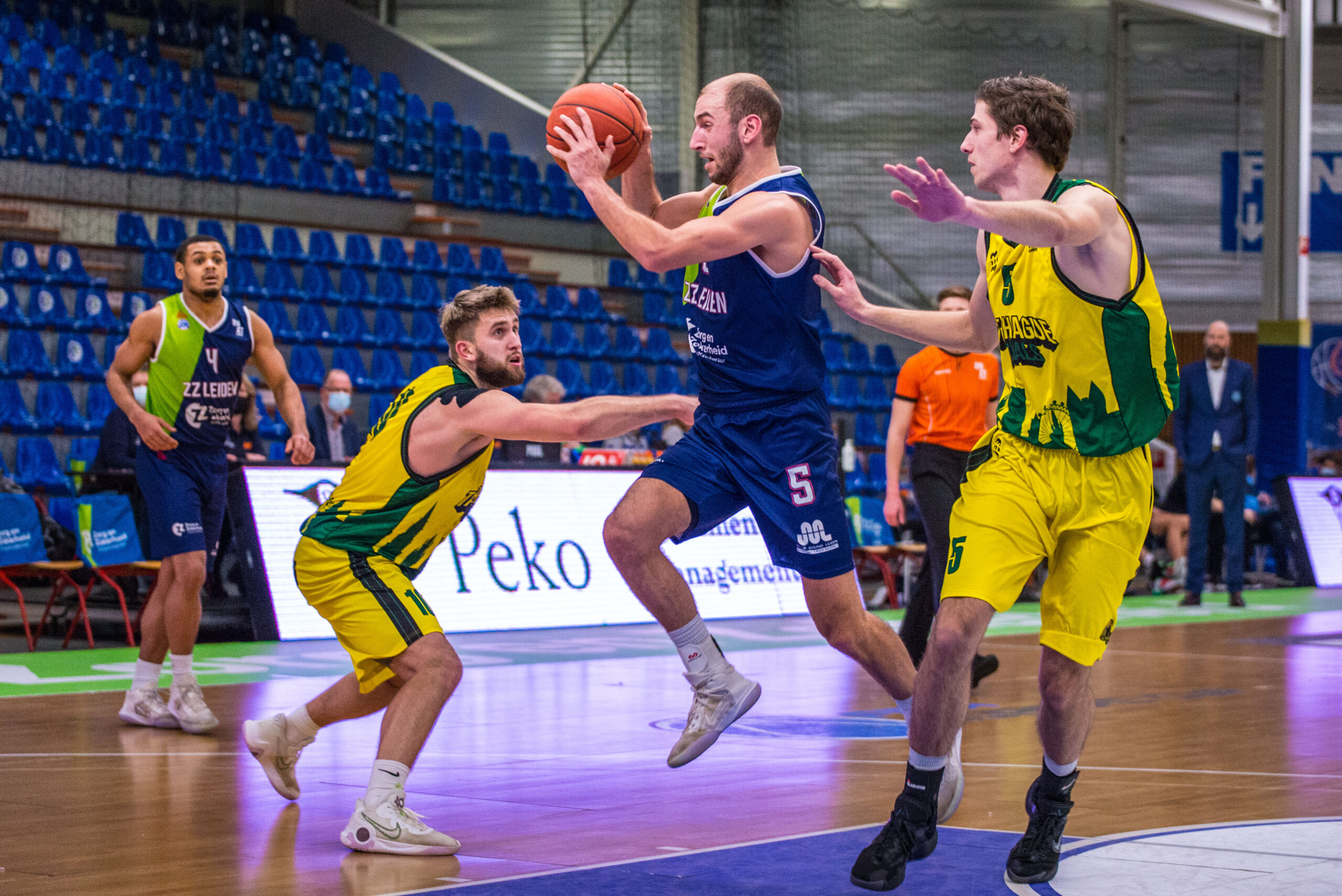 De Leidse ploeg speelde zonder Worthy de Jong, Maarten Bouwknecht en Quincy Tjon Affo, maar met debutant Lucas Kruithof. In het laatste kwart kwam de Leidse ploeg dertig punten voor te staan, maar uiteindelijk liep de marge terug naar: 80-66.