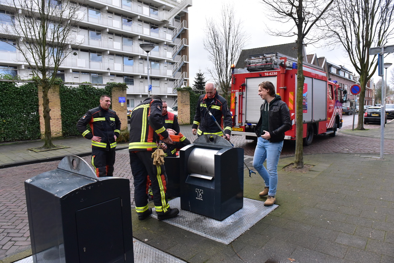 Een man uit Leiden heeft vanmorgen met hulp van de brandweer zijn tasje terug met daarin diverse pasjes en een portemonnee. Het tasje van de man was donderdagavond per abuis meegegooid met een vuilniszak in een ondergrondse afvalcontainer aan de Morsweg.