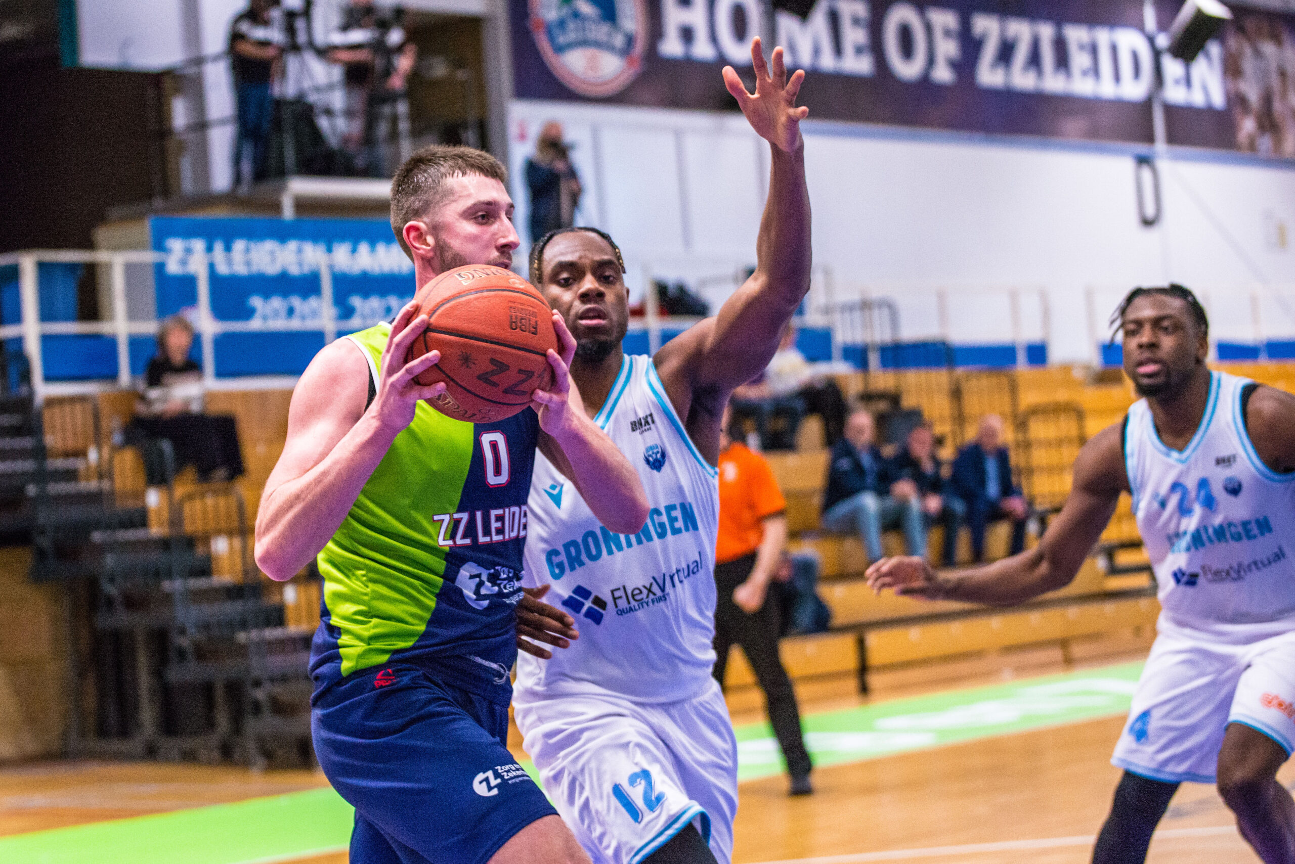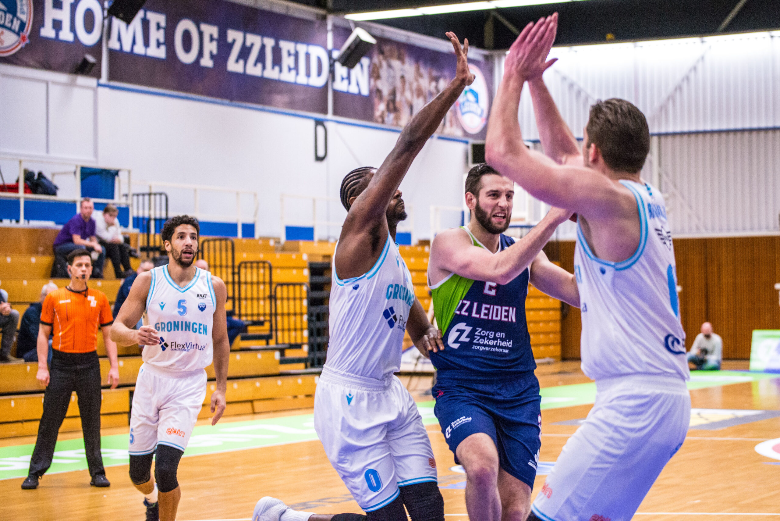 Een zwaar gehandicapt Zorg en Zekerheid Leiden heeft tegen aartsrivaal Donar een kleine nederlaag geleden. Coach Geert Hammink moest het stellen zonder Worthy de Jong, Marijn Ververs en Jamayro de Windt, terwijl Quincy Tjon Affo en Mees van ’t Hoff op de bank zaten maar eigenlijk ook niet inzetbaar waren. Dat betekende veel speeltijd voor de zeven overige spelers en dat was net even te veel. Via een ruststand van 35-35 werd het 69-71 voor Donar.