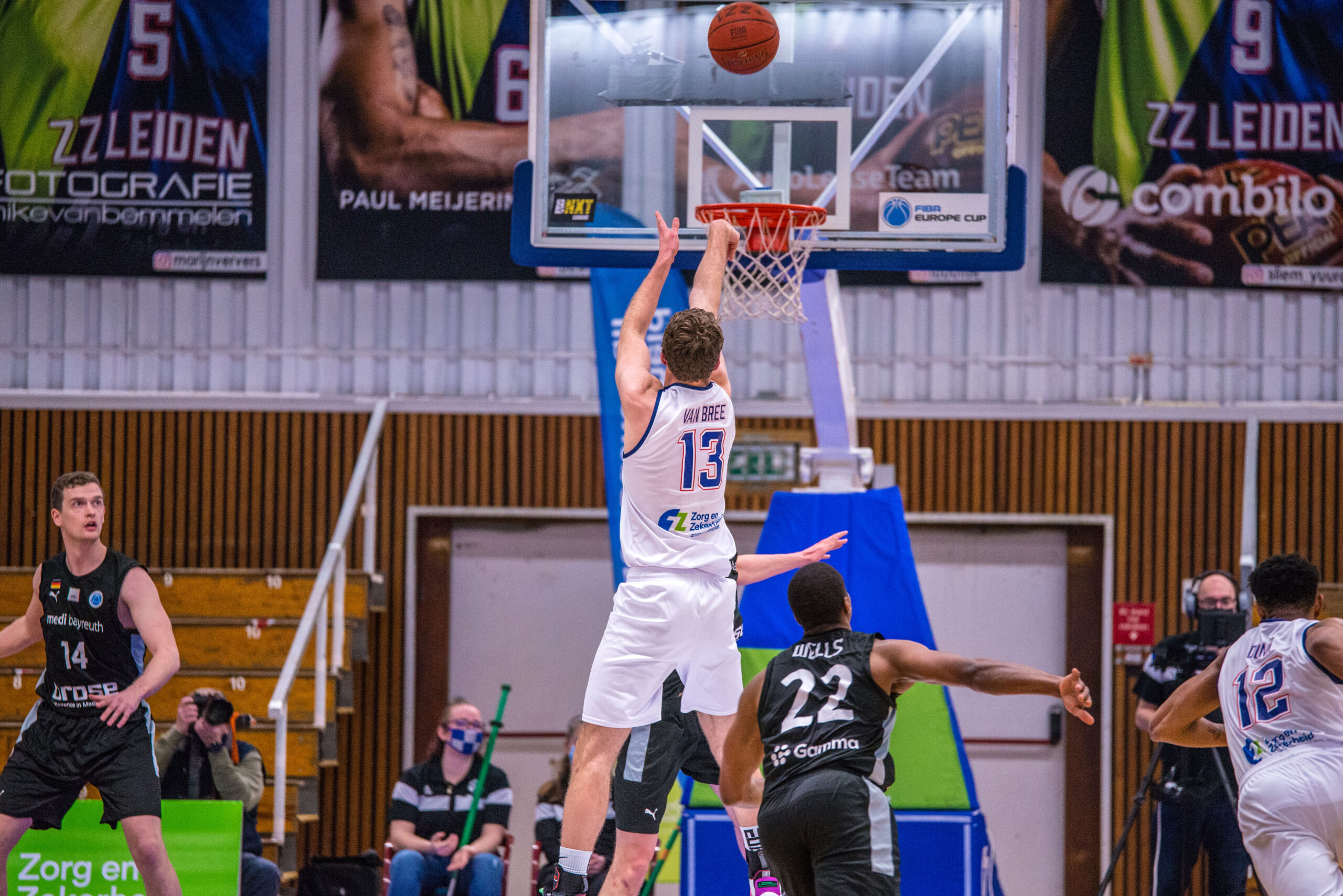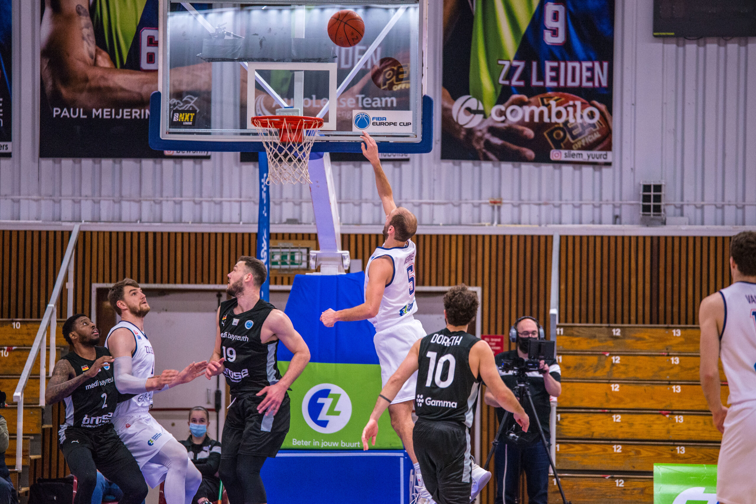 Zorg en Zekerheid Leiden ligt op koers voor een plek in de kwartfinale van de FIBA Europe Cup. Voor de tweede keer was de Leidse ploeg te sterk voor het Duitse medi Bayreuth: 98-93. Door goed spel begon de Leidse ploeg aan het laatste kwart met een voorsprong van 21 punten. De Duitse opponent kwam in de slotfase nog terug tot 4 punten (95-91), maar Zorg en Zekerheid Leiden bleef, aangemoedigd door een fanatiek publiek, overeind.