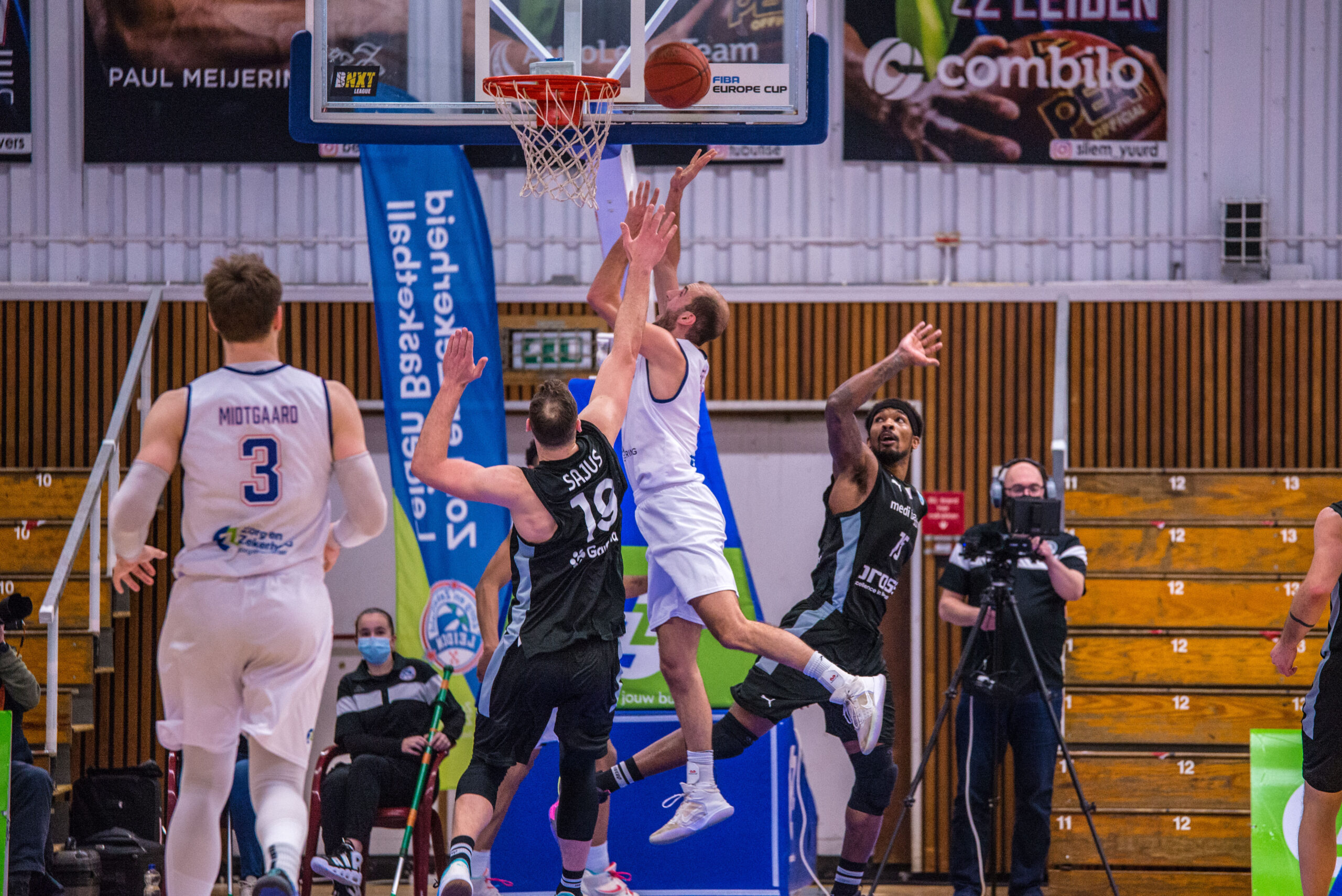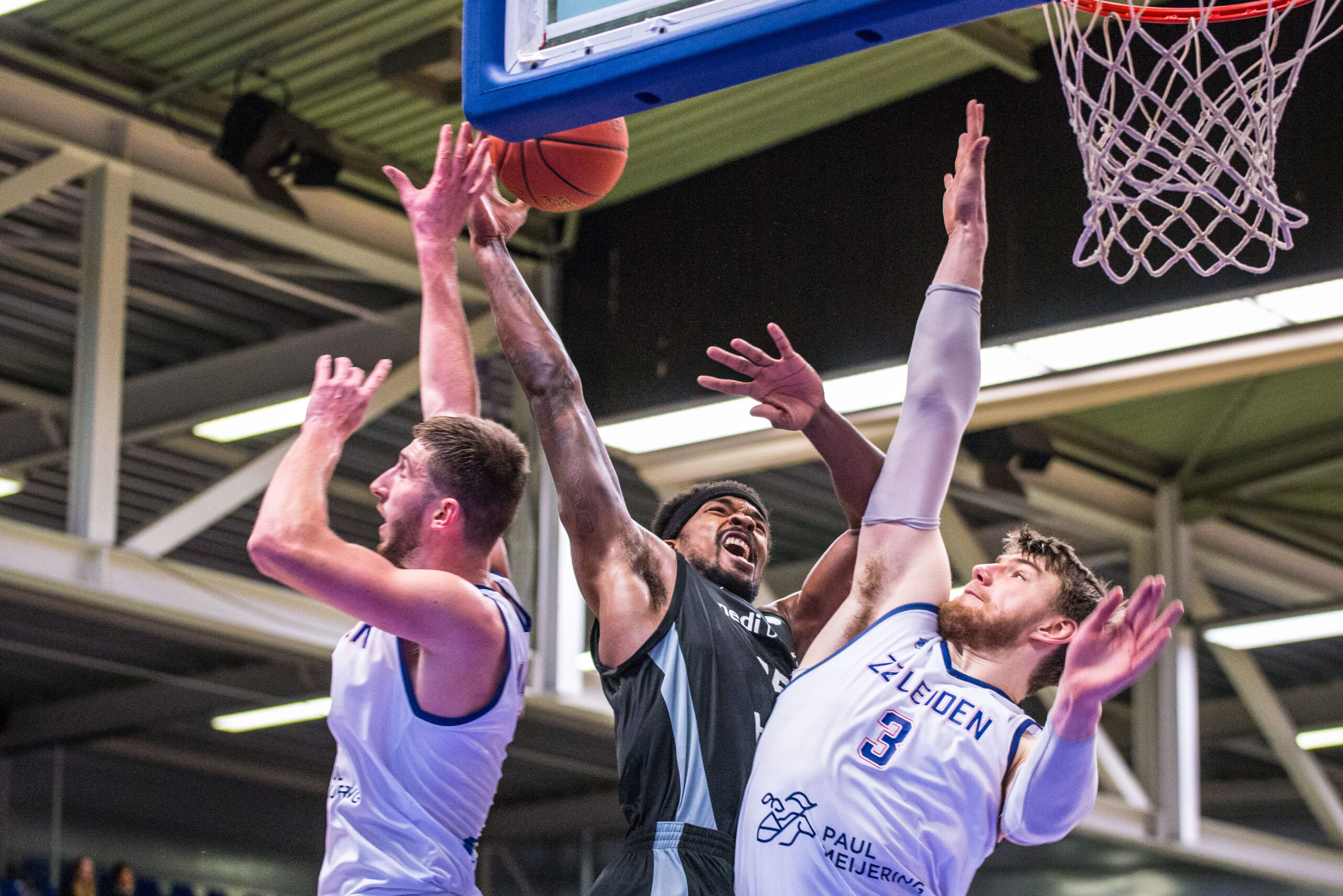 Leiden had steun van 700 supporters, volgens de coronaregels het maximale aantal voor de Vijf Meihal. Binnen vier minuten liep ZZ Leiden uit naar 10-5. De Duitse formatie mag dan nog niks gewonnen hebben, maar die schud je niet zo maar van je af. Jhonathan Dunn kreeg het vervolgens op z’n heupen en pakte in het eerste kwart uit met drie driepunters, waardoor ZZ Leiden wegliep naar een 27-20 stand na tien minuten. Einaras Tubutis moest echter al snel plaatsnemen op de bank met drie persoonlijke fouten.
