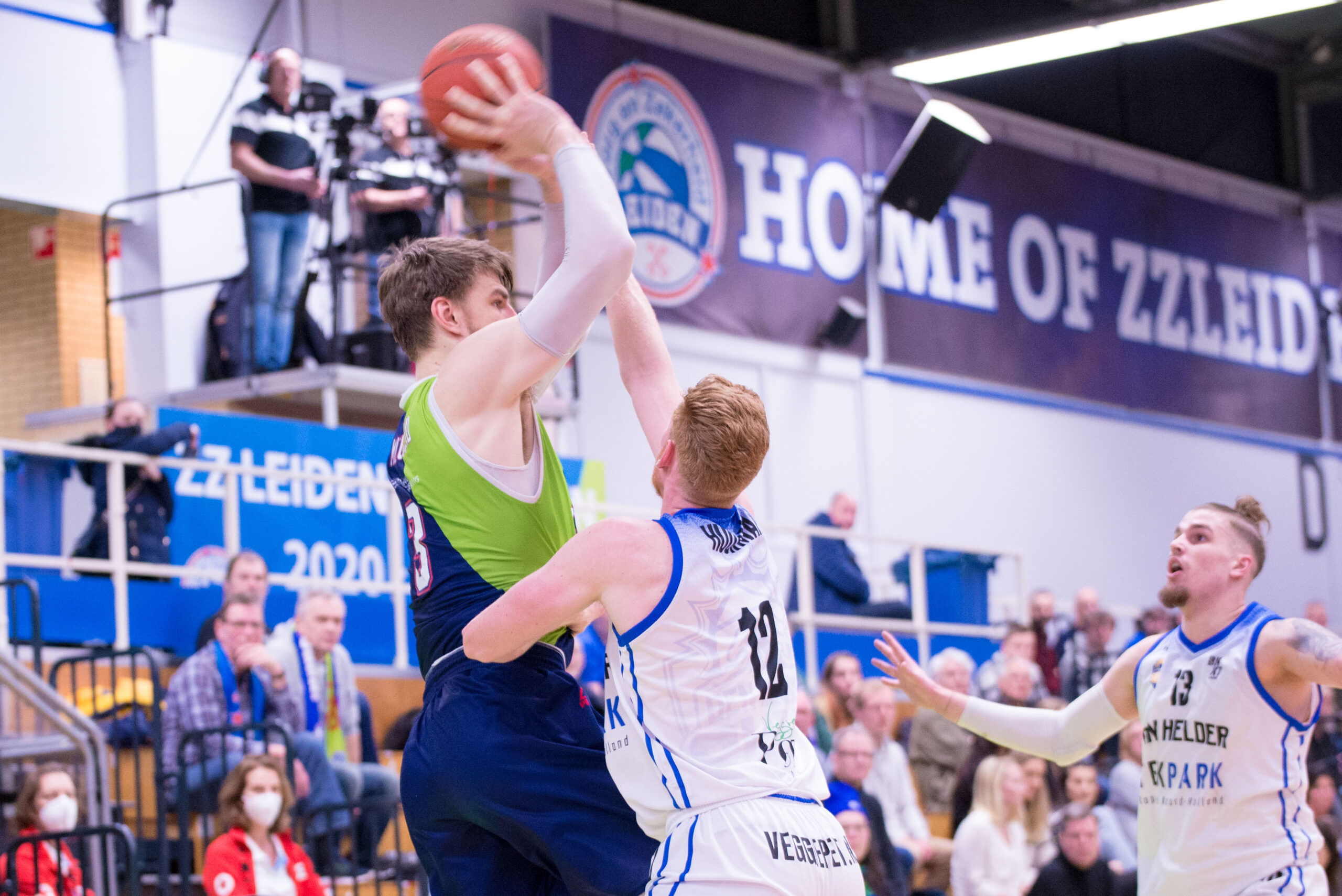 ZZ Leiden begint voortvarend aan de wedstrijd en weet geregeld de aanval van Den Helder te onderscheppen. Niet alle overnames leiden tot scores voor de thuisploeg, maar de mannen van coach Geert Hammink komen geen moment in gevaar. In het derde kwart wordt de voorsprong ruim twintig punten. En dat voordeel wordt niet meer uit handen gegeven. Luuk van Bree maakt 25 punten en de vooraf gehuldigde Worthy de Jong als speler van de maand december trakteerde de trouwe aanhang op een paar mooie acties.