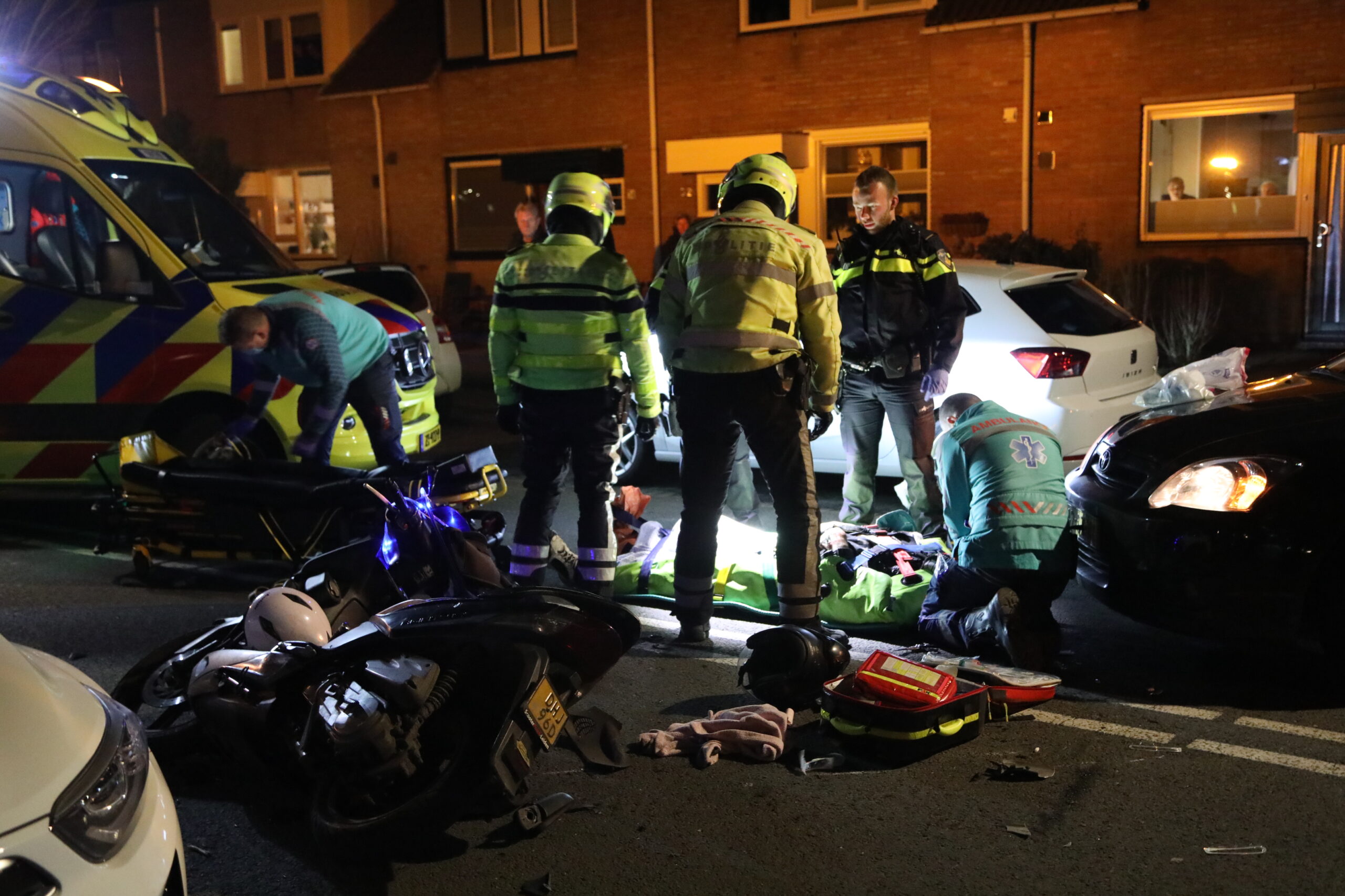 De automobilist was aan het parkeren toen de scooterrijder tegen de zijkant van de auto klapte. De scooterrijder kwam hierdoor hard ten val. Ambulancepersoneel heeft hem in een zogeheten vacuümmatras gefixeerd en met spoed naar het ziekenhuis overgebracht.