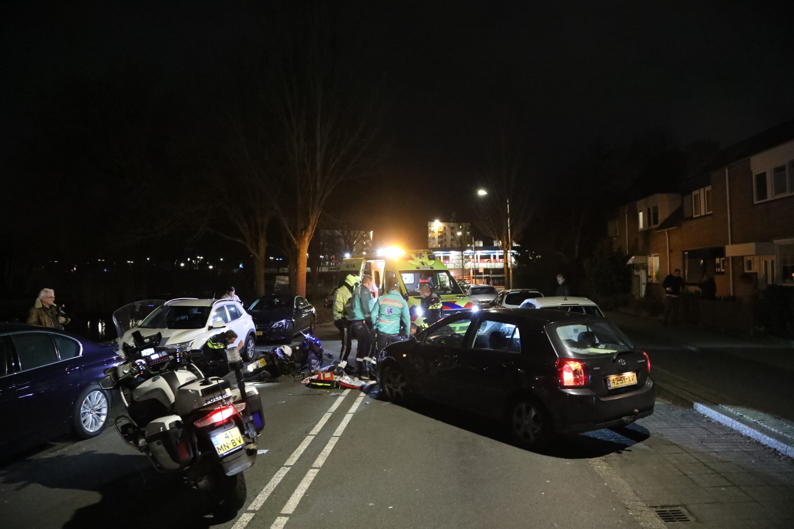 Bij een aanrijding tussen een auto en een scooter is de scooterrijder gewond geraakt en overgebracht naar het ziekenhuis. De botsing vond maandagavond rond 19.00 plaats op de Trompweg in Voorschoten.