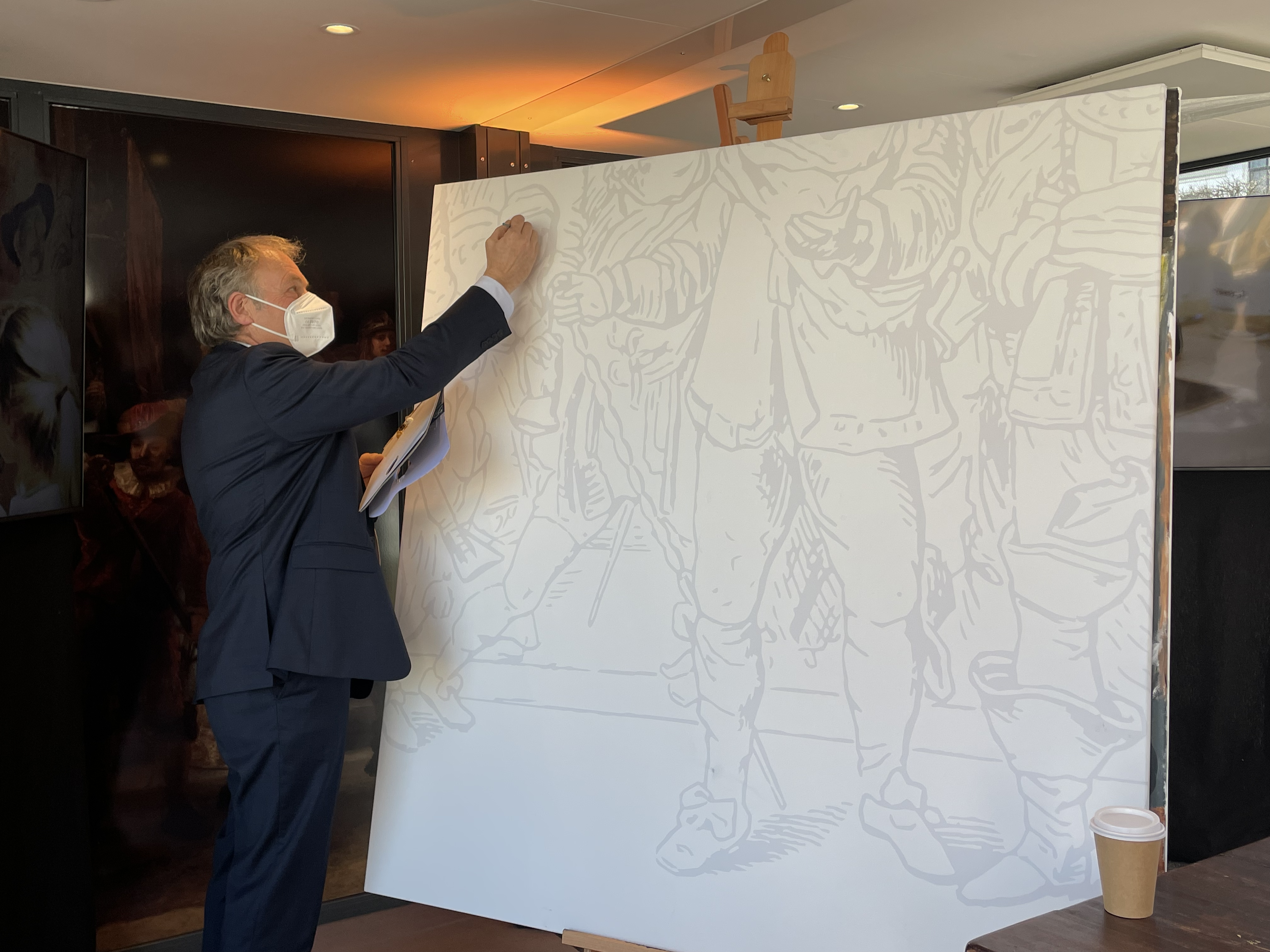 Alle Leidse voorbijgangers krijgen nu de kans om in de schoenen van Rembrandt te treden en mee te schilderen met de reconstructie van zijn grote meesterwerk ‘de Nachtwacht’. “Iedereen is welkom. Het is voor jong en oud, voor schildertalent en amateur”, zegt wetenschapshistoricus Thijs Hagendijk vol enthousiasme.