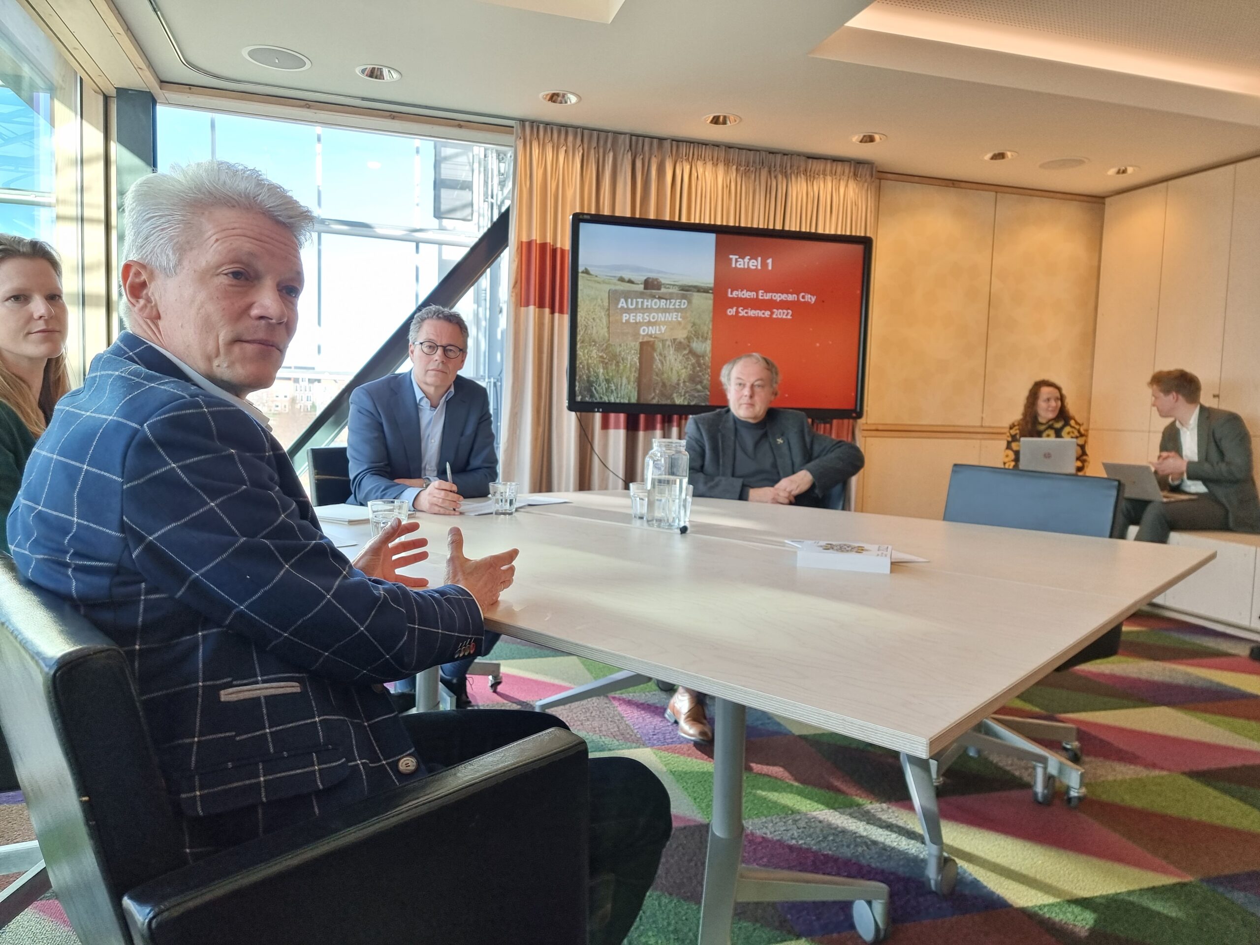 Bij een bijeenkomst in Biopartner 5 op het Leiden Bio Science Park (LBSP) werd vrijdag in een DWDD-setting met tafelgasten gesproken over Leiden European City of Science en de betekenis van het LBSP voor Leiden. De meeting in DWDD-setting was georganiseerd door de farmaceutische bedrijven Janssen, Amgen en MSD. Tafelgasten waren onder andere burgemeester Lenferink (zeg maar Henri), en LBSP-voorzitter Bart van Zijll Langhout.