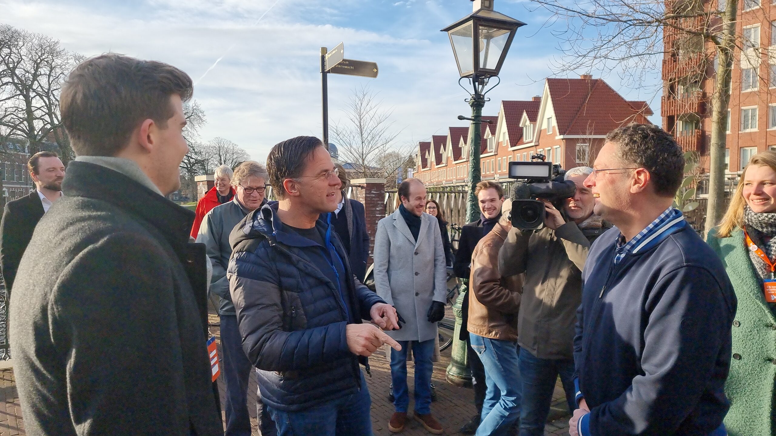 Chris de Waard sprak met de Leidse ne de landelijke VVD-leiders tijdens het werkbezoek van Mark Rutte aan de lokale afdeling.