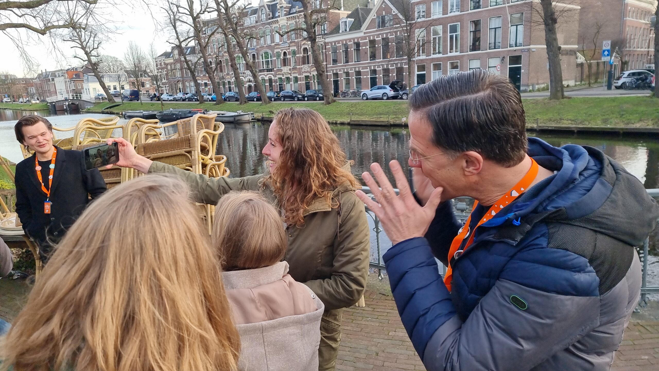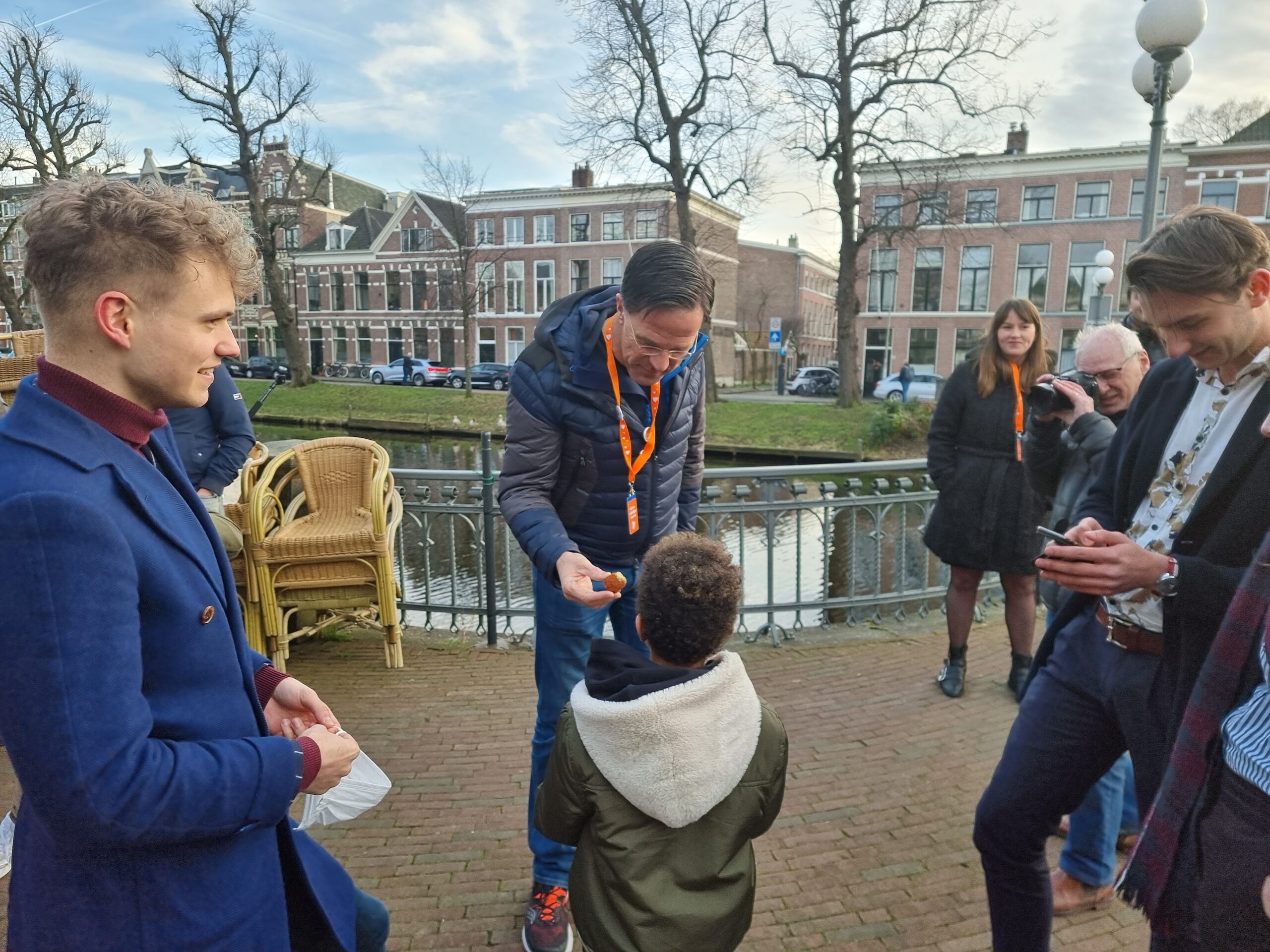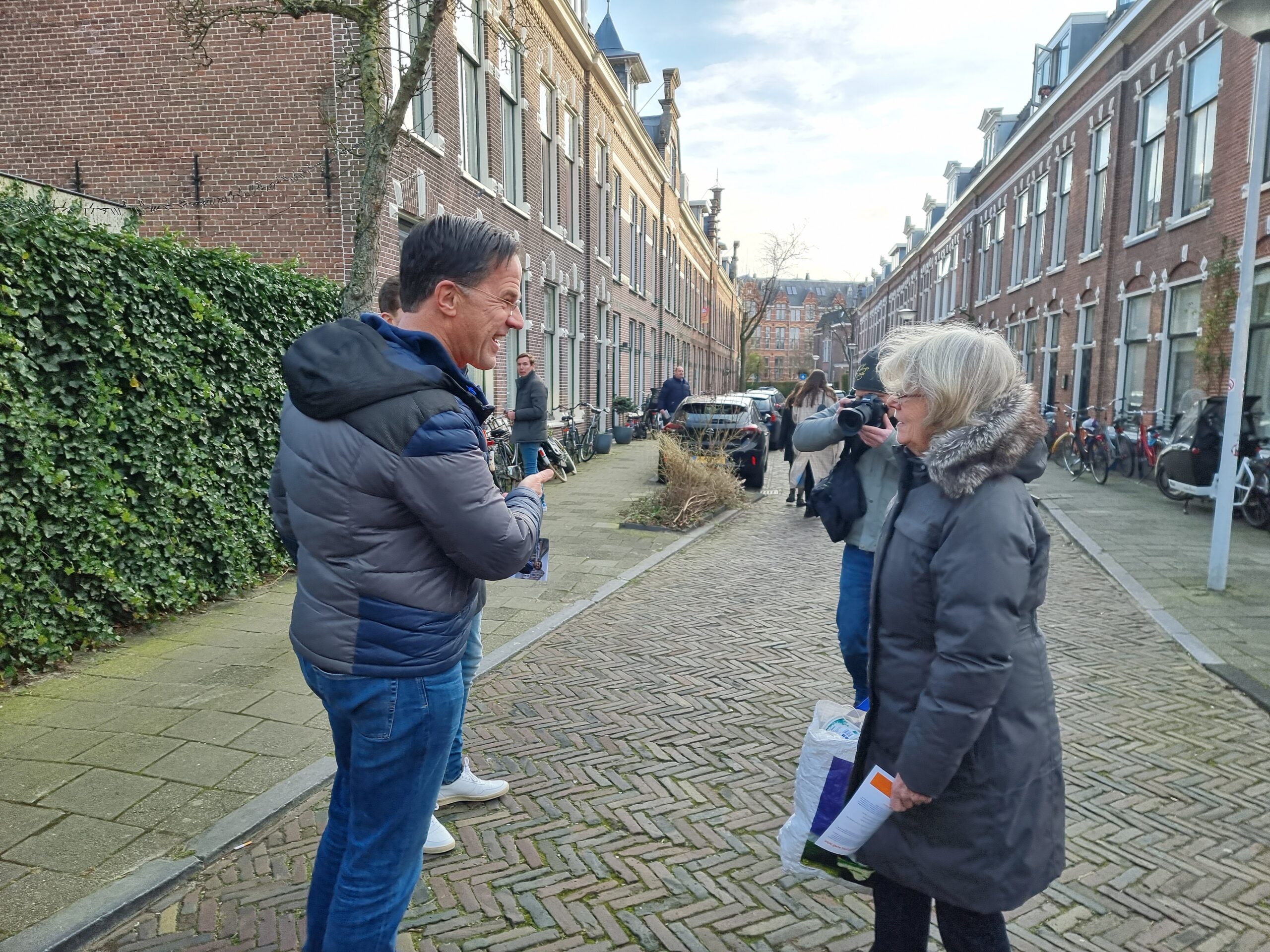 Rutte heeft hier vanuit zijn studententijd heel wat voetstappen liggen en komt nog steeds vaak in Leiden. “Maar als ik dan bij vrienden kom, valt het me wel op dat de stad er minder opgeruimd bijligt. Dus toen ik ‘schoon, heel en veilig’ in het programma van onze Leidse afdeling las, werd ik daar wel enthousiast van.”