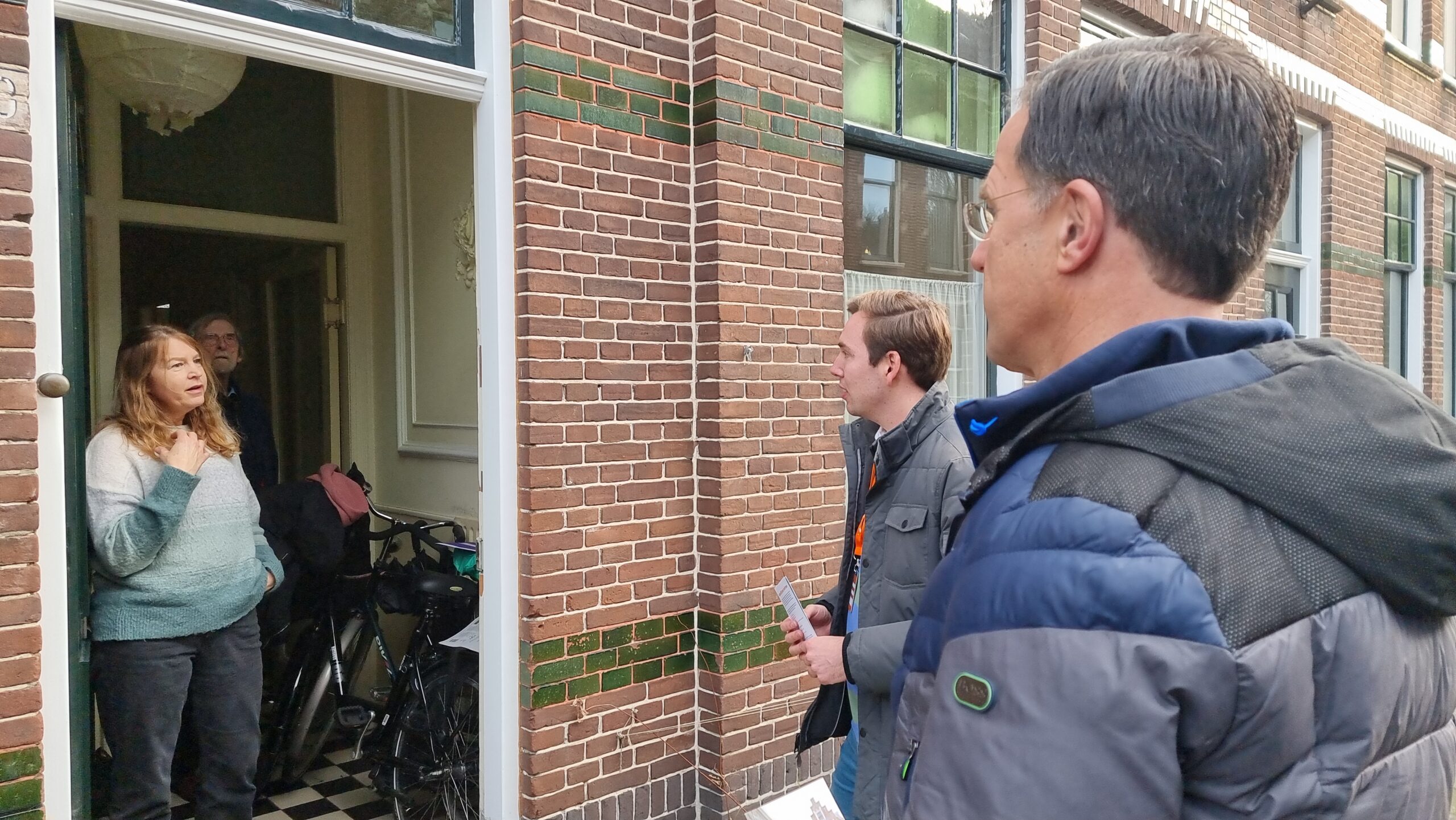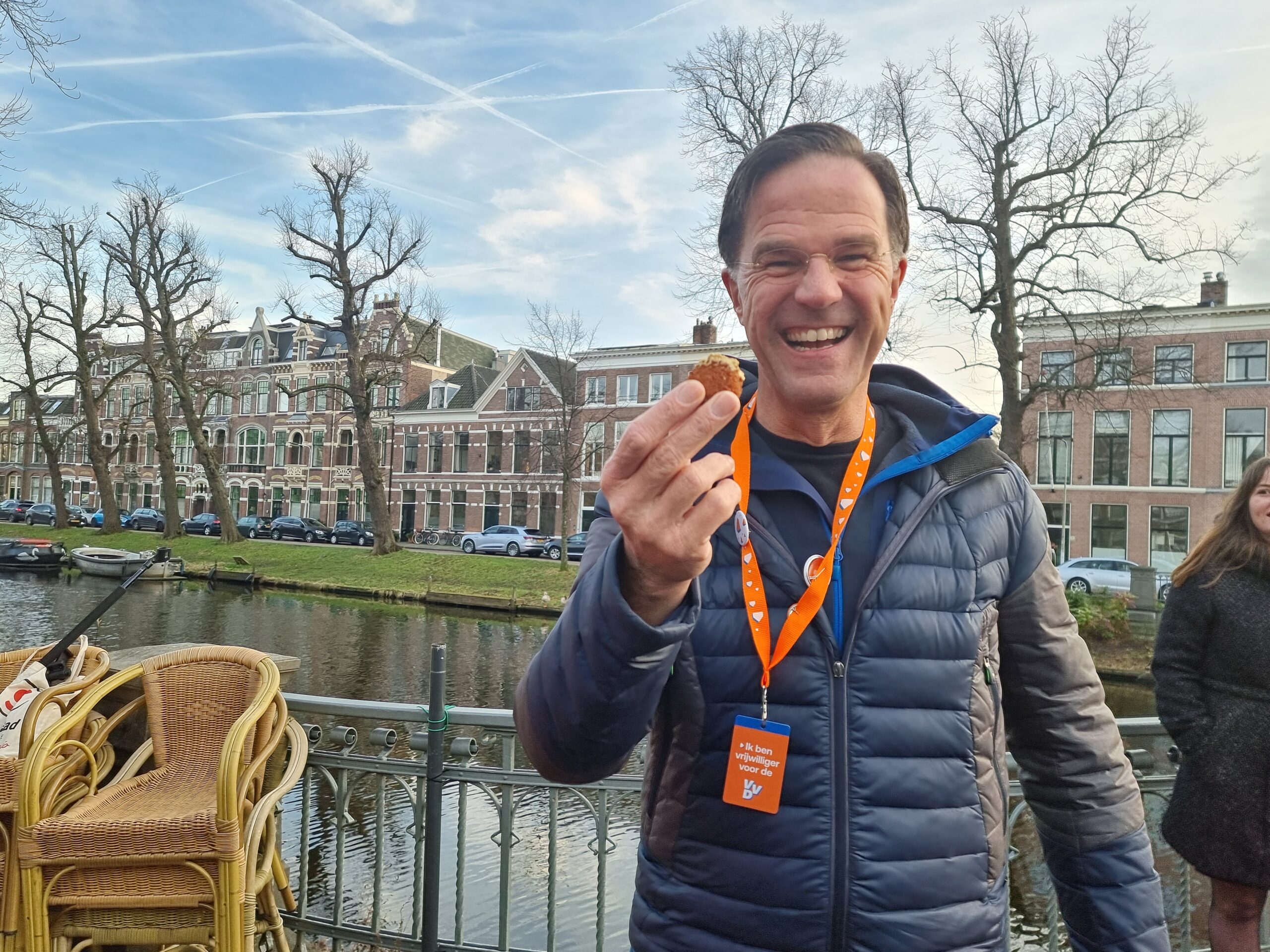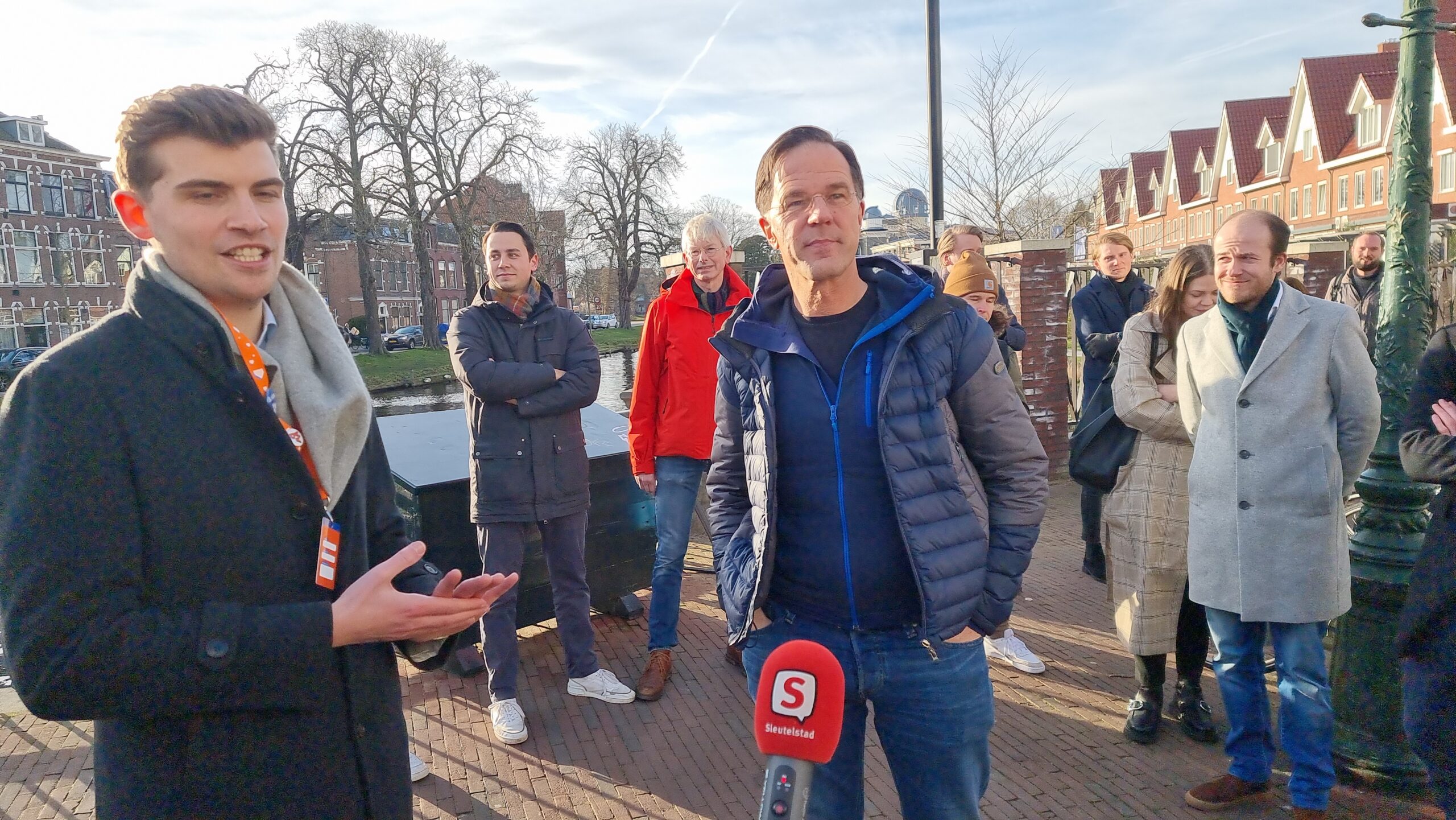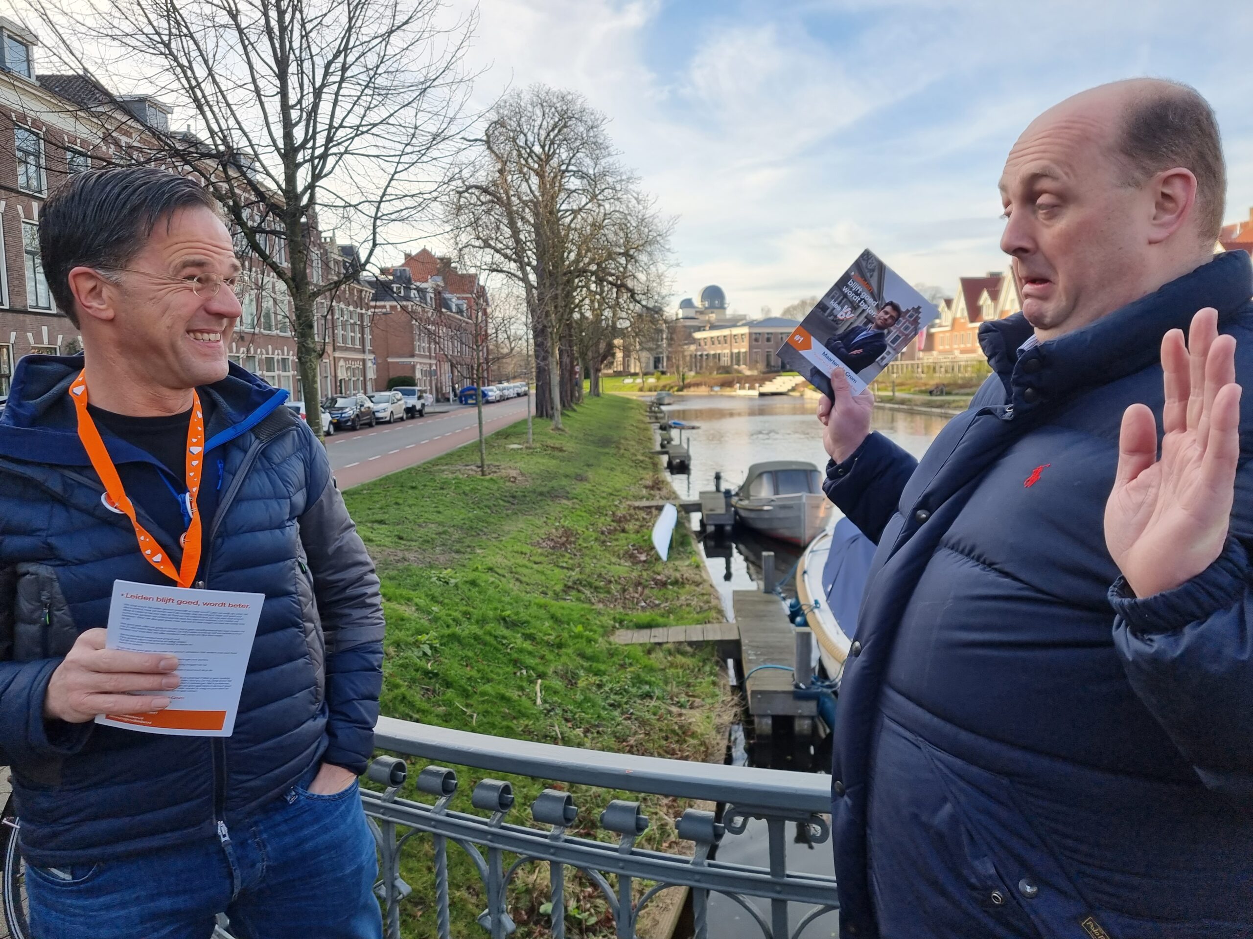 Rutte heeft hier vanuit zijn studententijd heel wat voetstappen liggen en komt nog steeds vaak in Leiden. “Maar als ik dan bij vrienden kom, valt het me wel op dat de stad er minder opgeruimd bijligt. Dus toen ik ‘schoon, heel en veilig’ in het programma van onze Leidse afdeling las, werd ik daar wel enthousiast van.”