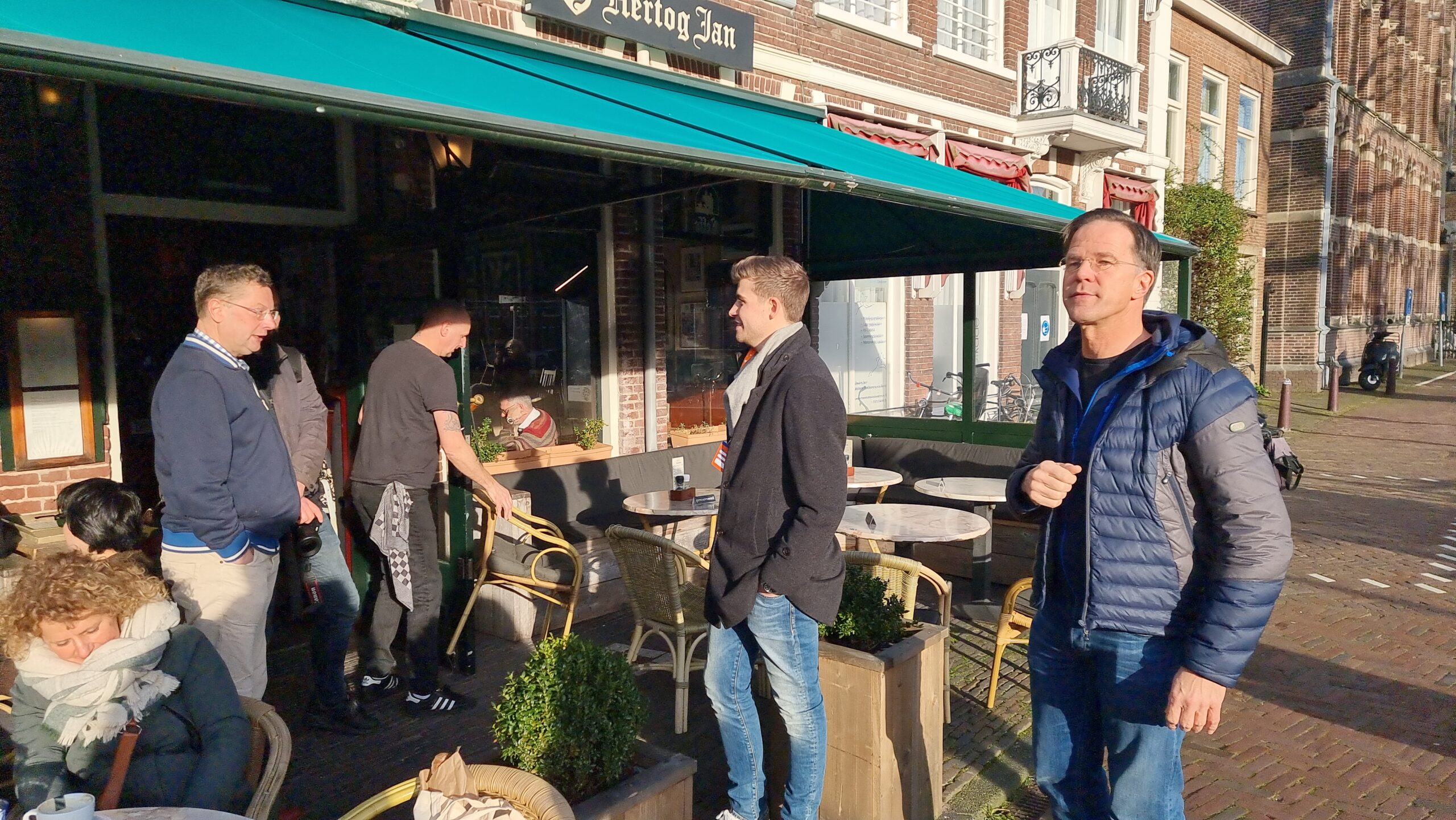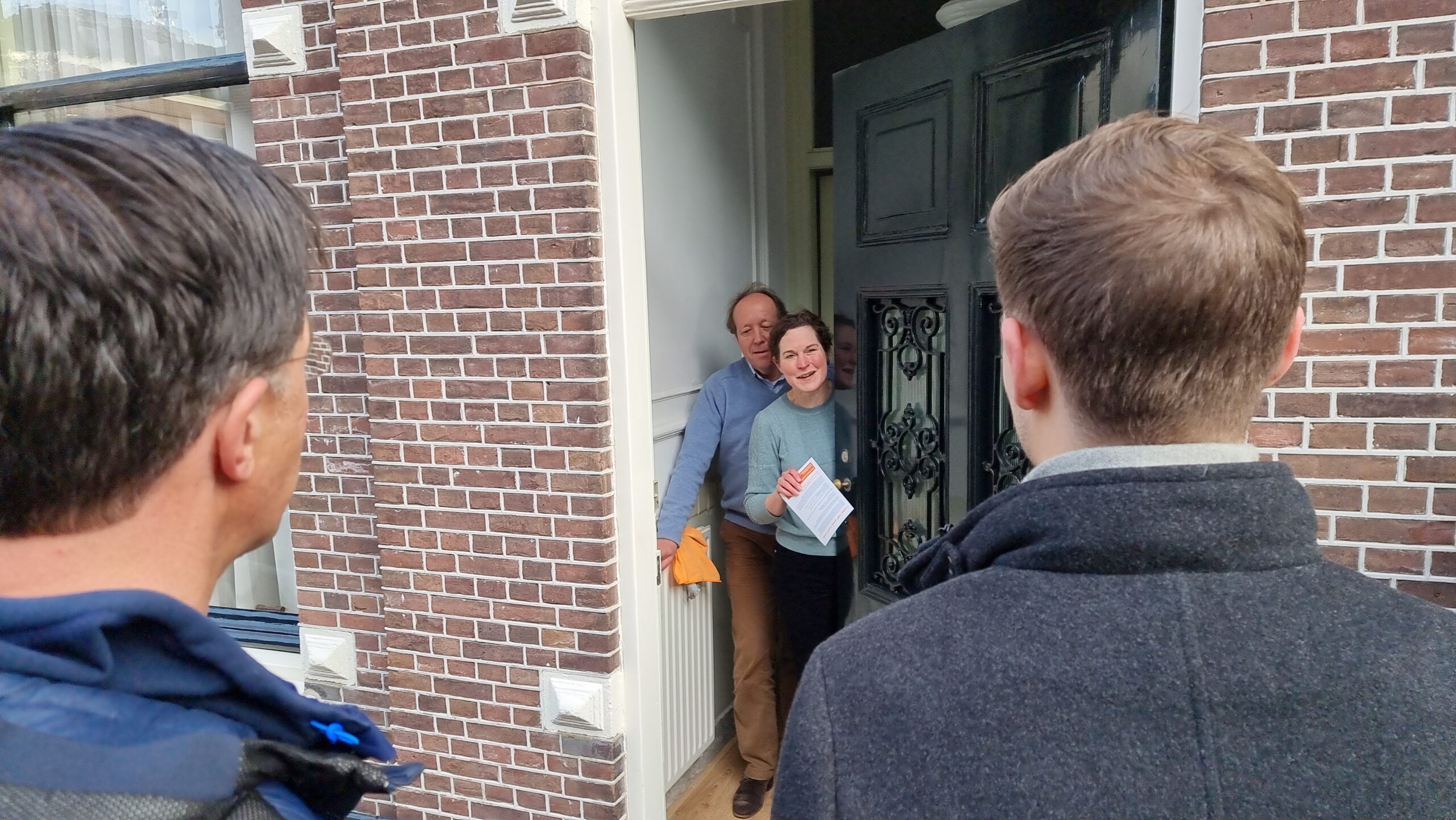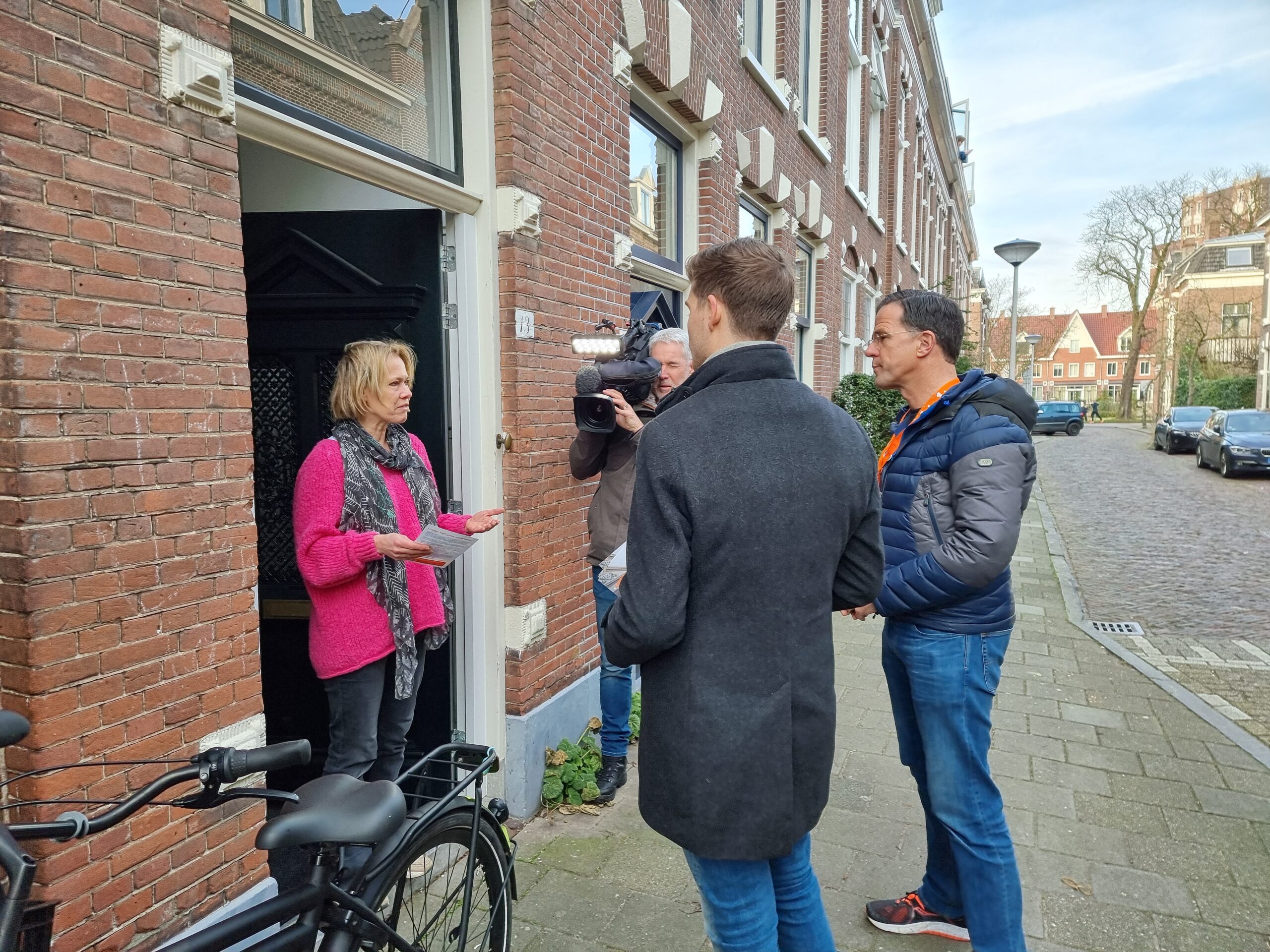 Voordat het gezelschap de Hugo de Grootstraat introk om daar huis aan huis het liberale evangelie te verkondigen, gingen De Crom en Rutte voor het terras van Babbels op de Kaiserstraat in op de stand van de stad. “Leiden heeft een klassiek links college, dus het is wel belangrijk dat de VVD er is om ervoor te zorgen dat je bijvoorbeeld nog een beetje met de auto bij de ondernemers kunt komen”, vond Rutte.