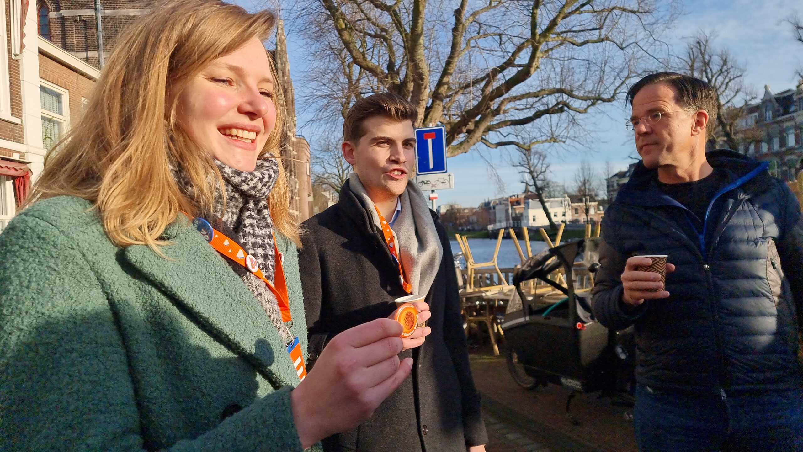 “We doen dit eigenlijk elke week, dus het is niet echt een campagnestart”, zegt Maarten de Crom. De lijsttrekker van de VVD Leiden is deze zaterdagmiddag op pad met VVD-leider Mark Rutte. “Dit is mijn eerste campagneactiviteit. Hartstikke leuk dat dat in Leiden is, want dat is toch een beetje mijn stadje.”