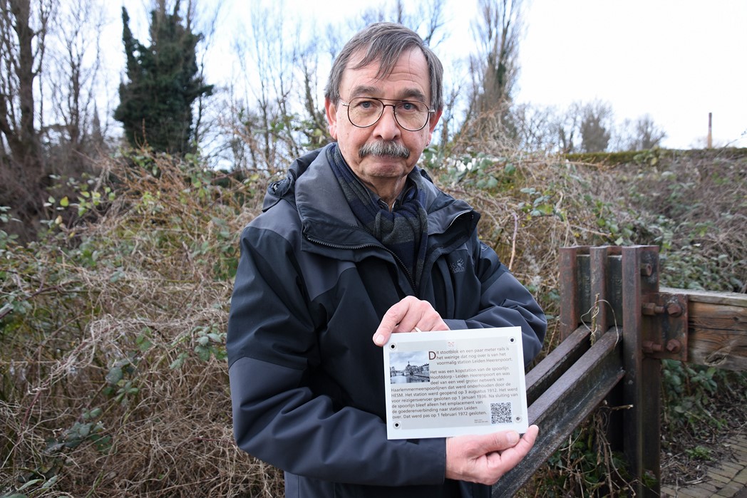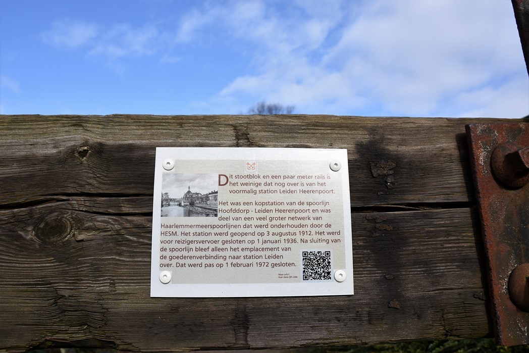 Tijdens een Singelparkwandeling kreeg Leidenaar Ger Koper de vraag wat dat stukje rails en stootblok ter hoogte van de Zijlpoort betekende. Nergens was een bordje met uitleg te vinden en dus ging hij thuis op zoek. Hij nam contact op met de gemeente, Historische Vereniging Oud Leiden en het bestuur van het Singelpark. Niemand wist eigenlijk waarom er geen bordje bij hing en het stond ook niet bovenaan de prioriteitenlijstjes.