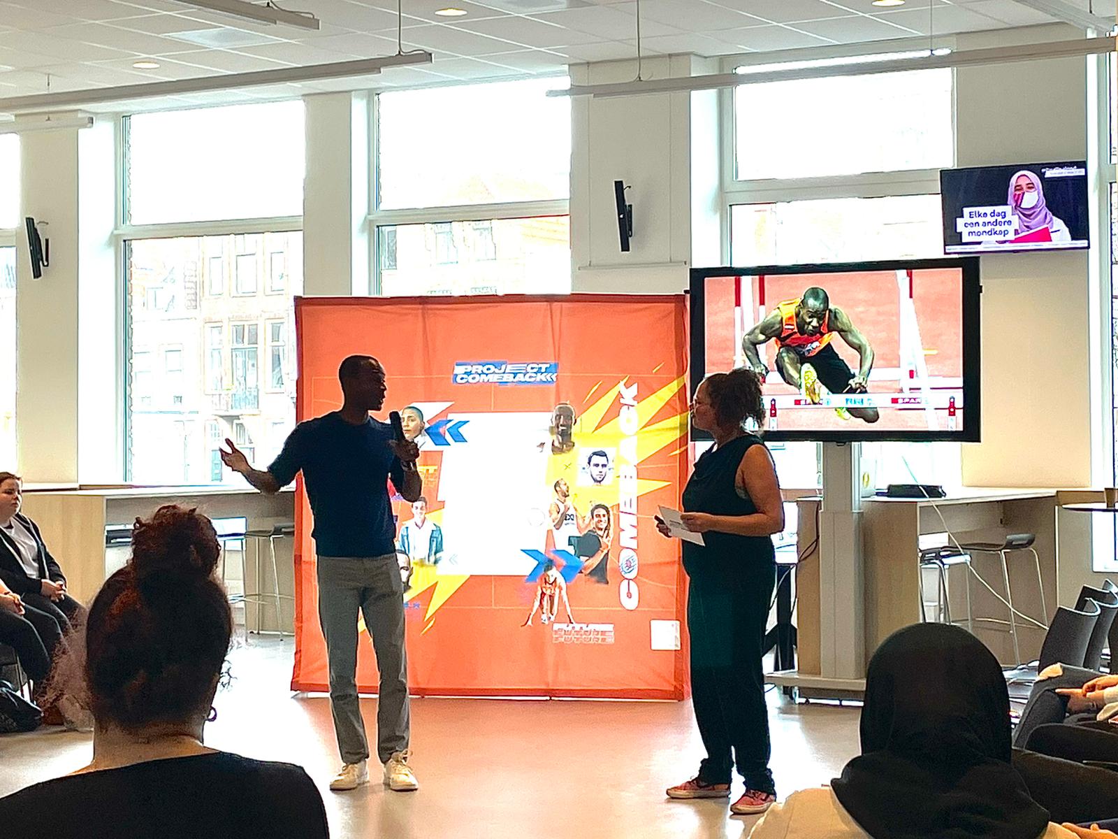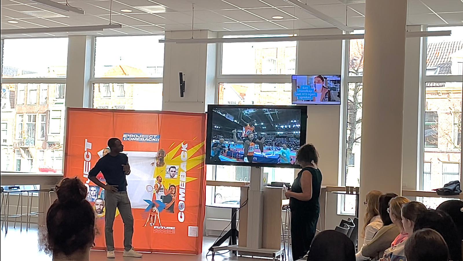 Topsporters Gregory Sedoc en Worthy de Jong deelden dinsdag hun verhaal met jongeren van het MBO Rijnland en het SWV De Delta. Ze wilden hen inspireren en sterker uit de coronacrisis laten komen. Het is onderdeel van Project Comeback. “Do you have that dog in you?”, vraagt Sedoc aan de jongeren.