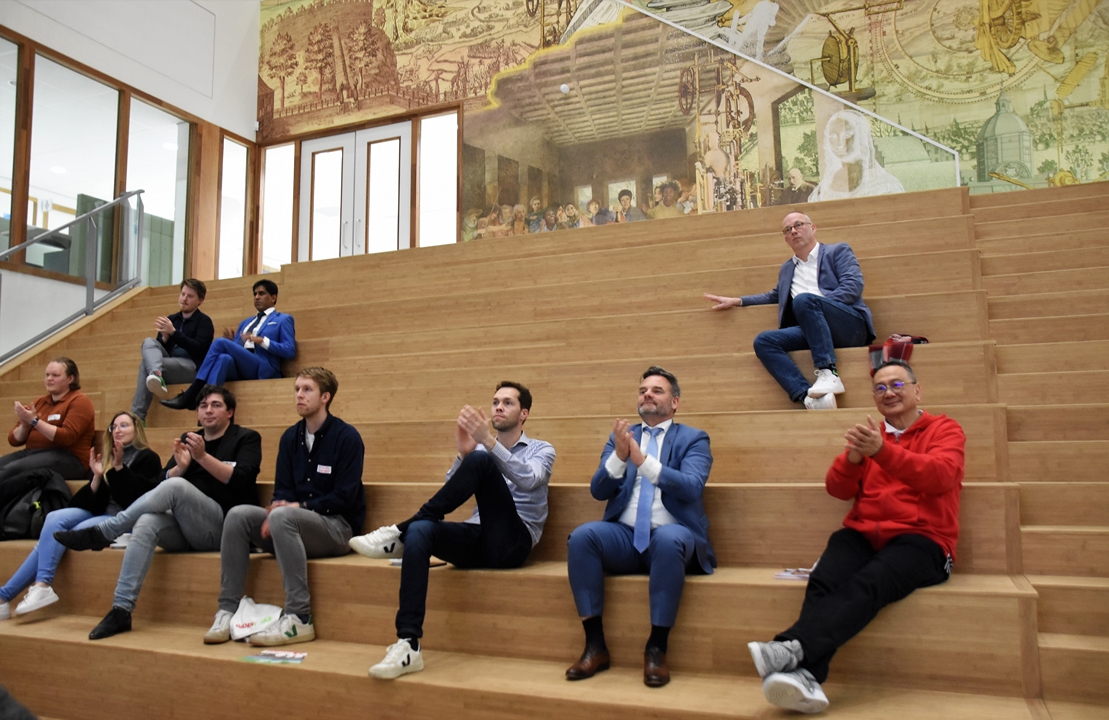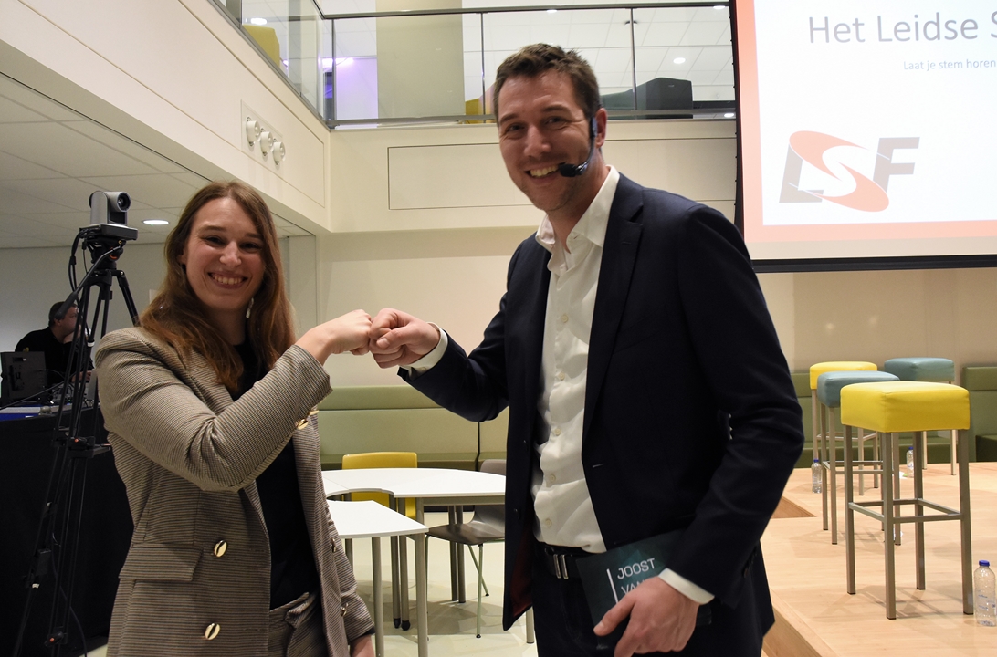 Organisatoren Paul Goulmy (LSF) en Martijn Peetsold (Topsport Leiden) vatten de avond na afloop samen.