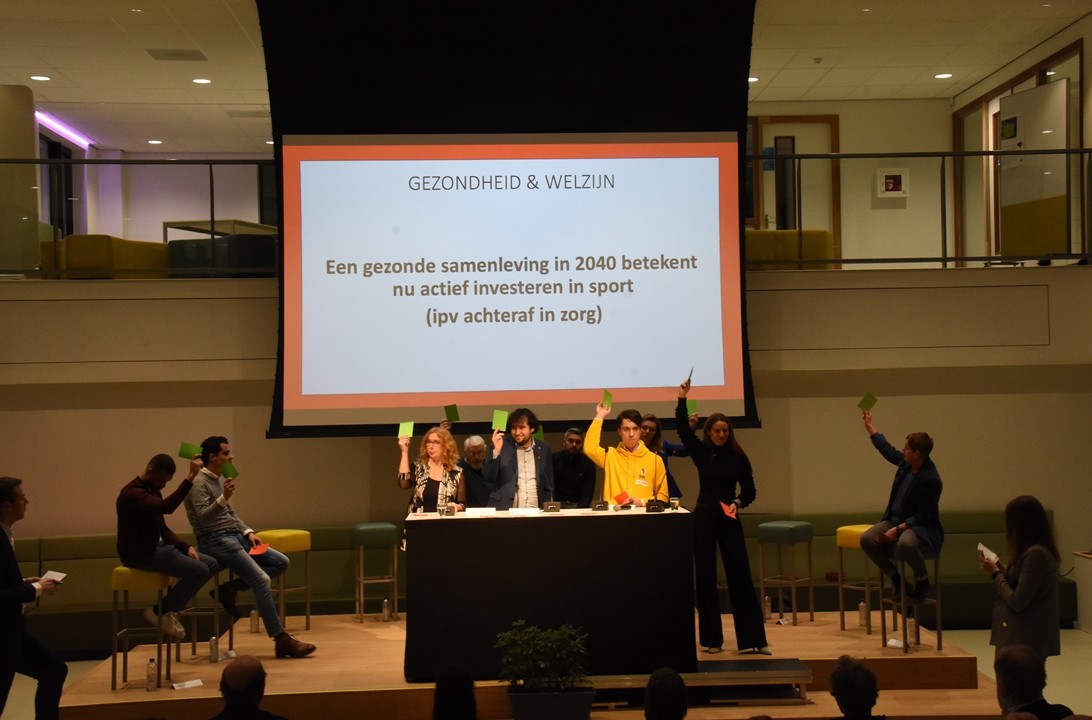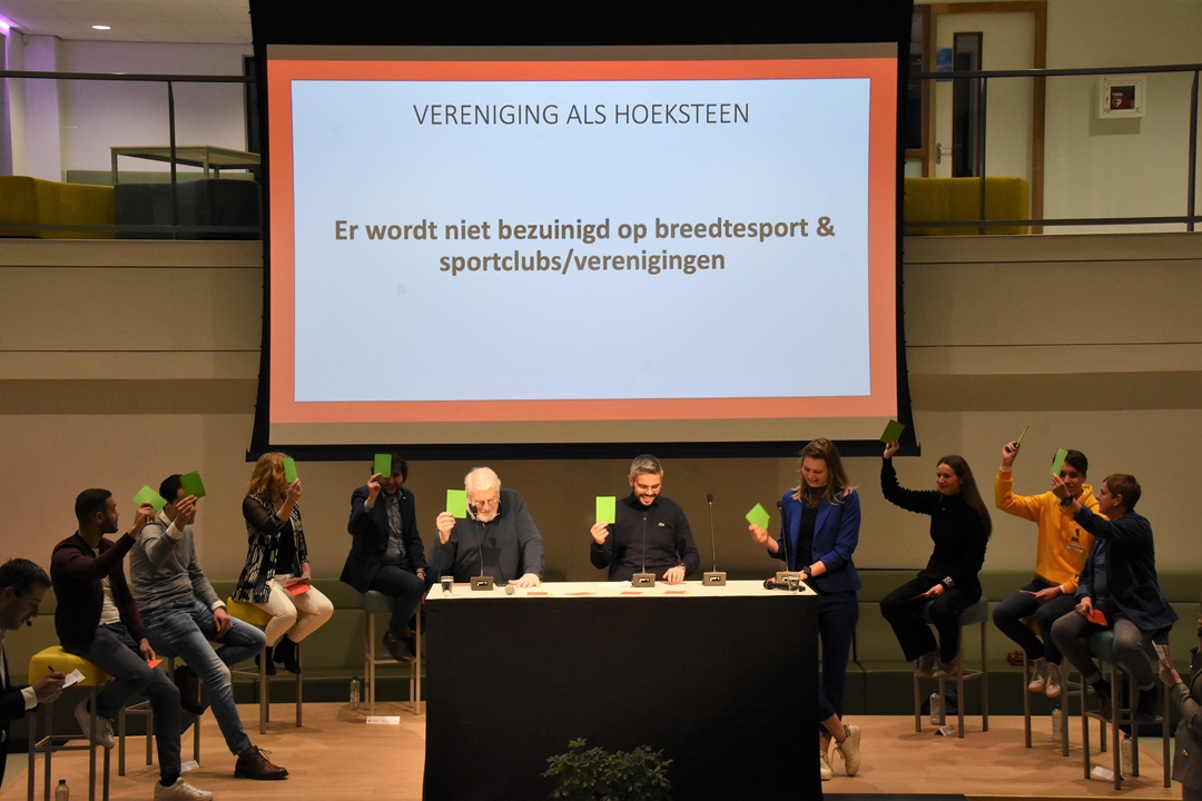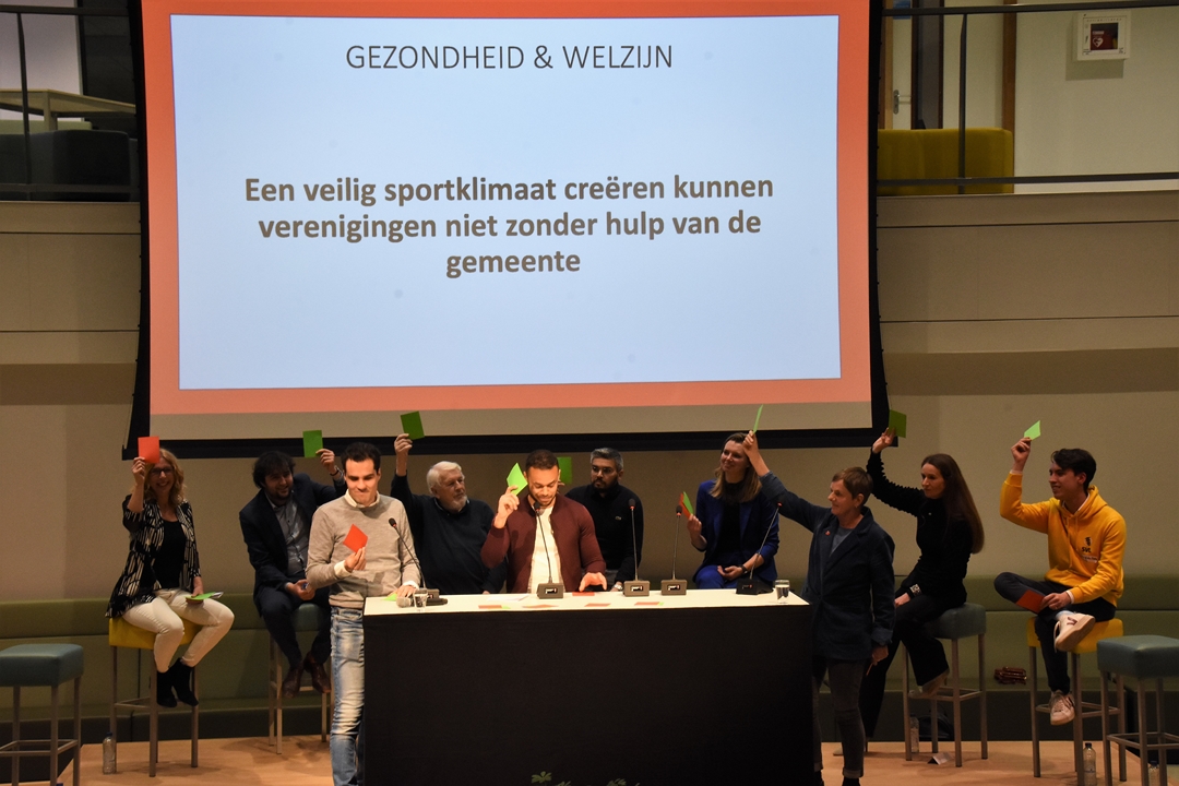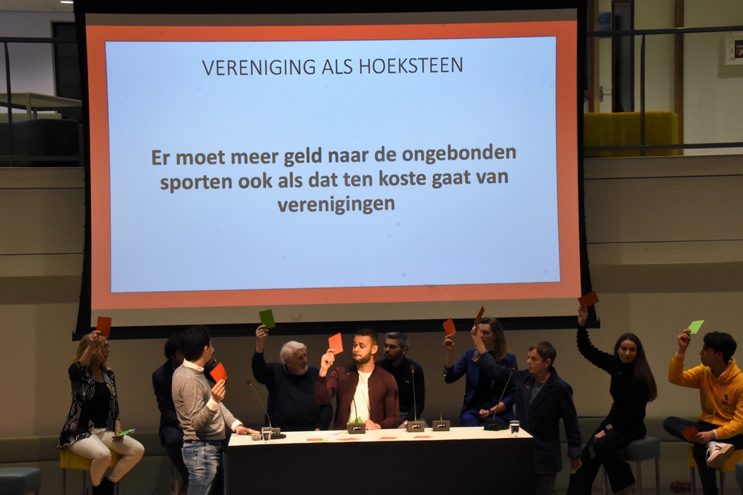 Het eerste grote openbare verkiezingsdebat werd woensdagavond gehouden bij het Leonardo College en stond in het teken van sport. Aan de hand van een serie stellingen konden de tien deelnemende partijen in discussie met elkaar en met de zaal. De nieuwe partij ‘Klimaat Actie Nu’ en de Partij voor de Dieren deden niet mee.