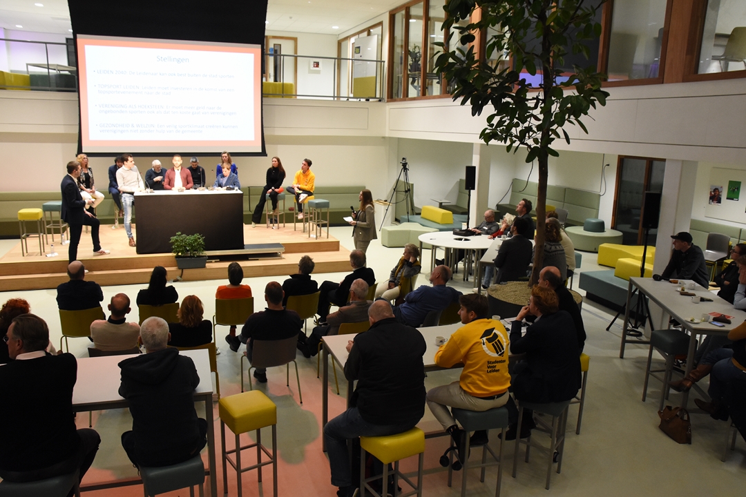In een kleine twee uur wisselen de sportwoordvoerders van de politieke partijen van gedachten over onderwerpen die op het gebied van de sport in Leiden spelen. Daarbij wreekte zich het gebrek aan echt grote onderwerpen, waardoor het niet echt kwam tot grote tegenstellingen. Vaak waren de partijen het op hoofdlijnen met elkaar eens.