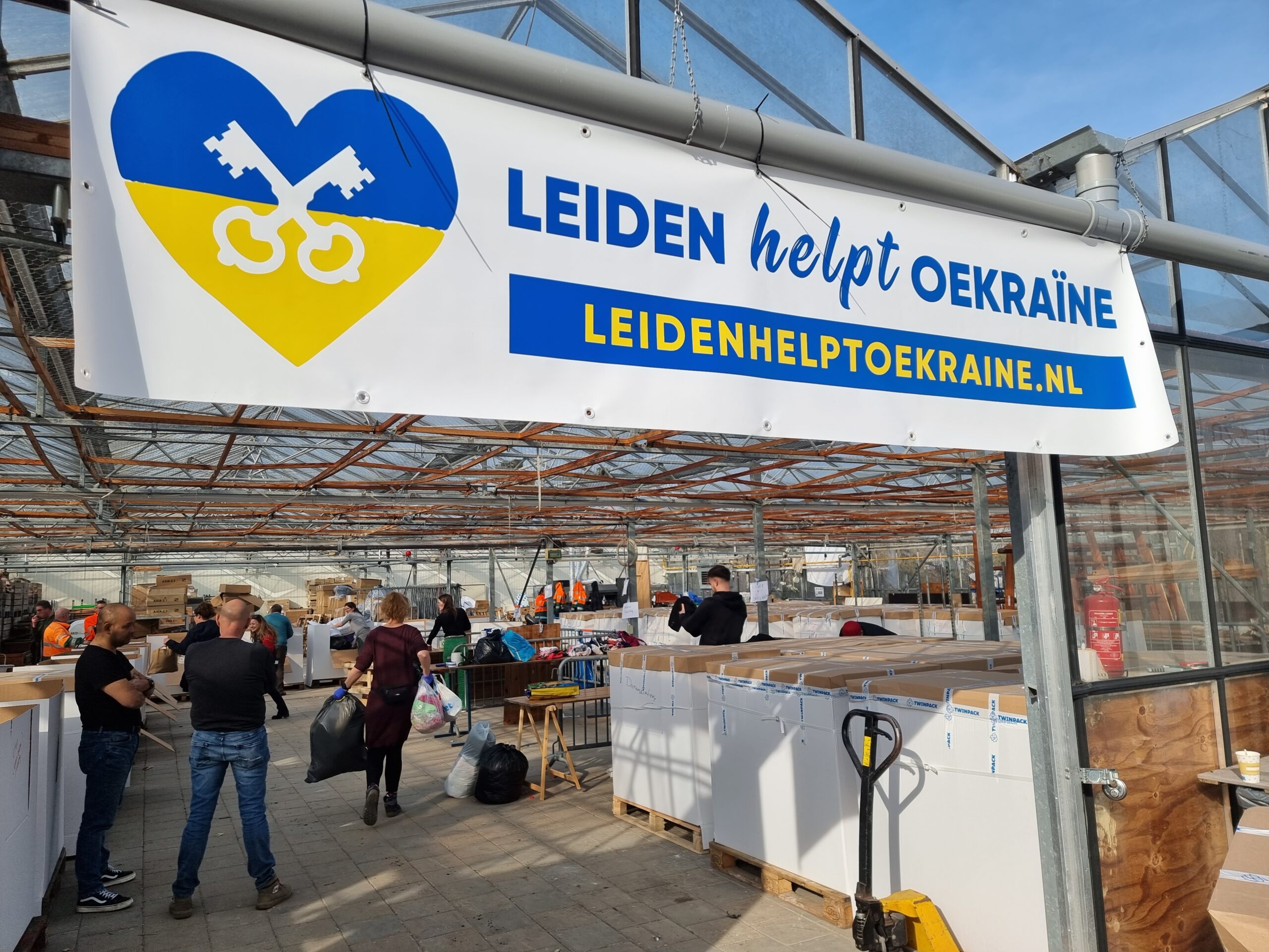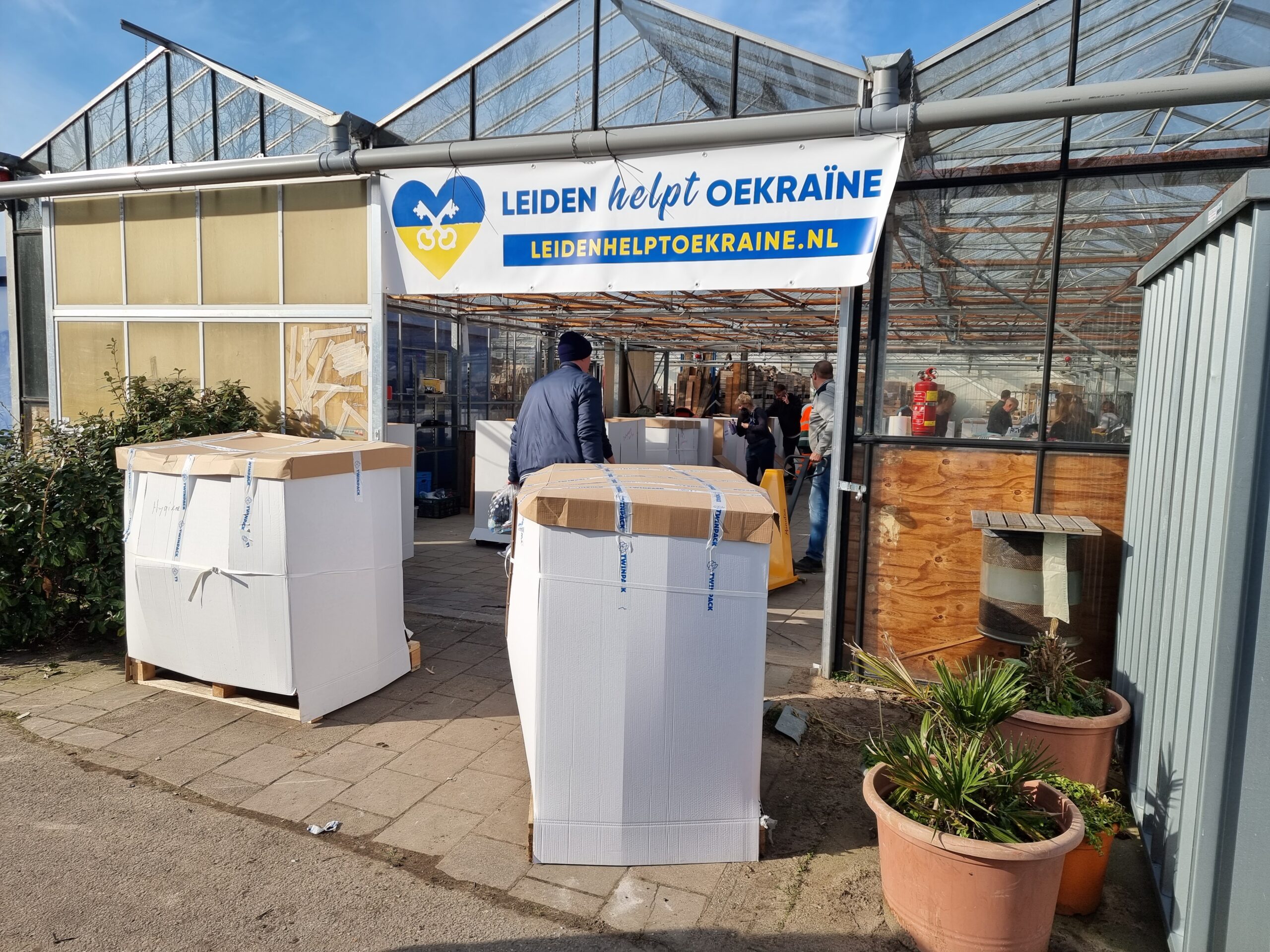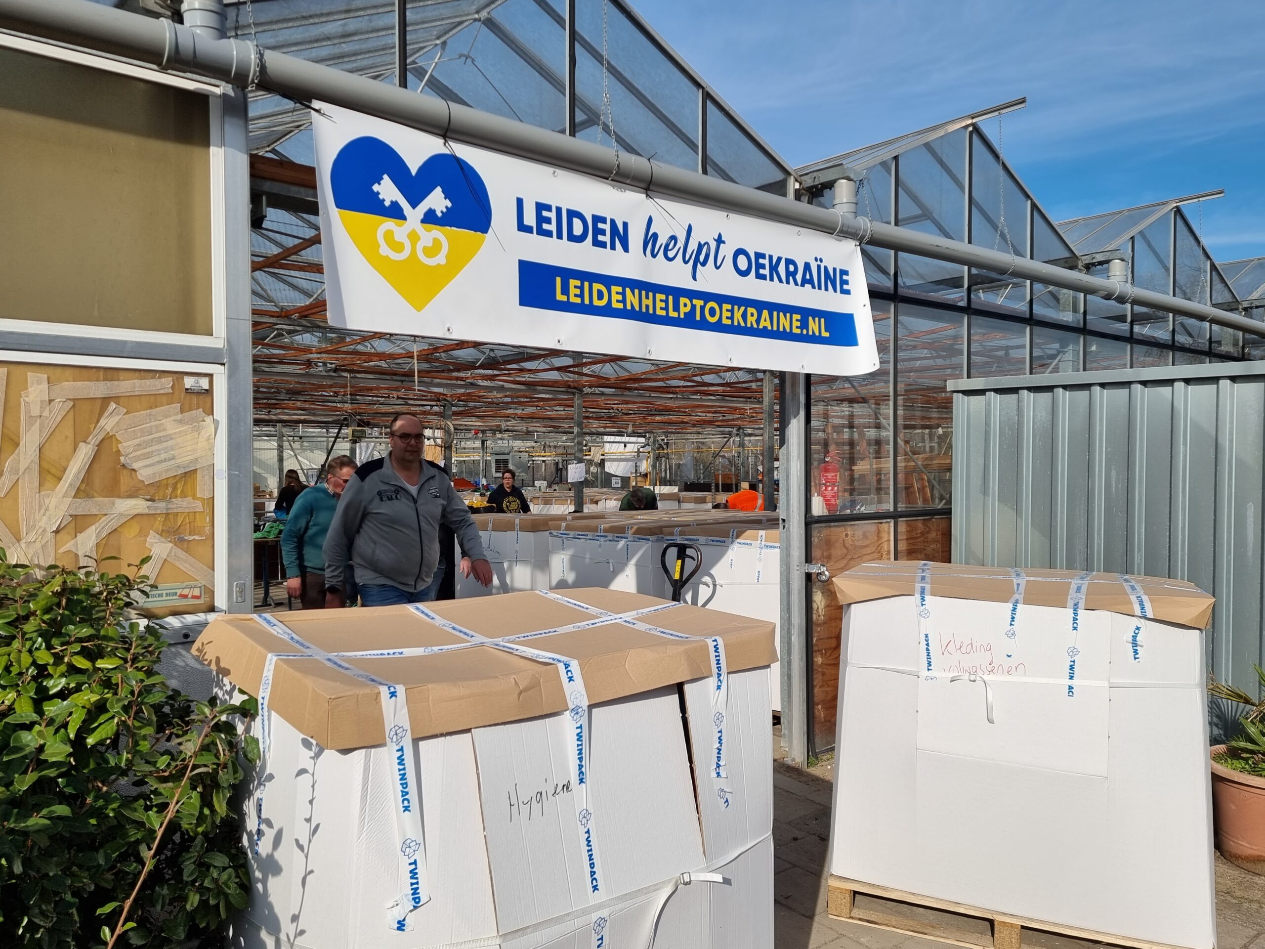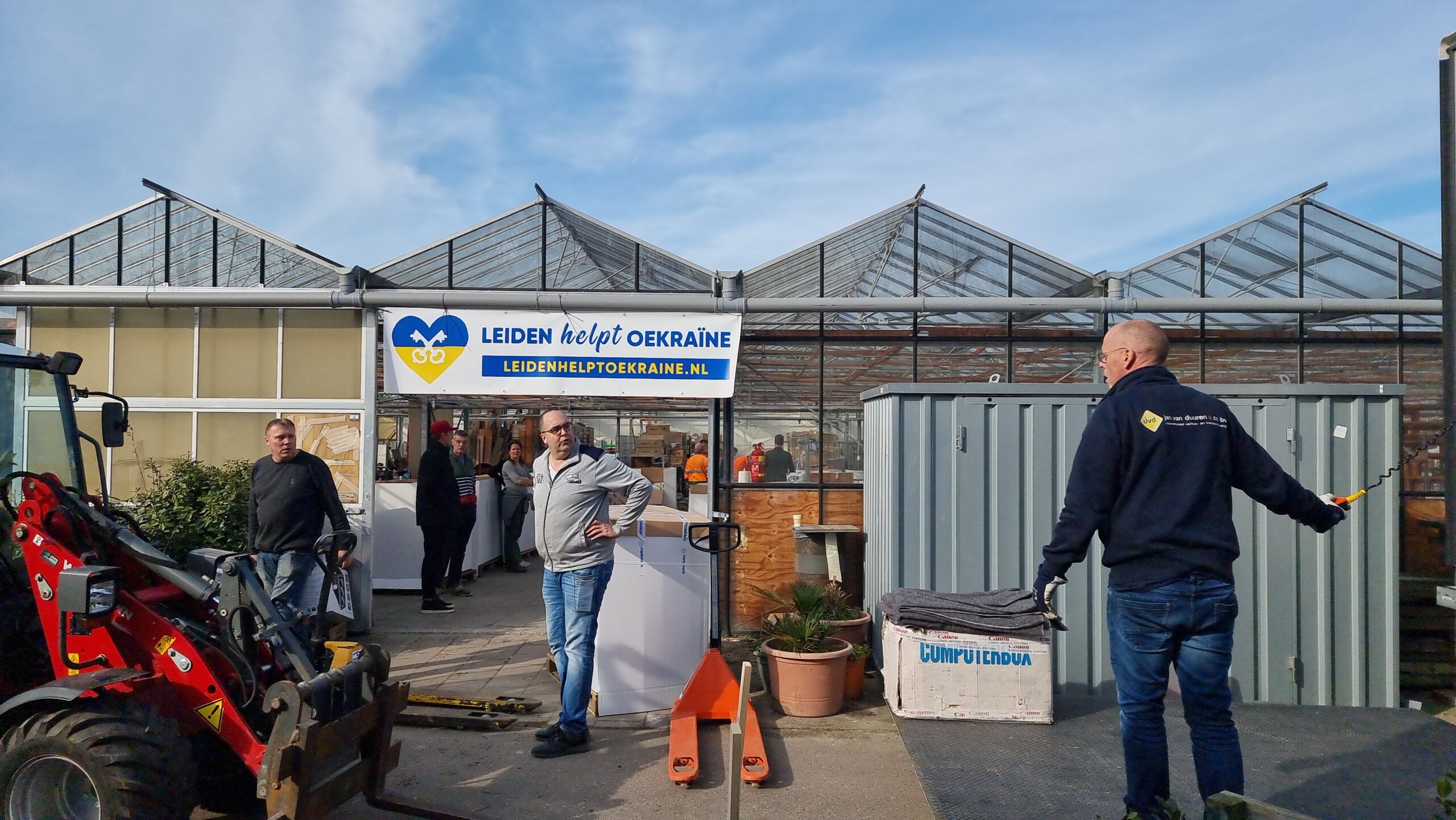 De kwekerij van DZB aan de Wassenaarseweg is het afgelopen etmaal veranderd in een hub waar busjes en vrachtwagens af en aan rijden met hulpgoederen voor Oekraïne. Leiden geeft massaal voor de bewoners van het door oorlog verscheurde land.