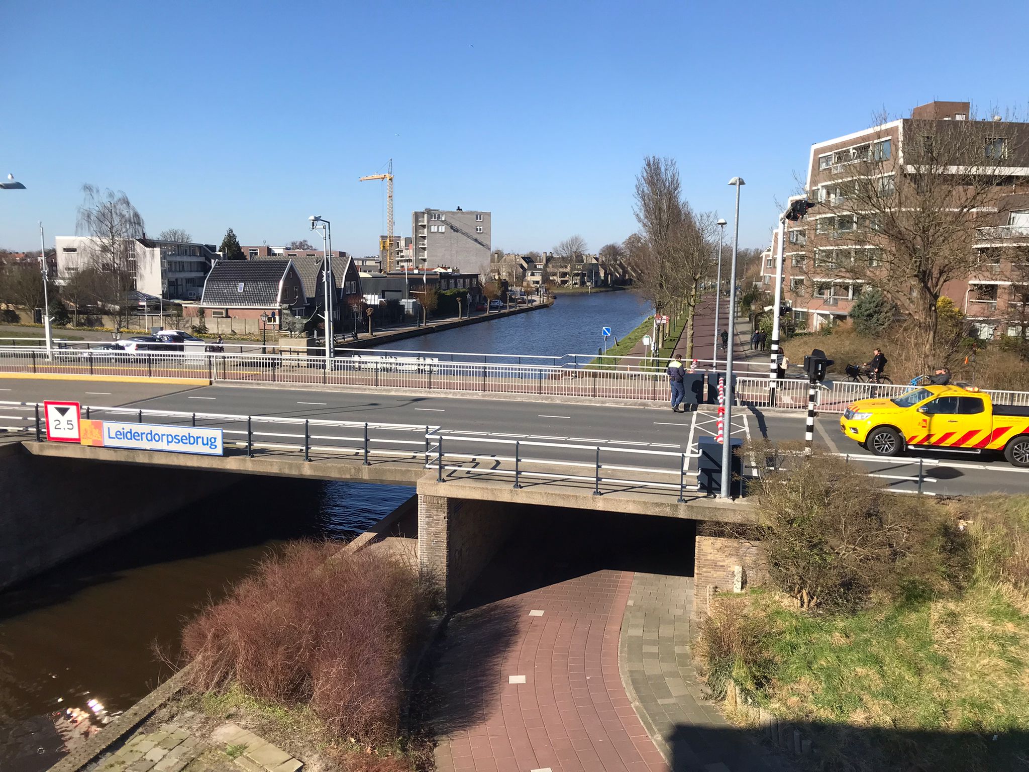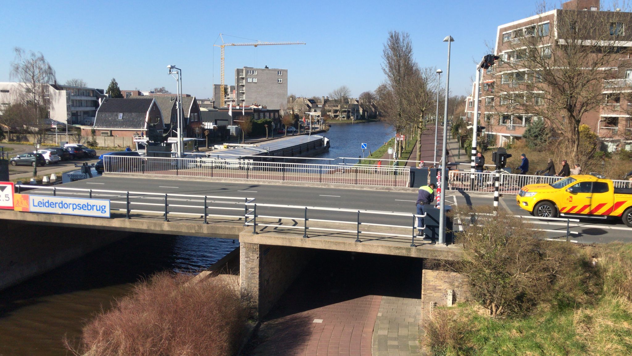 Door een storing sluit de Leiderdorpse brug niet meer. Het defect trad rond 14.00 uur op, waardoor de slagbomen gesloten blijven.