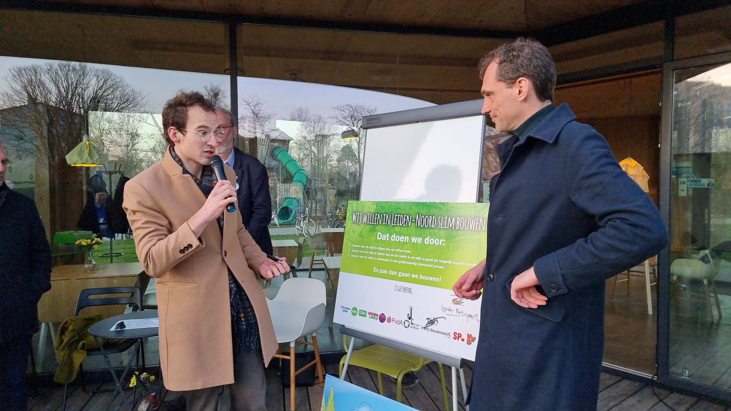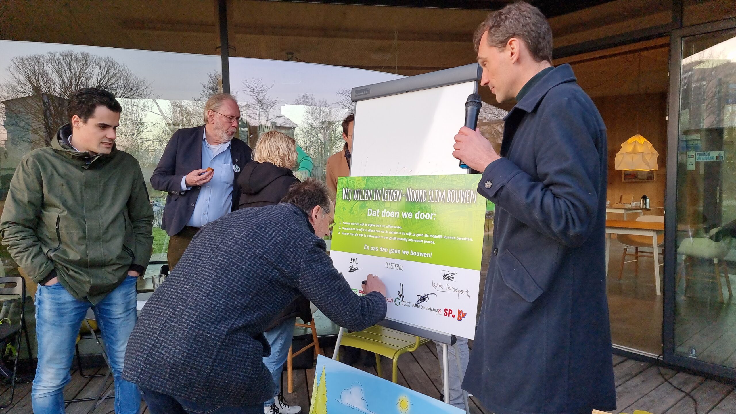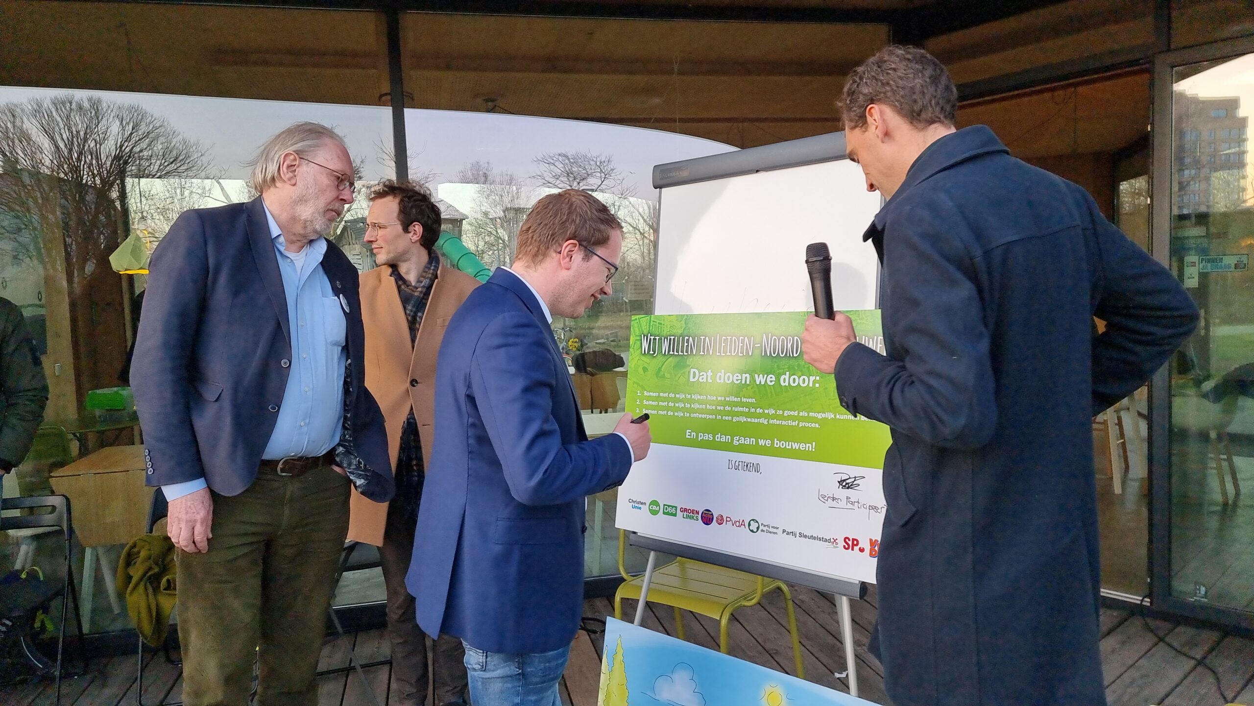 Na het debat werd aan de politieke partijen gevraagd of zij hun handtekening wilden zetten onder een gezamenlijke verklaring. Daarmee beloven ze om de uitgangspunten voor de toekomst van Leiden-Noord samen met de bewoners, het maatschappelijk middenveld en in de wijk gevestigde ondernemers te zullen formuleren en ook om de invulling van de wijk gezamenlijk ter hand te nemen. Bij voorkeur via een ontwerpwedstrijd zoals eerder in Leiden ook bij het Singelpark is georganiseerd. Het CDA en de huidige coalitiepartijen D66, GroenLinks en PvdA tekenden de verklaring niet. Die willen het na de verkiezingen eerst met hun nieuwe fracties bespreken. Op de afwezige VVD na, tekenden de andere partijen de verklaring wel.