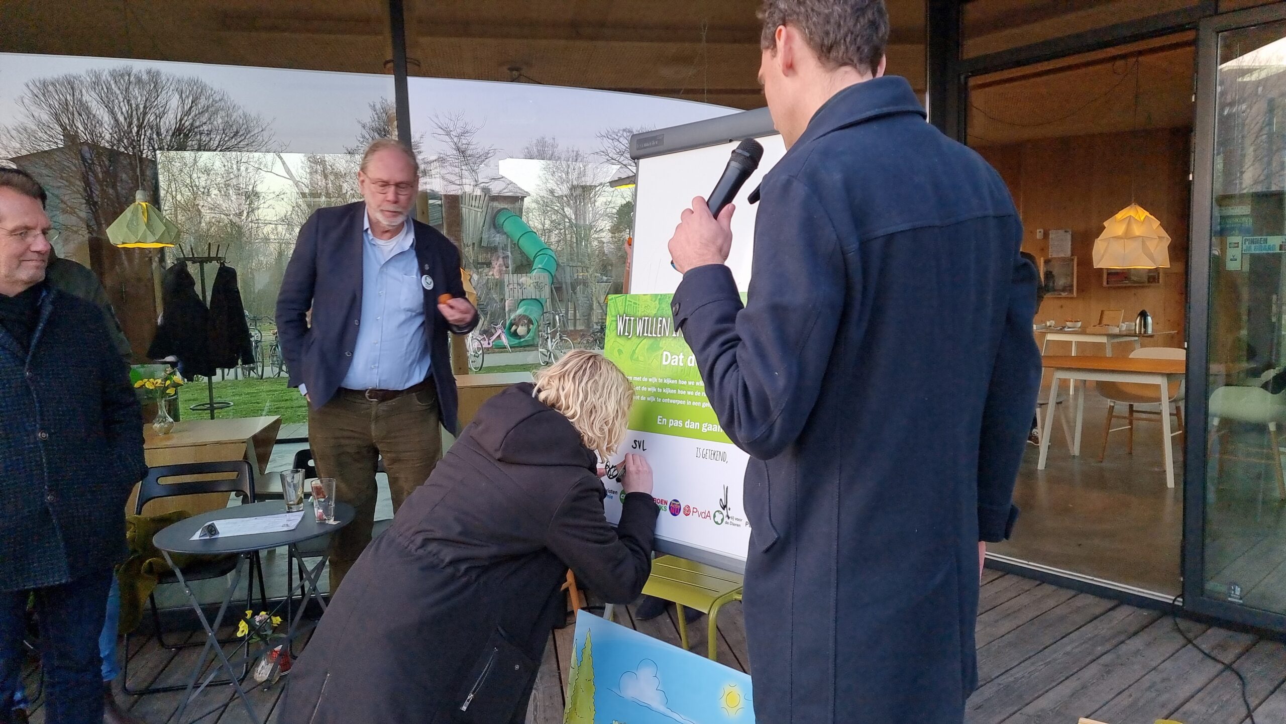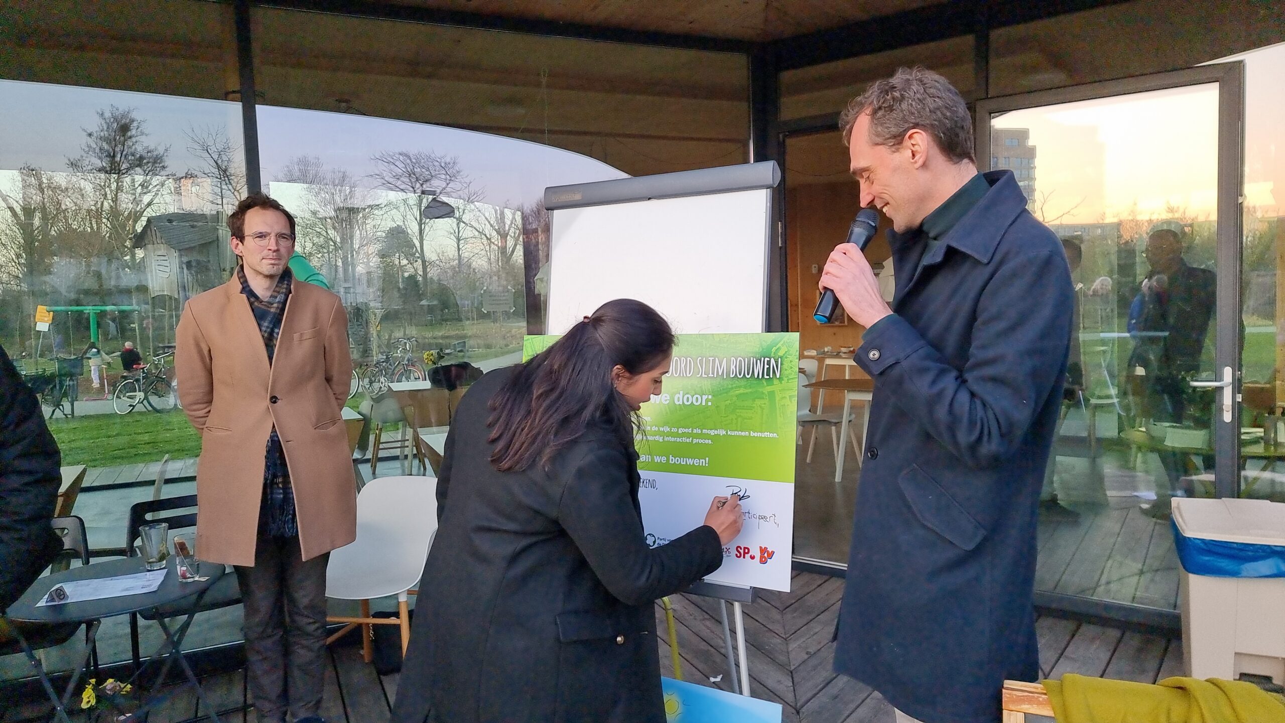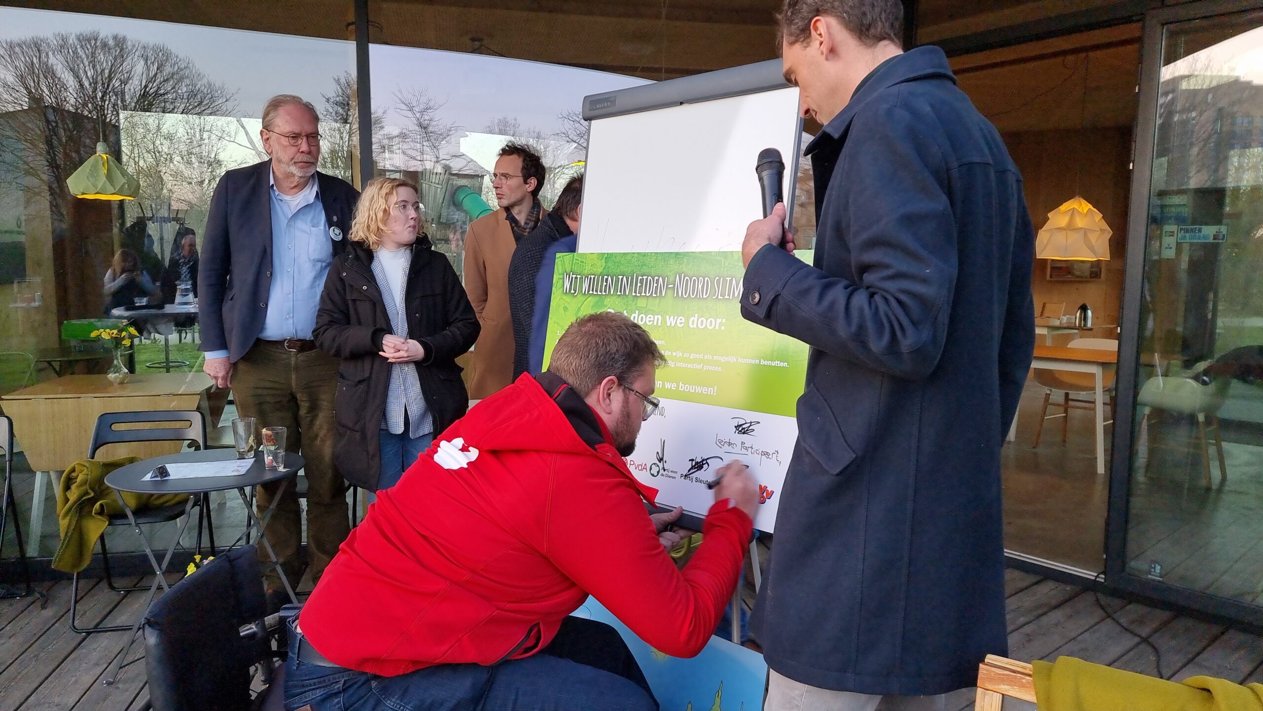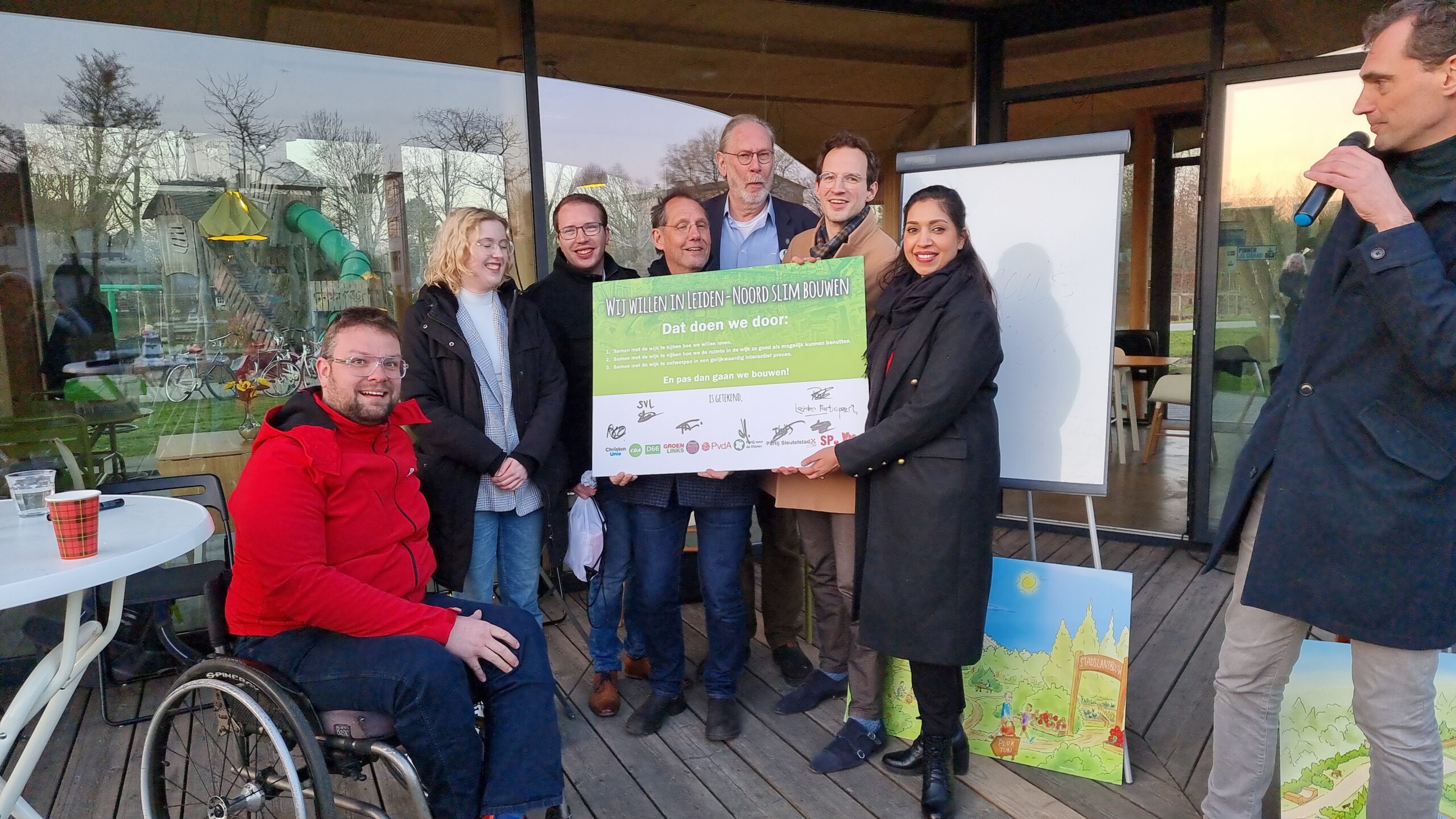 Na het debat werd aan de politieke partijen gevraagd of zij hun handtekening wilden zetten onder een gezamenlijke verklaring. Daarmee beloven ze om de uitgangspunten voor de toekomst van Leiden-Noord samen met de bewoners, het maatschappelijk middenveld en in de wijk gevestigde ondernemers te zullen formuleren en ook om de invulling van de wijk gezamenlijk ter hand te nemen. Bij voorkeur via een ontwerpwedstrijd zoals eerder in Leiden ook bij het Singelpark is georganiseerd. Het CDA en de huidige coalitiepartijen D66, GroenLinks en PvdA tekenden de verklaring niet. Die willen het na de verkiezingen eerst met hun nieuwe fracties bespreken. Op de afwezige VVD na, tekenden de andere partijen de verklaring wel.