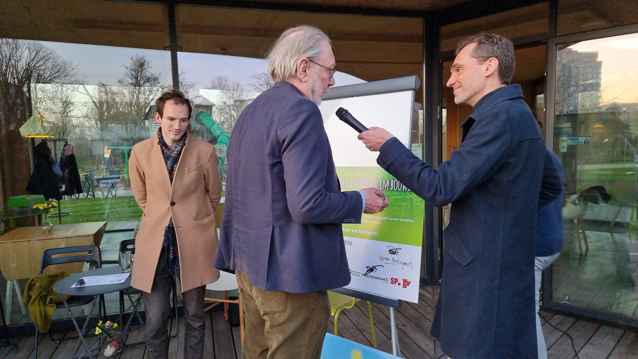 Chris de Waard liep mee met de walkshop en sprak na het debat met initiatiefnemer Anton van den Beukel en de kandidaat-raadsleden Pieter Krol van de ChristenUnie, Alex Friso van GroenLinks en Han Dirks van de SP.