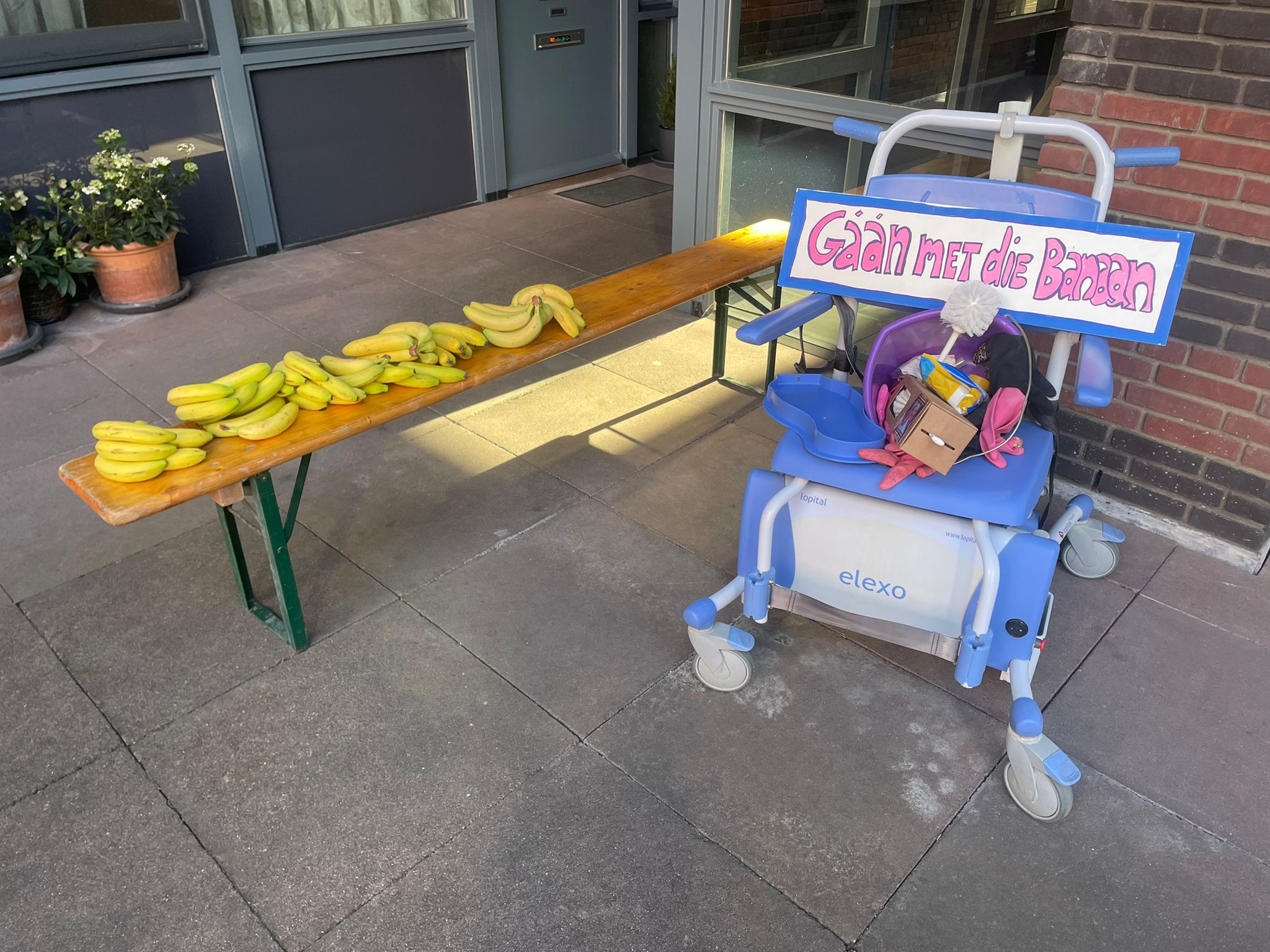 In de binnentuin van woonlocatie Ommedijk in Leiderdorp werd vrijdag een rolstoel- en rollatorsponserloop gehouden. Het geld dat werd opgehaald, wordt gebruikt voor de aanschaf van een duofiets. Zorginstantie Gemiva-SVG groep organiseerde het evenement tijdens de jaarlijkse vrijwilligersdag NLdoet.