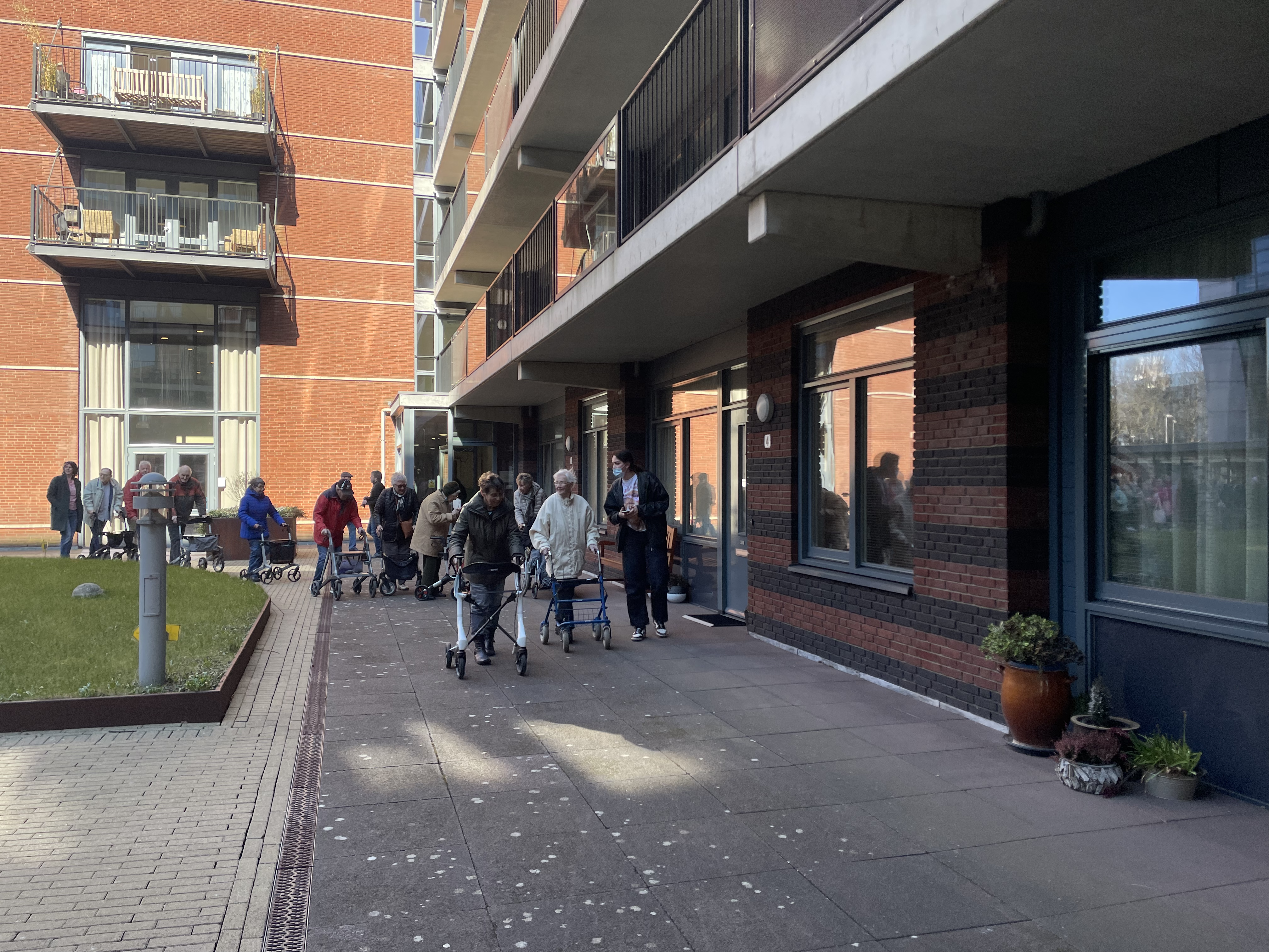 Organisator Marion Groenewegen was verrast over de opkomst. “Ik had nooit verwacht dat het zo druk zou zijn.” Het rondje werd gemaakt door cliënten van Gemiva met een rollator of rolstoel en een vrijwilliger aan hun zijde. “Ik zie ze genieten en dan geniet ik ook”, zegt een van de vrijwilligers overtuigend “En daar doe ik het voor.”