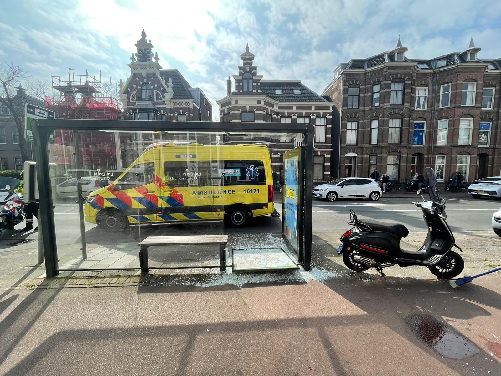 Een bestuurder van een brommer is tijdens het inhalen van een andere brommer tegen de ruit van een bushokje geknald. De botsing vond plaats op de Hoge Rijndijk.