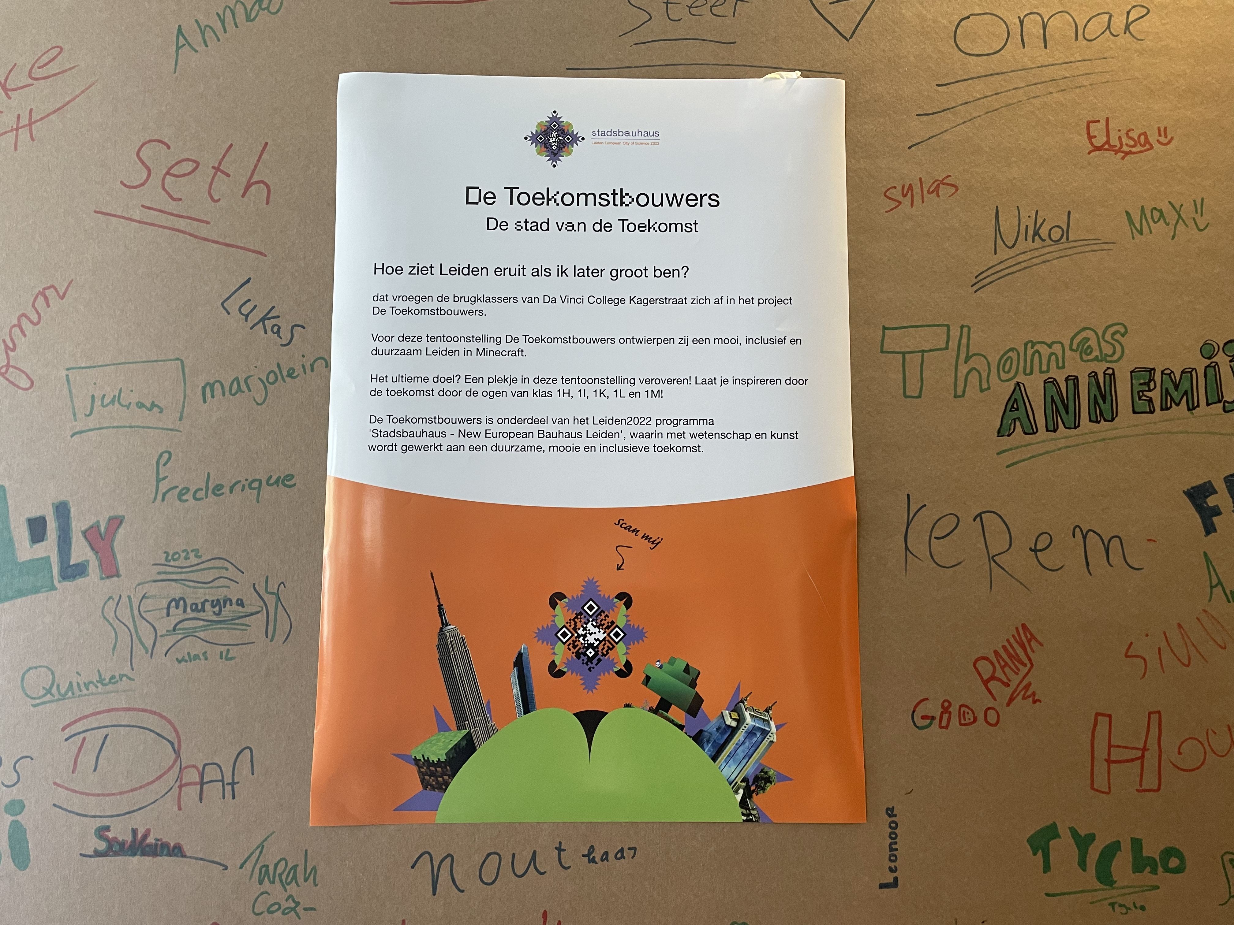 De brugklassers van het Da Vinci College Kagerstraat hielden afgelopen maandag en dinsdag in het Stadbouwhuis hun eindpresentatie van het project De Toekomstbouwers. Voor het vak Digitale vaardigheden kregen zij de opdracht om de toekomstige stad Leiden te bouwen met als thema duurzaamheid.