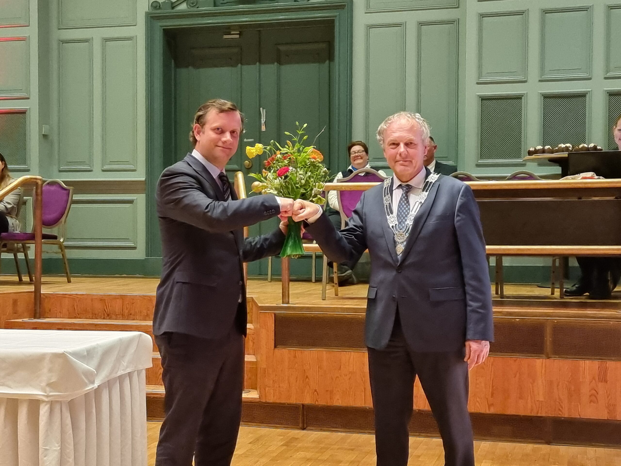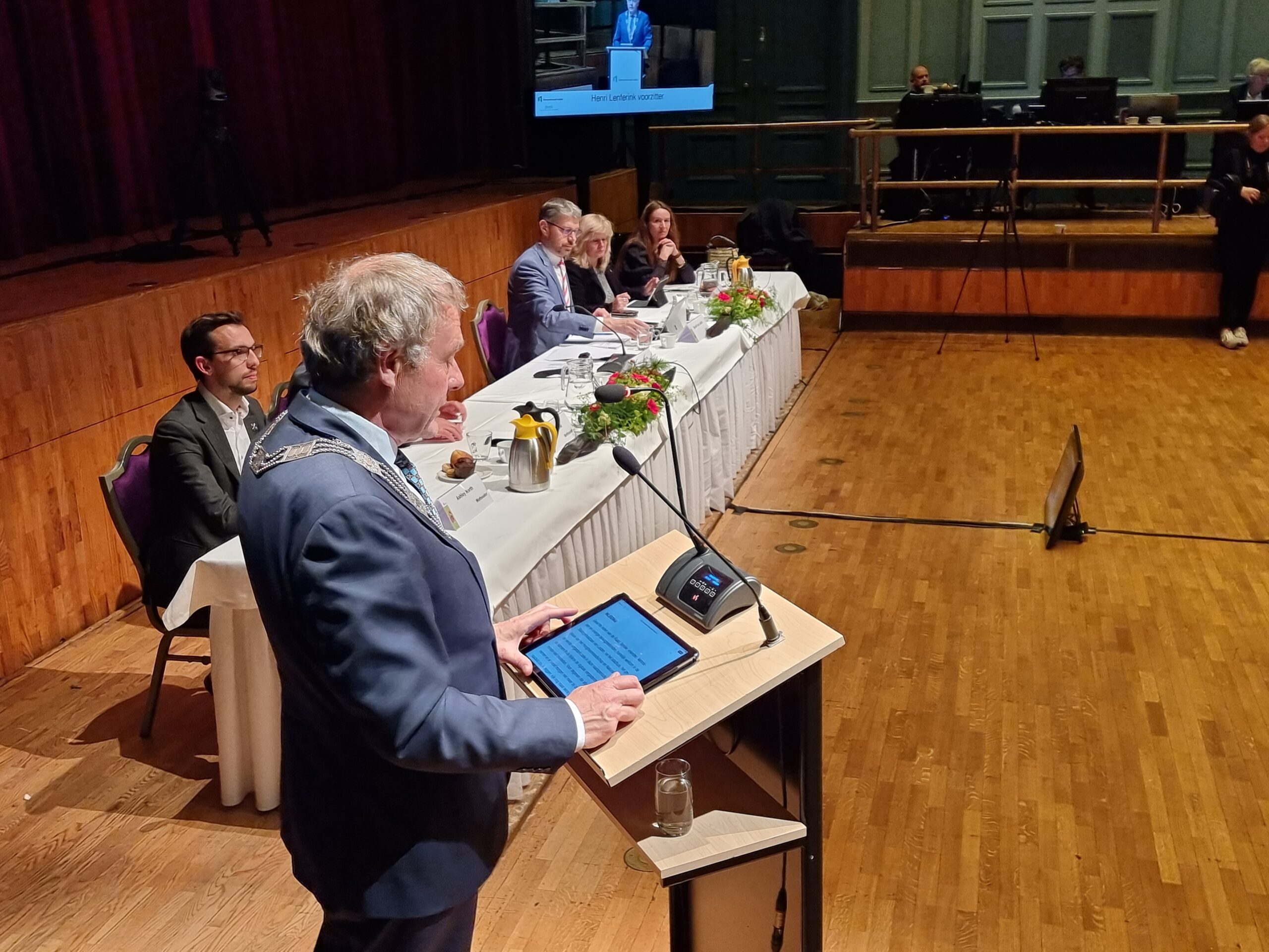 Woensdagavond wordt de nieuwe gemeenteraad geïnstalleerd. Ook dat vindt plaats in de Stadsgehoorzaal. Het stadhuis is nog niet beschikbaar vanwege de verbouwing. Die is wel zo goed als afgerond, maar de komende maanden moeten installaties nog worden geregeld en verhuizen ook verschillende ambtelijke afdelingen weer richting Stadhuisplein. De gemeenteraad gaat pas na het zomerreces weer in de monumentale en gerestaureerde raadzaal vergaderen.