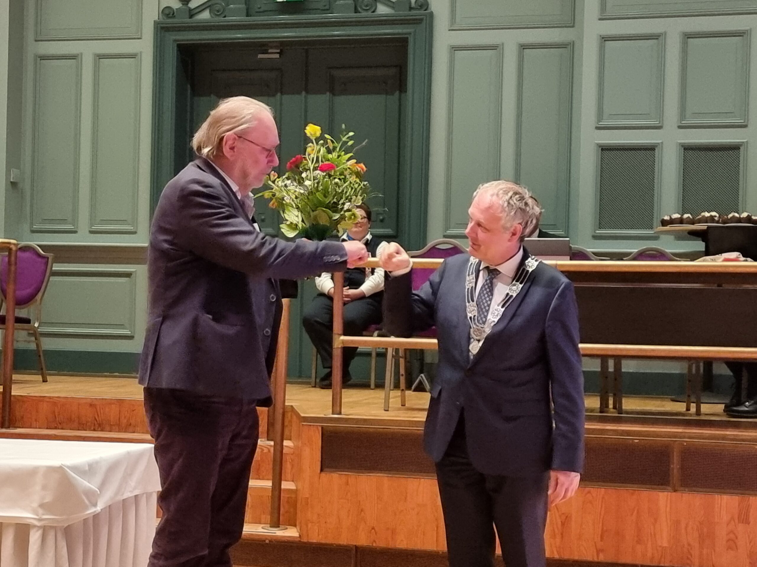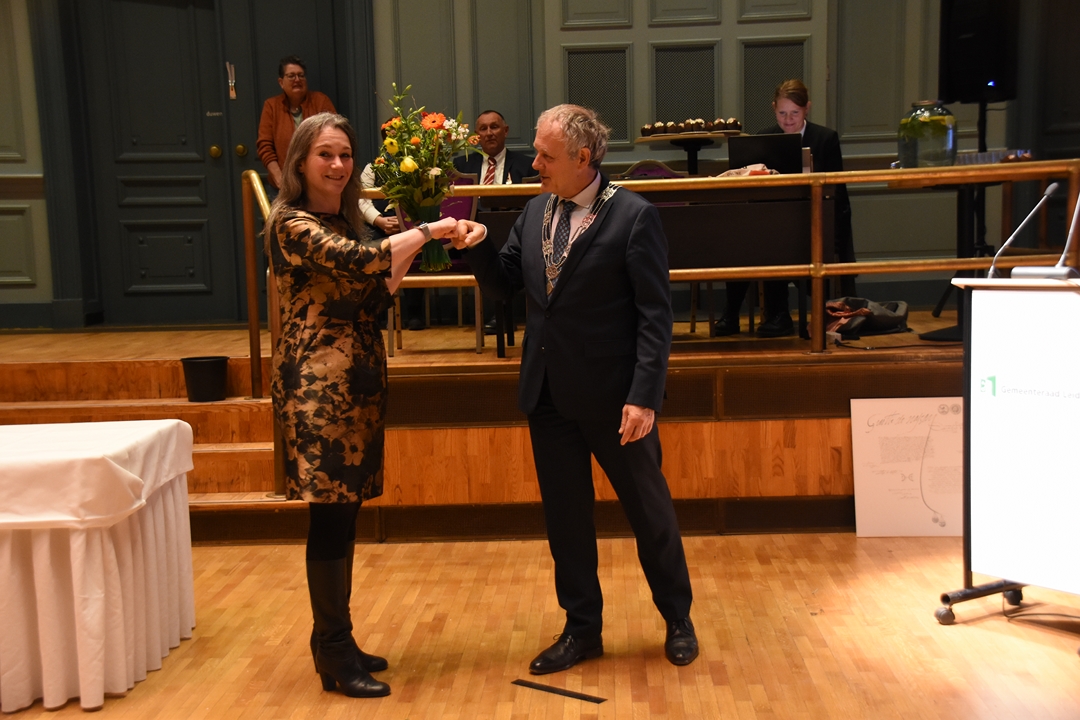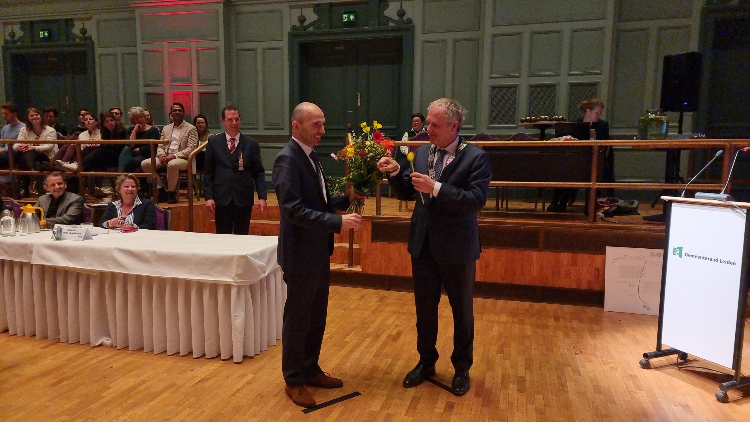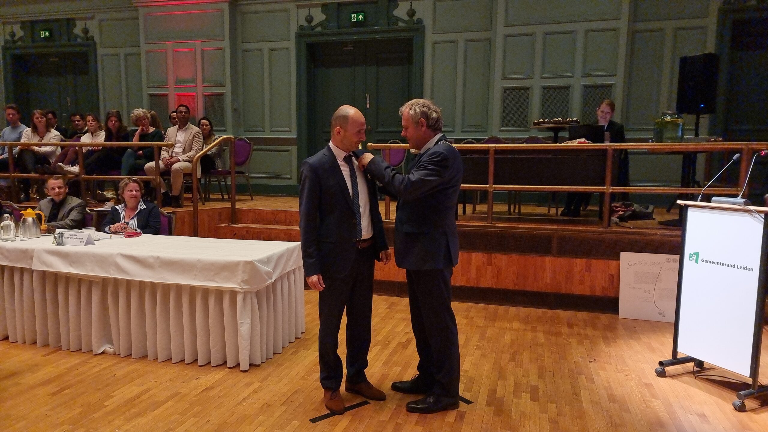 Twee vertrekkende raadsleden kregen een koninklijke onderscheiding. Dat waren Vahit Köroğlu van D66 en Walter van Peijpe van GroenLinks. Beiden maakten twaalf jaar lang deel uit van de Leidse gemeenteraad. VVD-raadslid Juliette Gilissen nam afscheid na elf jaar en negen maanden. Net te kort voor een lintje. De koning is wat dat betreft onverbiddelijk, wist burgemeester Lenferink.