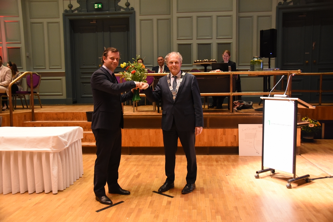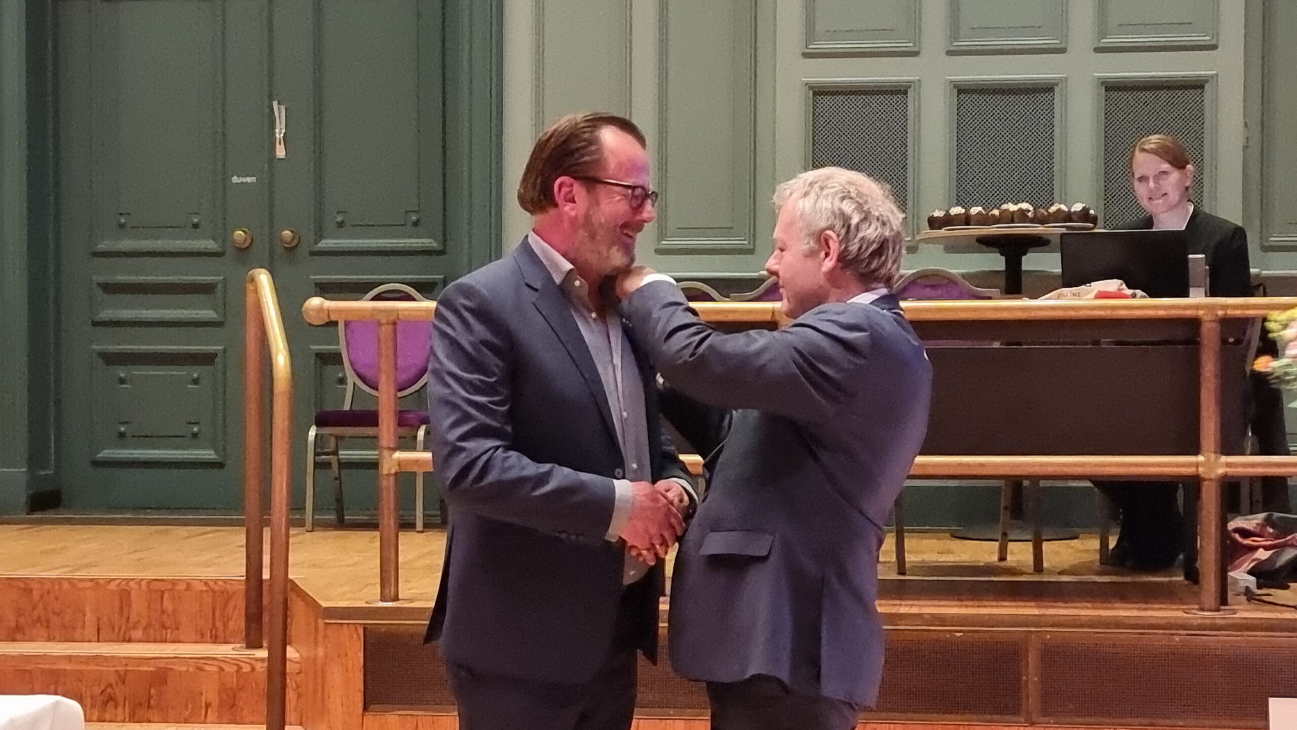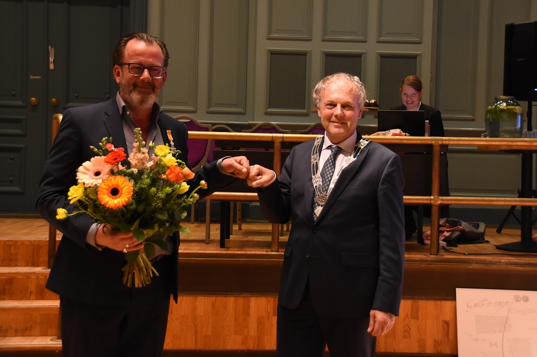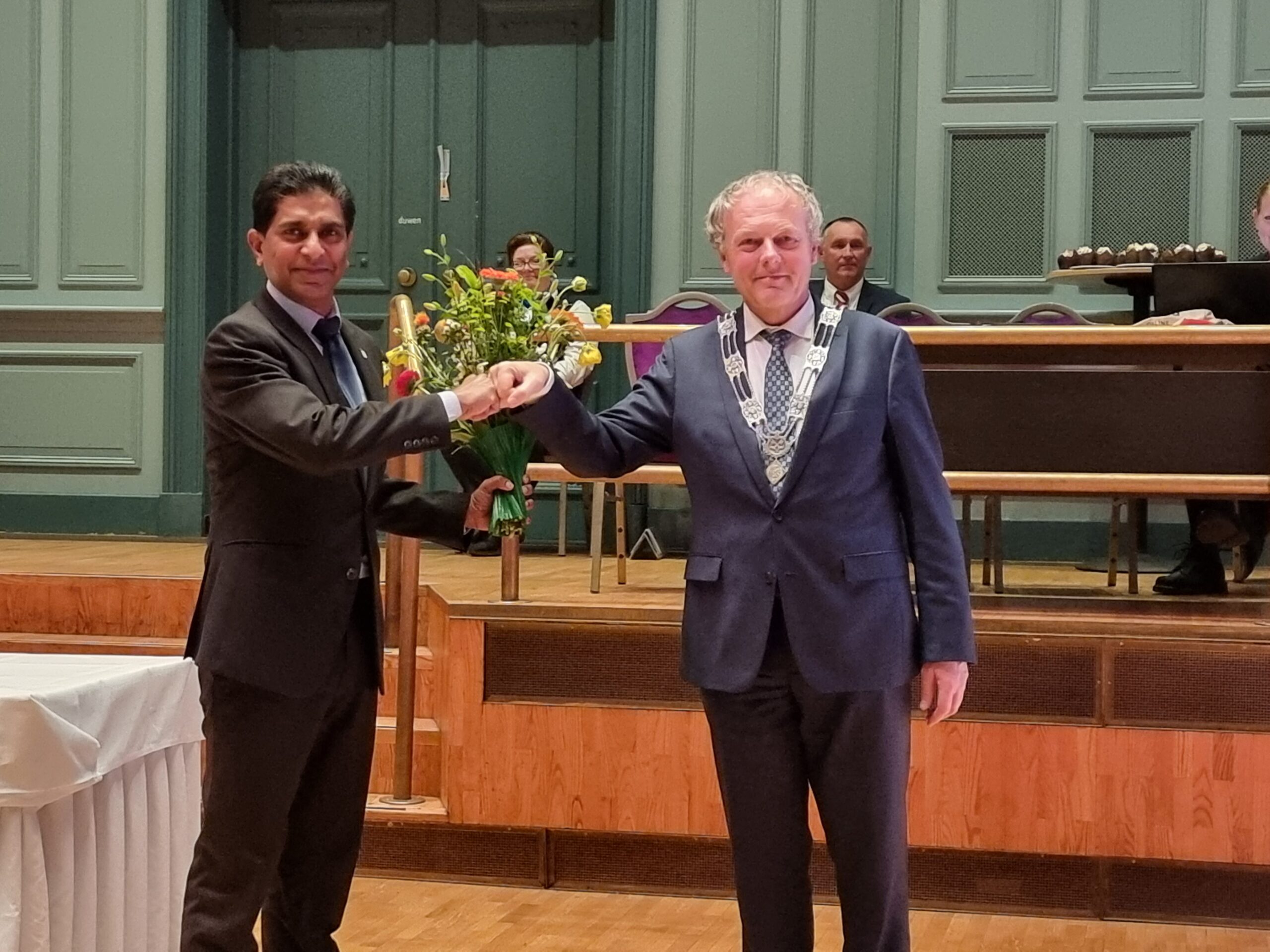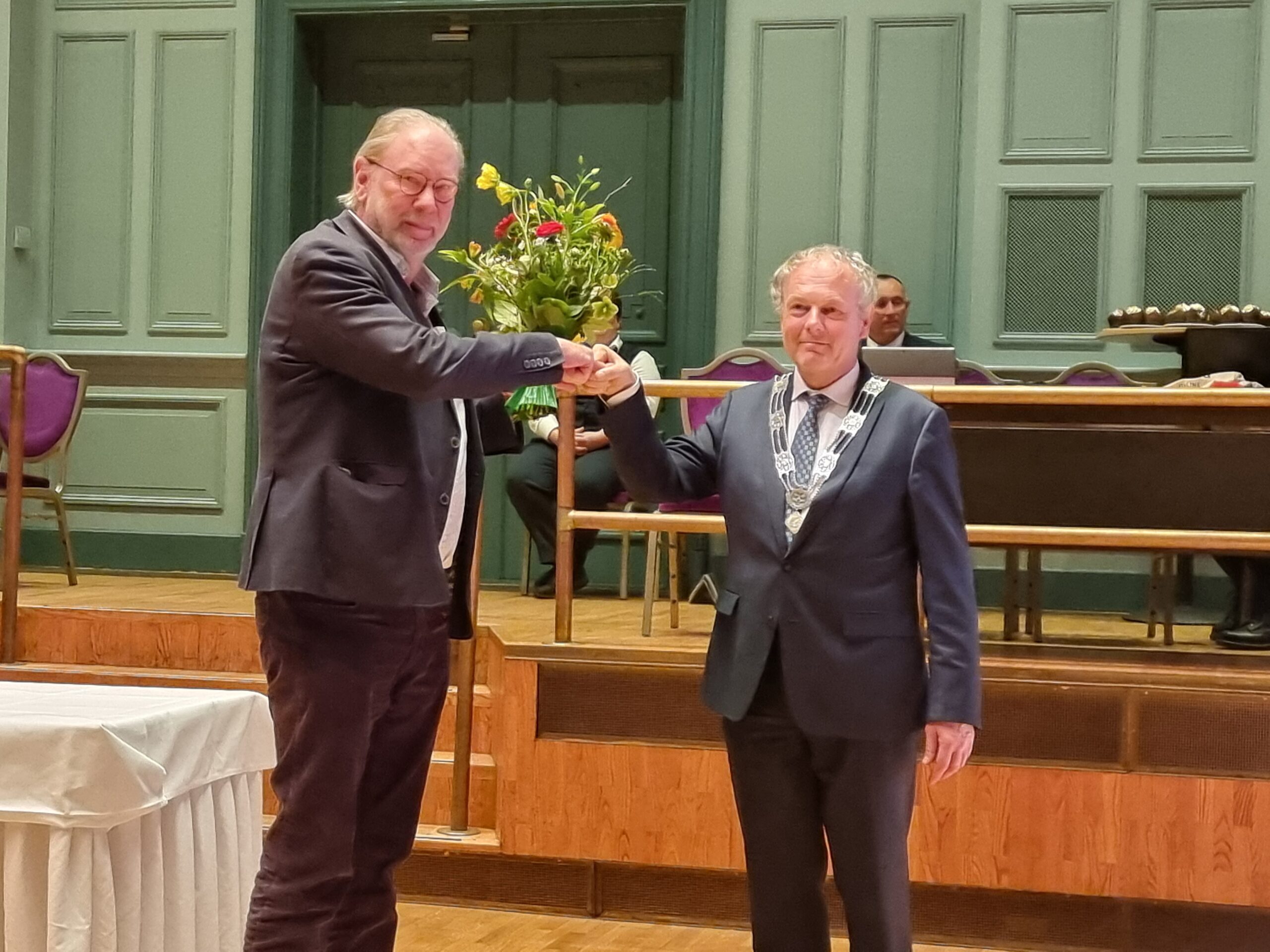 Twee vertrekkende raadsleden kregen een koninklijke onderscheiding. Dat waren Vahit Köroğlu van D66 en Walter van Peijpe van GroenLinks. Beiden maakten twaalf jaar lang deel uit van de Leidse gemeenteraad. VVD-raadslid Juliette Gilissen nam afscheid na elf jaar en negen maanden. Net te kort voor een lintje. De koning is wat dat betreft onverbiddelijk, wist burgemeester Lenferink.