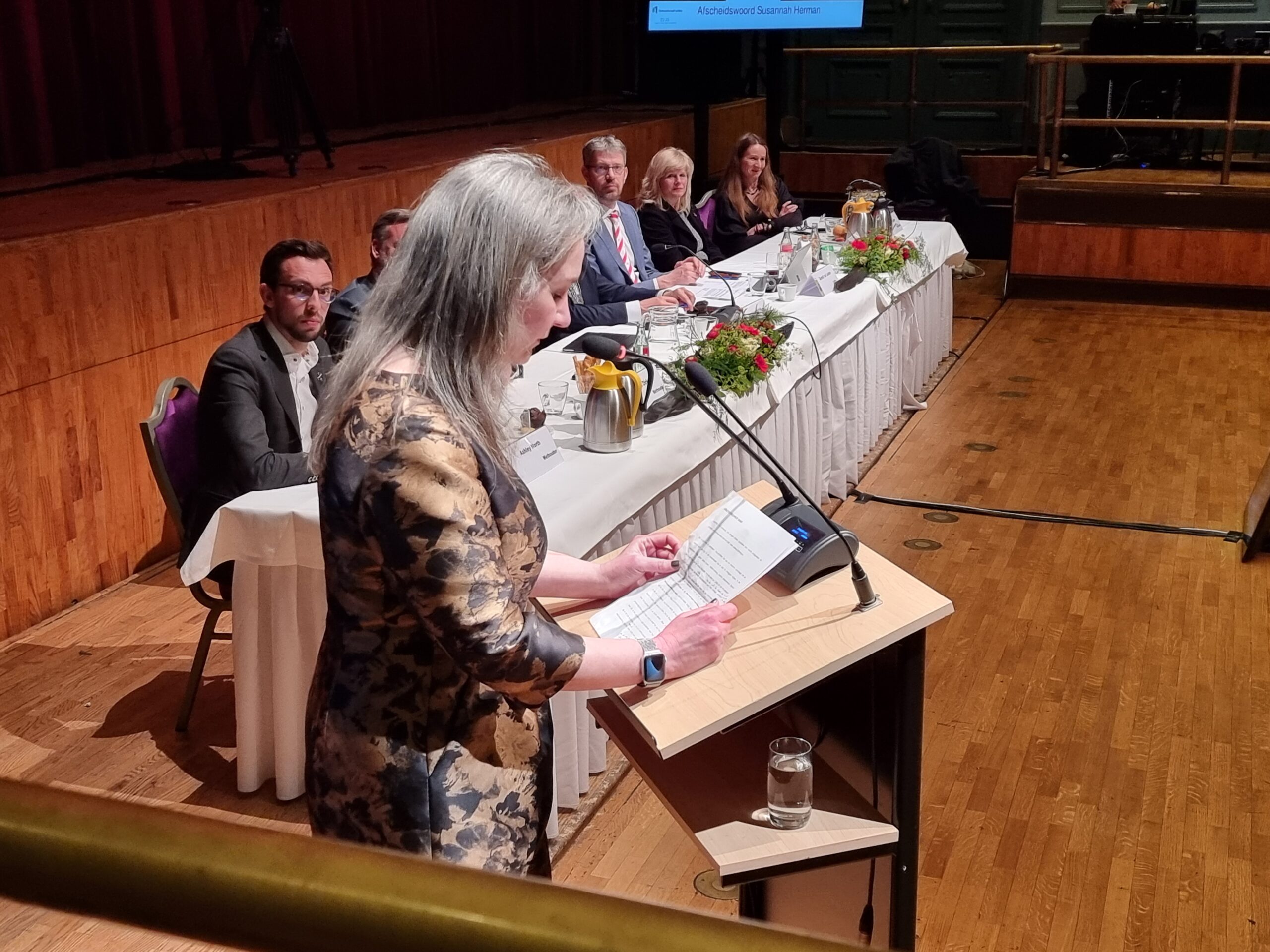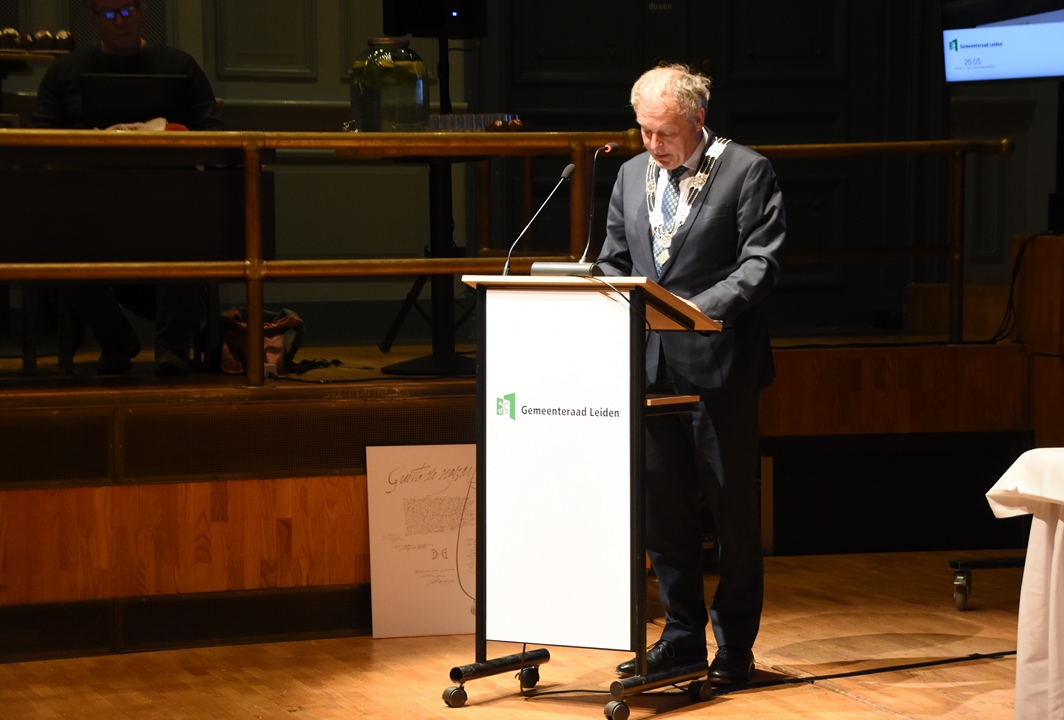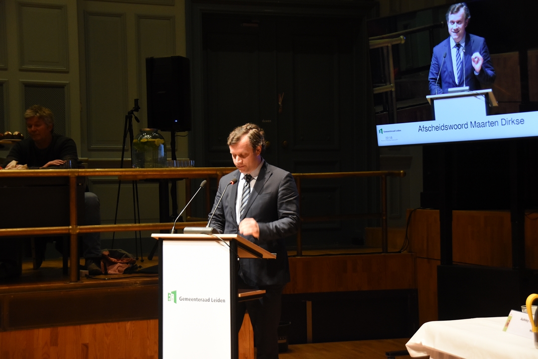 In een ruim drie uur durende sessie in de Stadsgehoorzaal heeft Leiden dinsdagavond afscheid genomen van de oude gemeenteraad. In een bijzondere raadsvergadering werden alle 21 raadsleden voor wie het raadswerk er nu op zit toegesproken door burgemeester Lenferink.